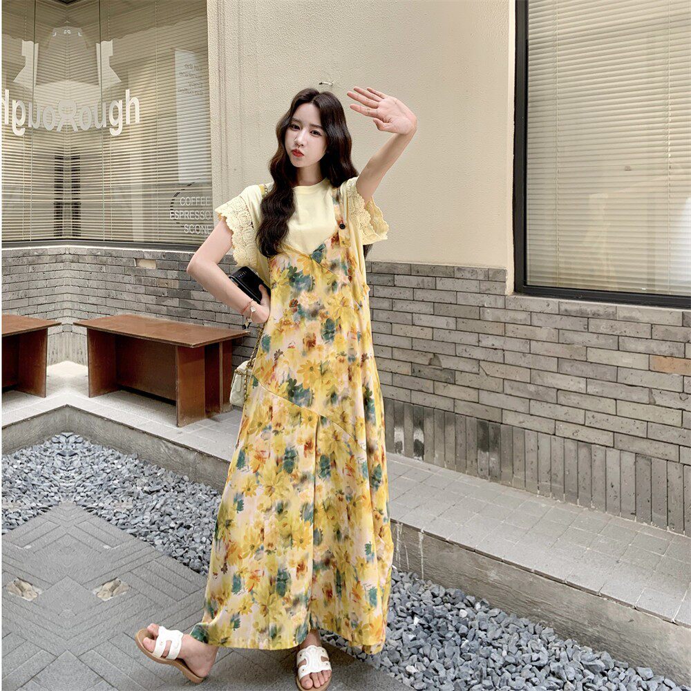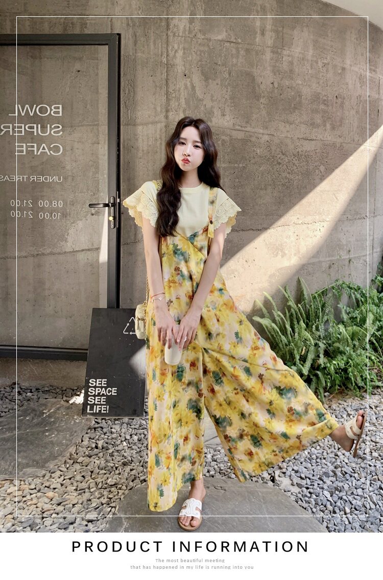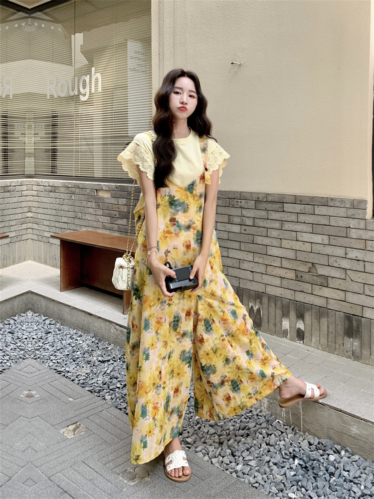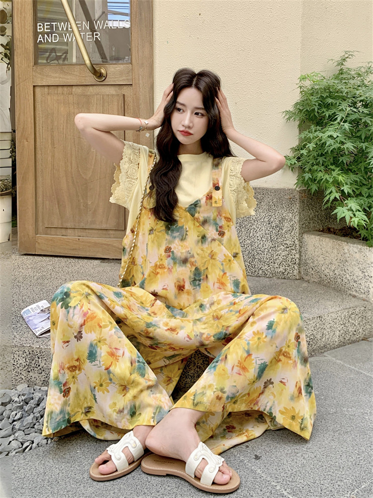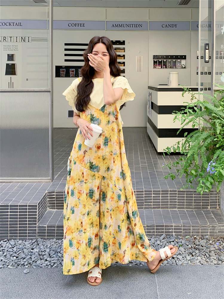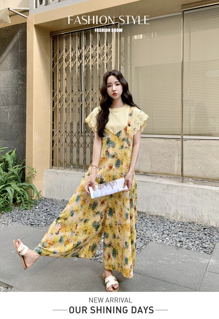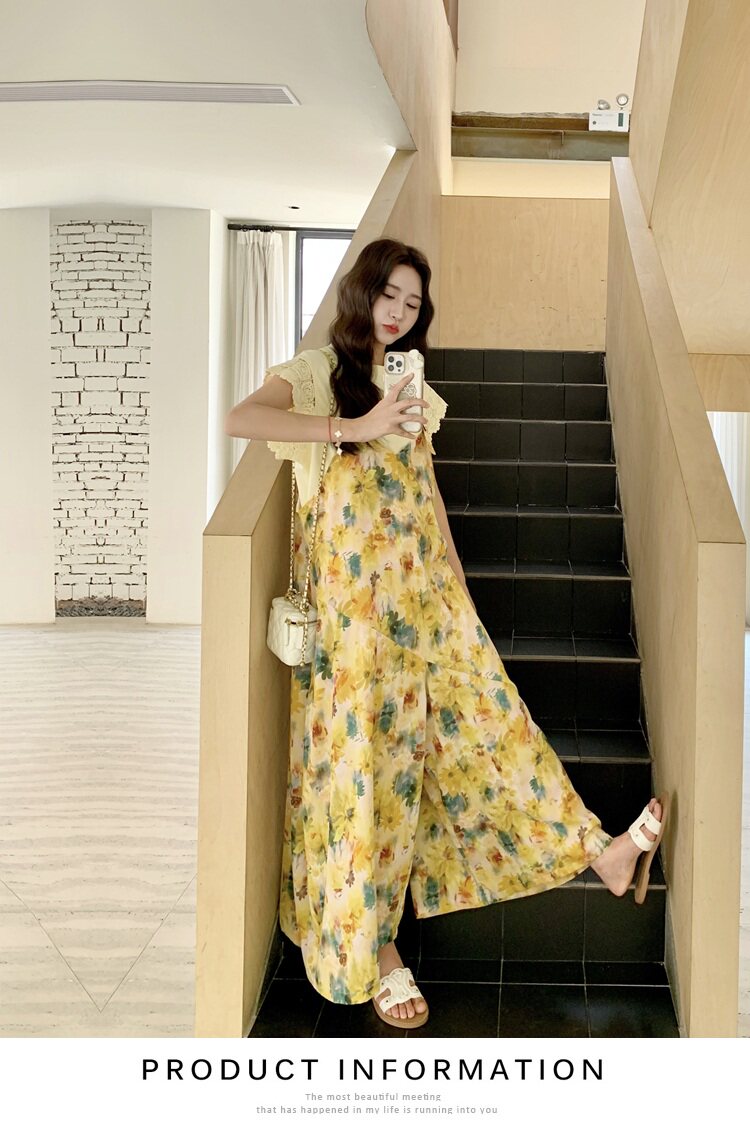 【ボトムス】フレンチ風 イエローフラワープリント オールインワン 【SHシリーズ】