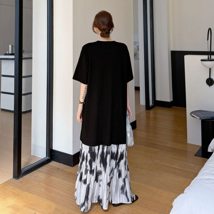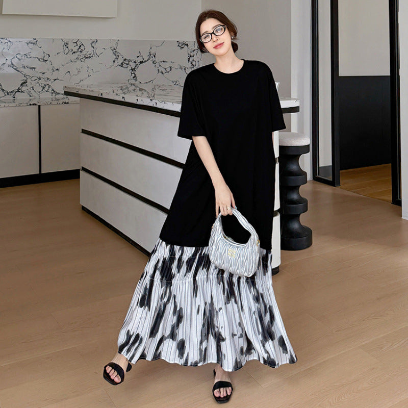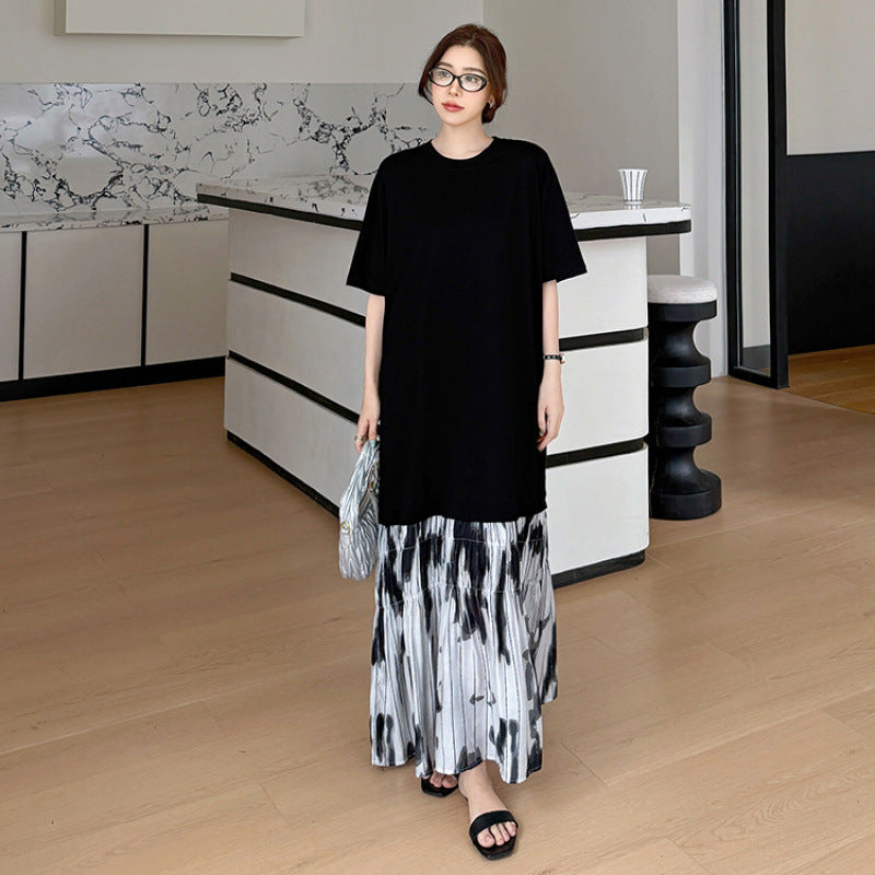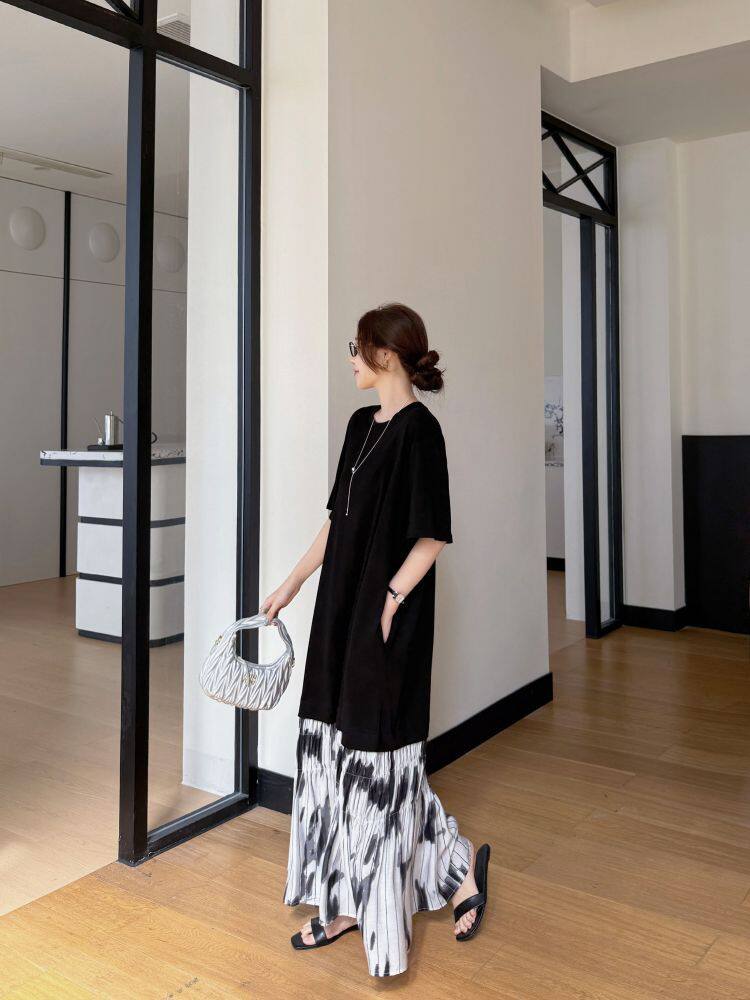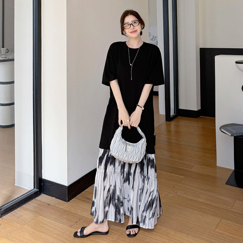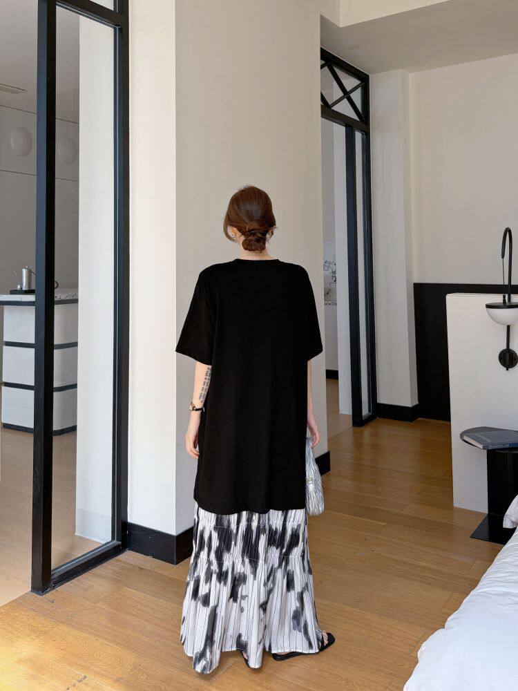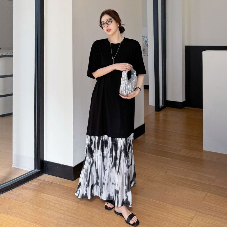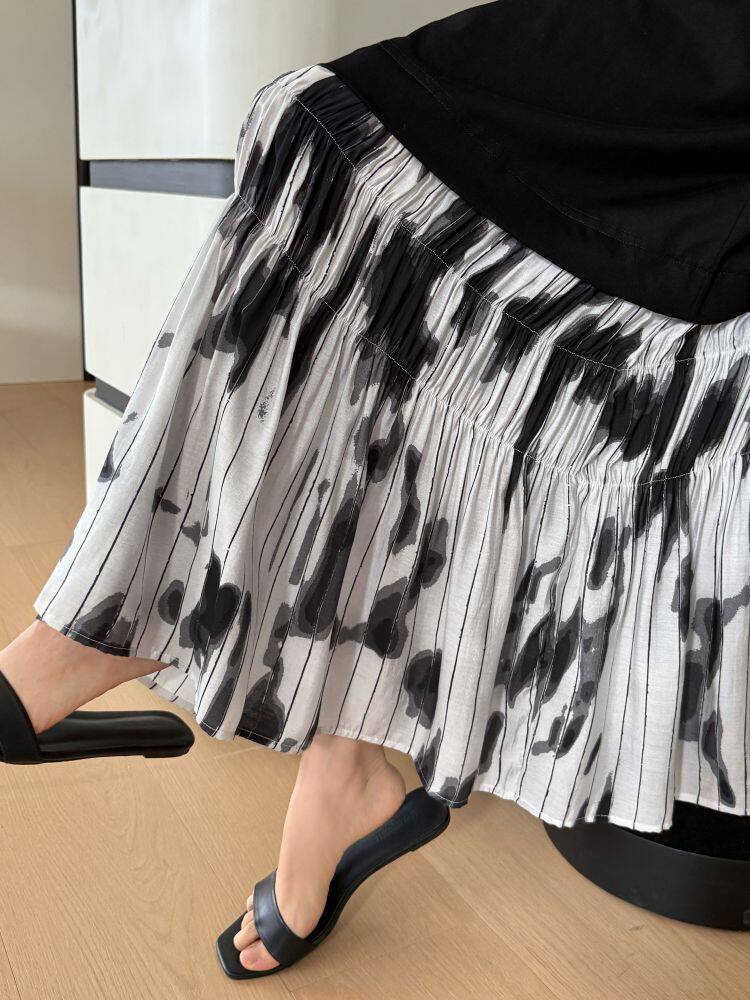 【ワンピース】夏 大きいサイズ レディース 水墨染め フレアスカート 半袖 ワンピース ゆったりサイズ【SHシリーズ】