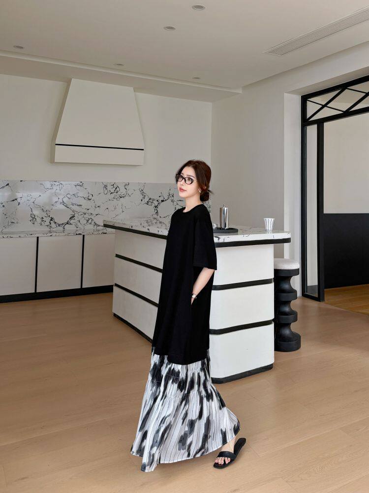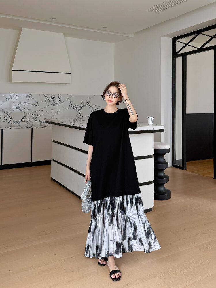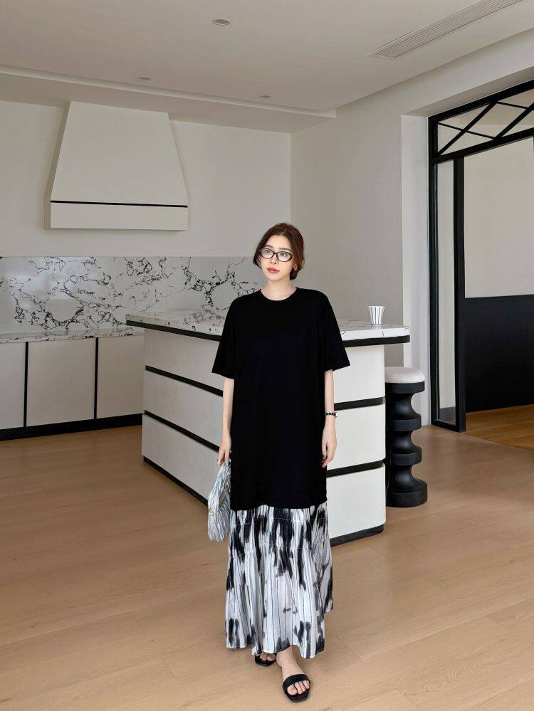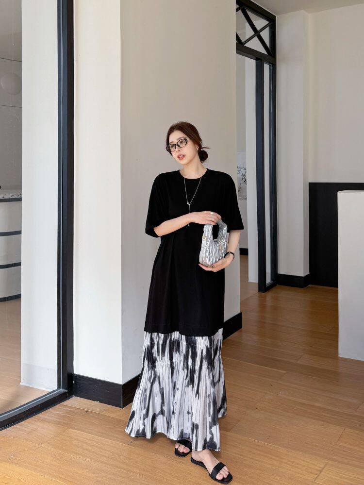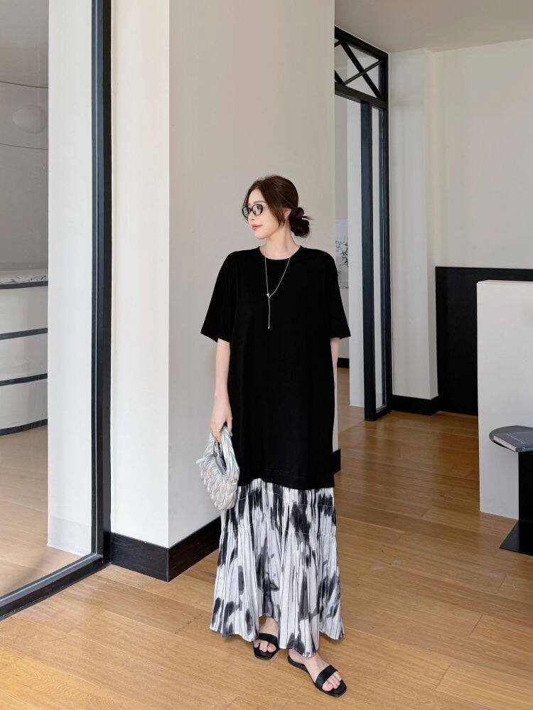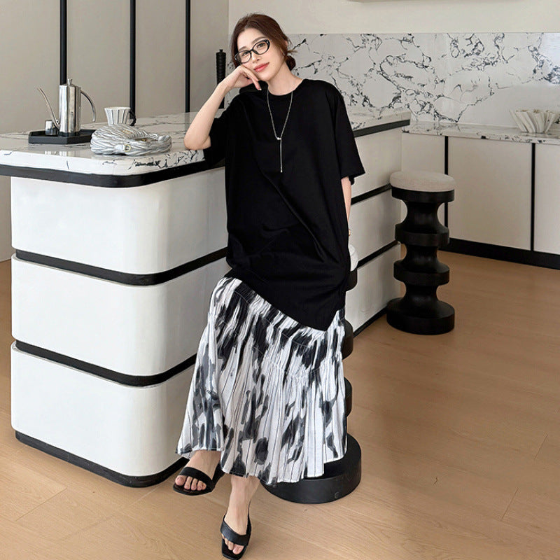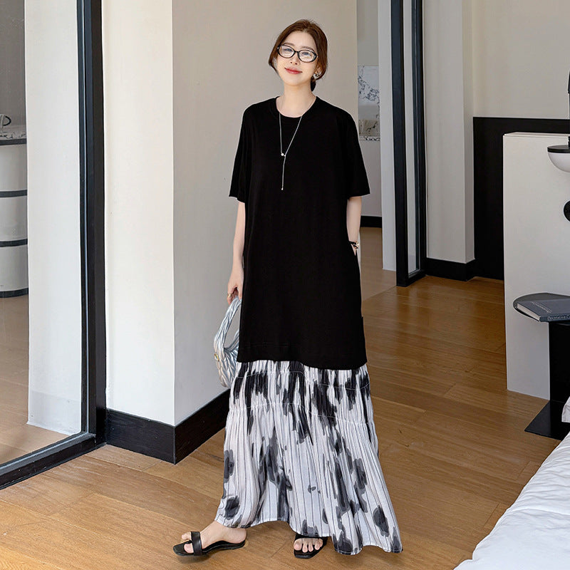 【ワンピース】夏 大きいサイズ レディース 水墨染め フレアスカート 半袖 ワンピース ゆったりサイズ【SHシリーズ】