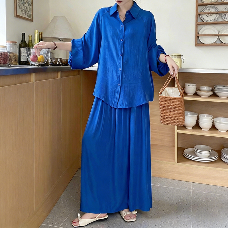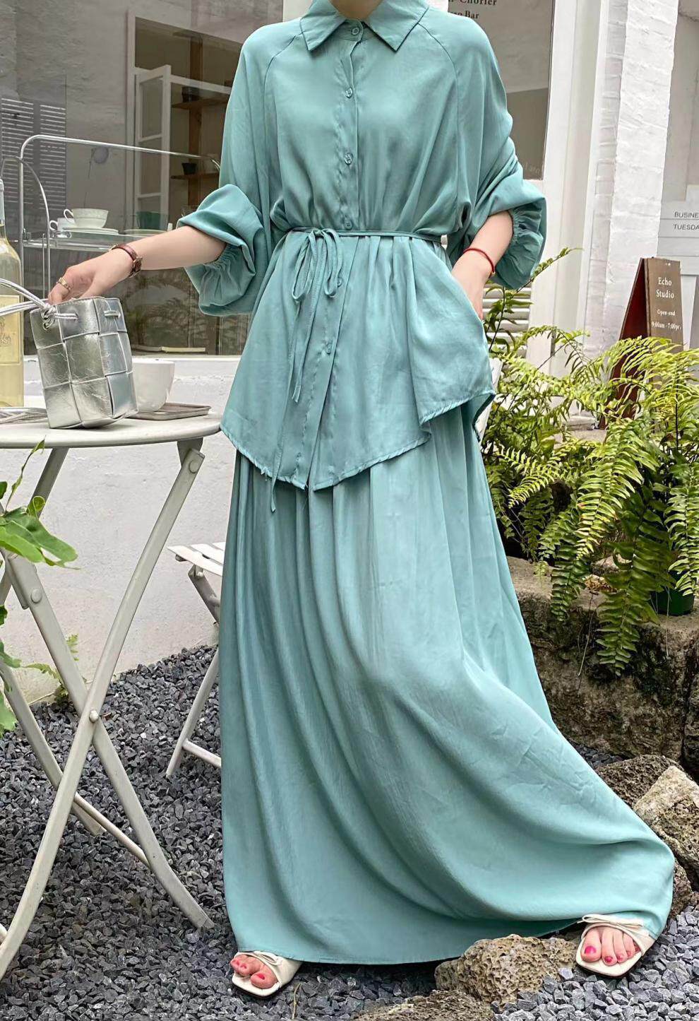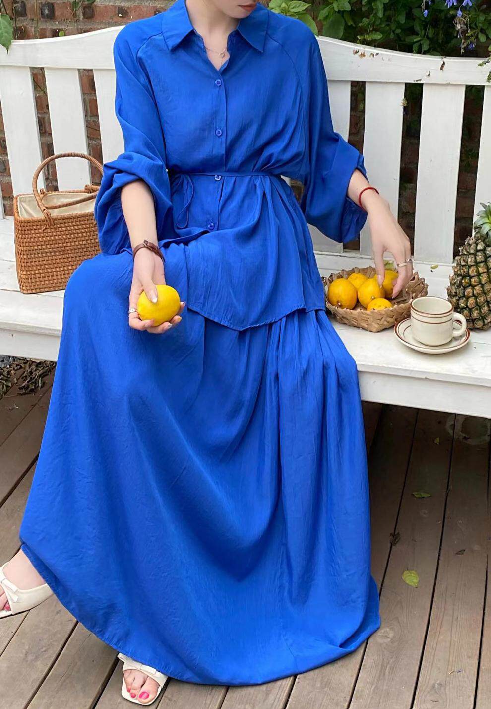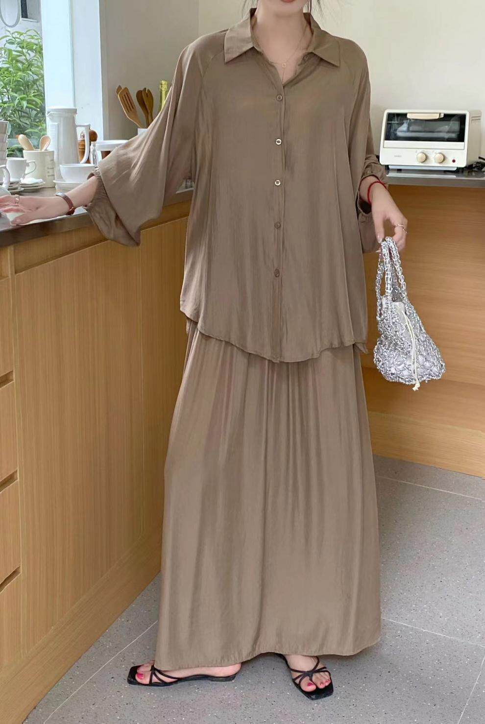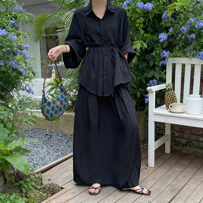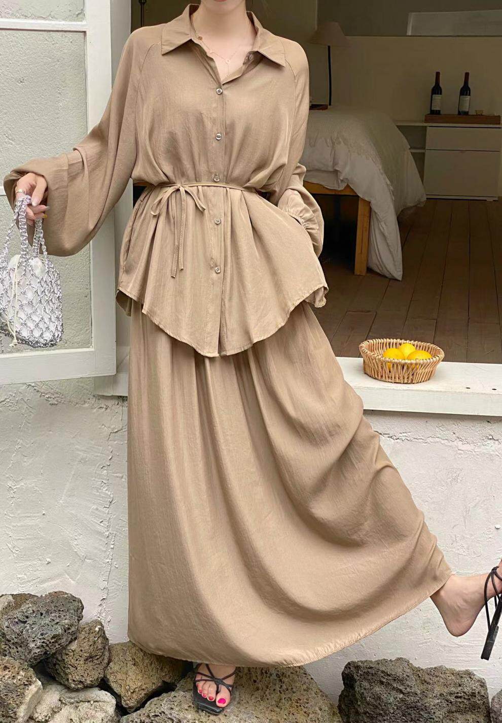 【商品名】2点セット!【セットアップ】春新作 韓国風 大きいサイズ レディース ゆったりシルエット ウエストリボン シャツ+スカート 上下セット【JZシリーズ】