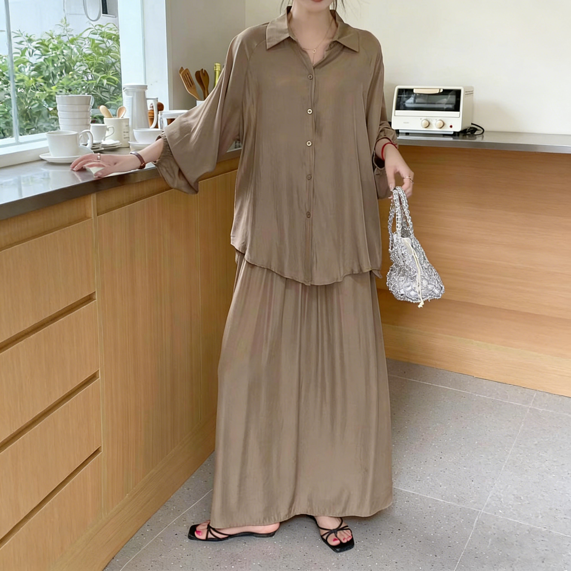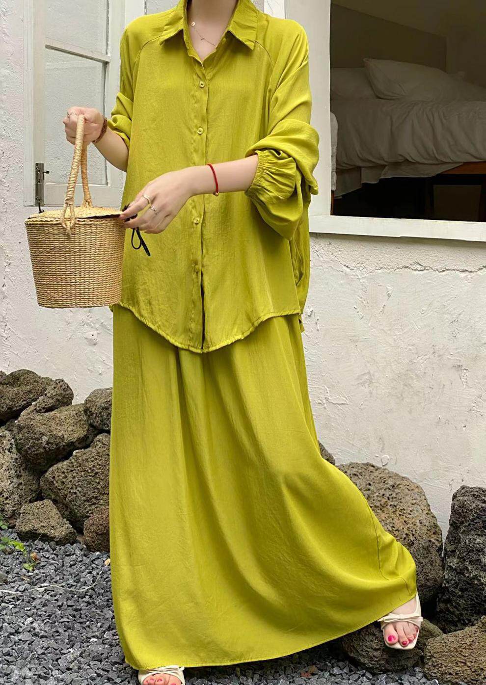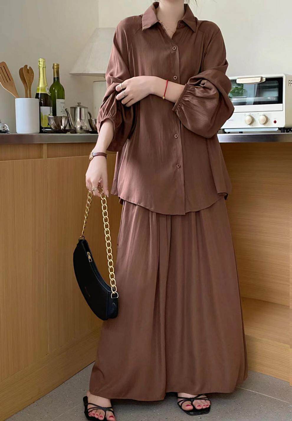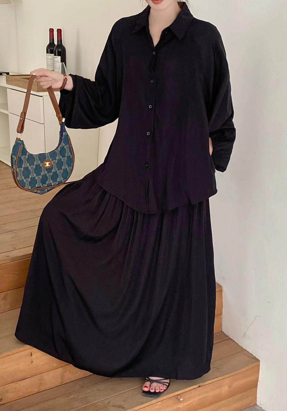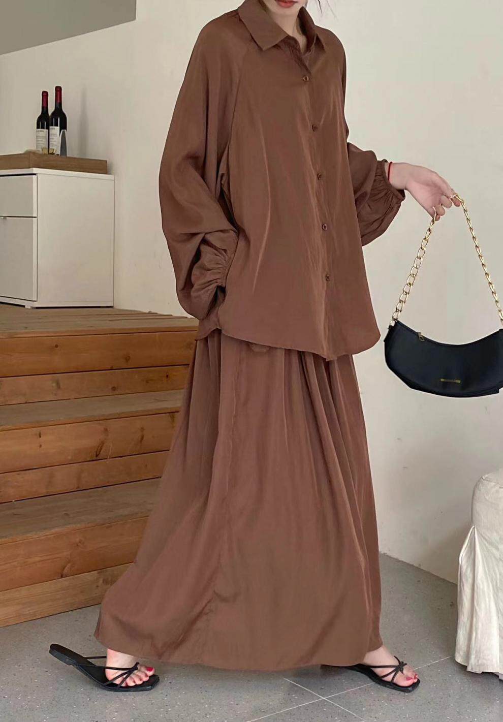 【商品名】2点セット!【セットアップ】春新作 韓国風 大きいサイズ レディース ゆったりシルエット ウエストリボン シャツ+スカート 上下セット【JZシリーズ】