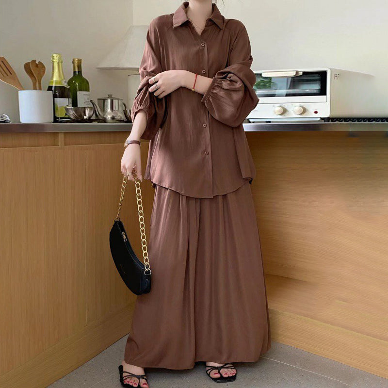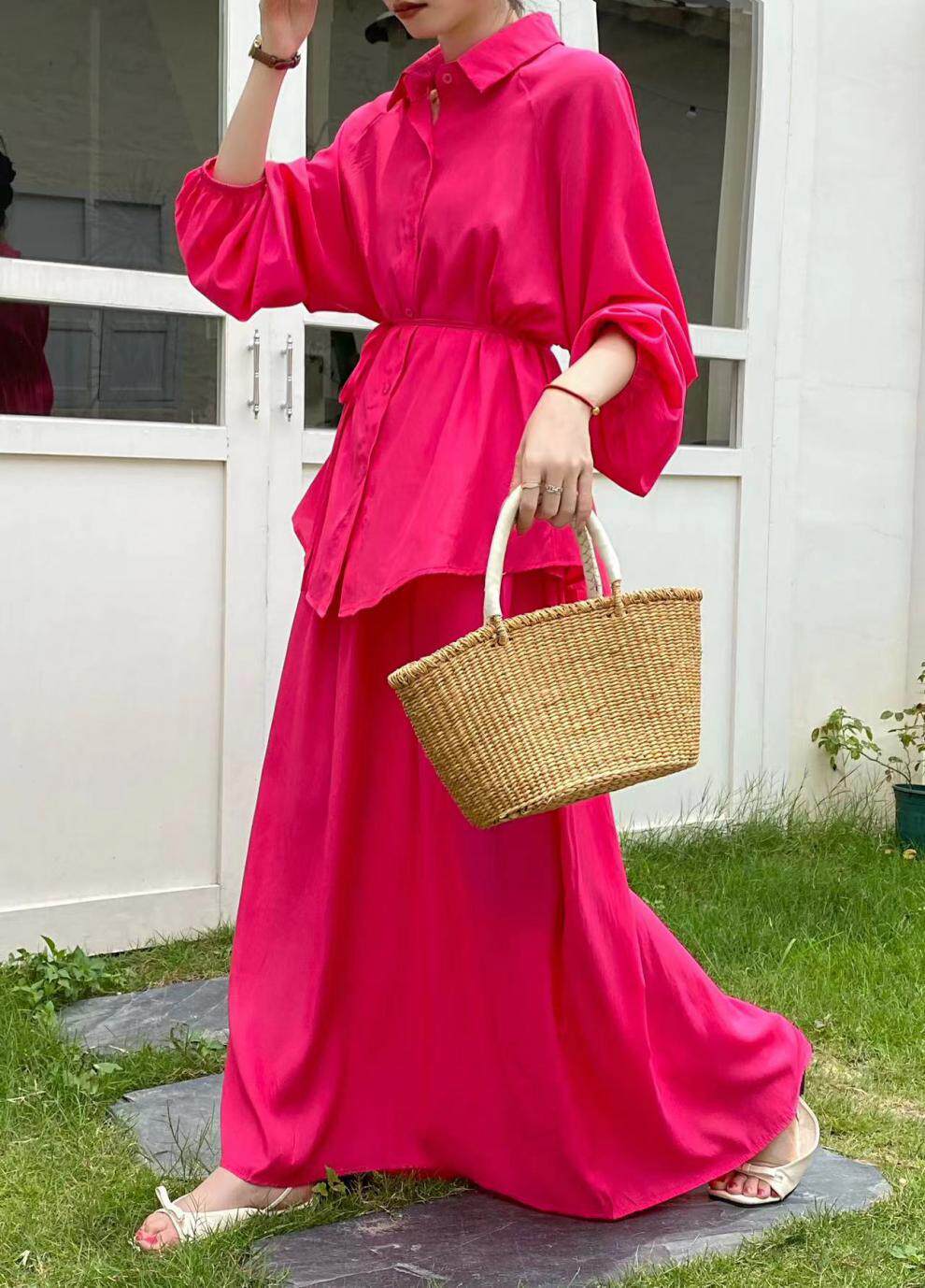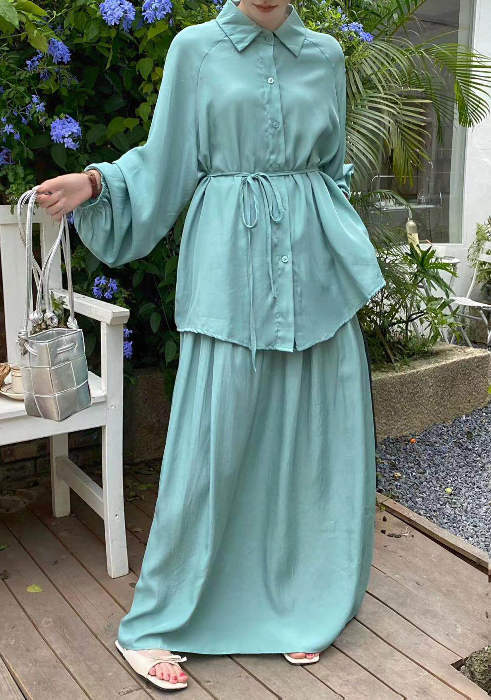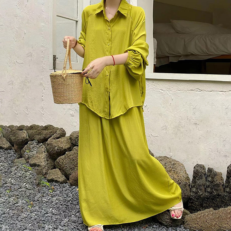 2点セット!【セットアップ】春新作 韓国風 大きいサイズ レディース ゆったりシルエット ウエストリボン シャツ+スカート 上下セット【JZシリーズ】