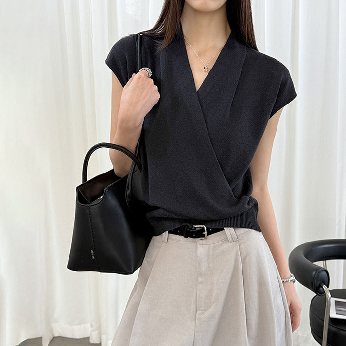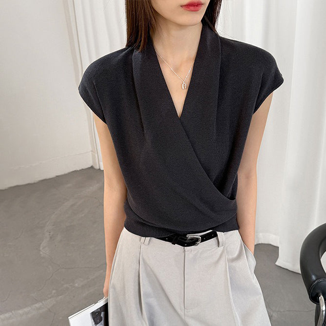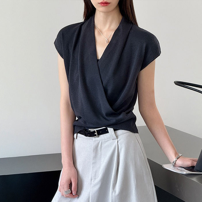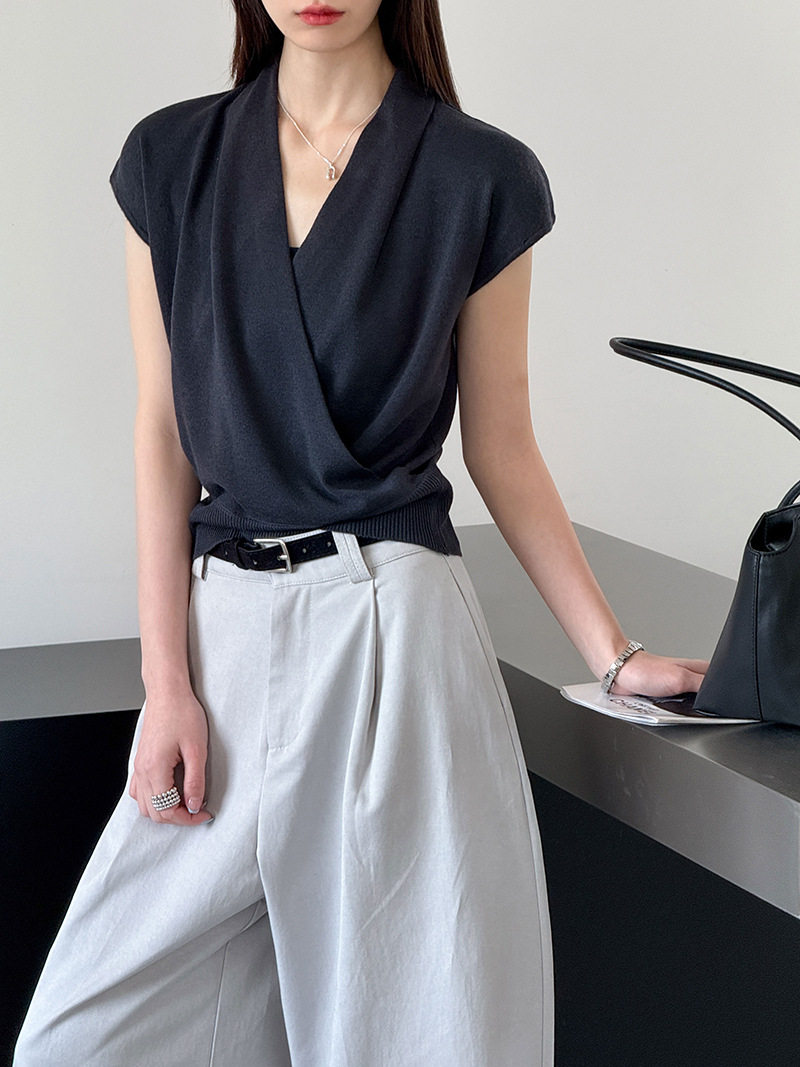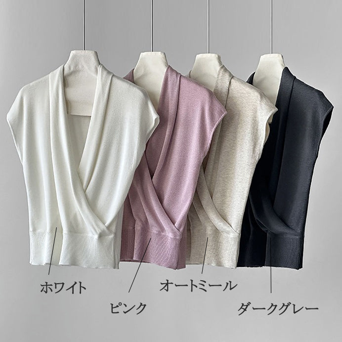 【商品名】【トップス】半袖ニットトップス レディース 春新作 きれいめ カジュアル 着回し デザインニット【JZシリーズ】