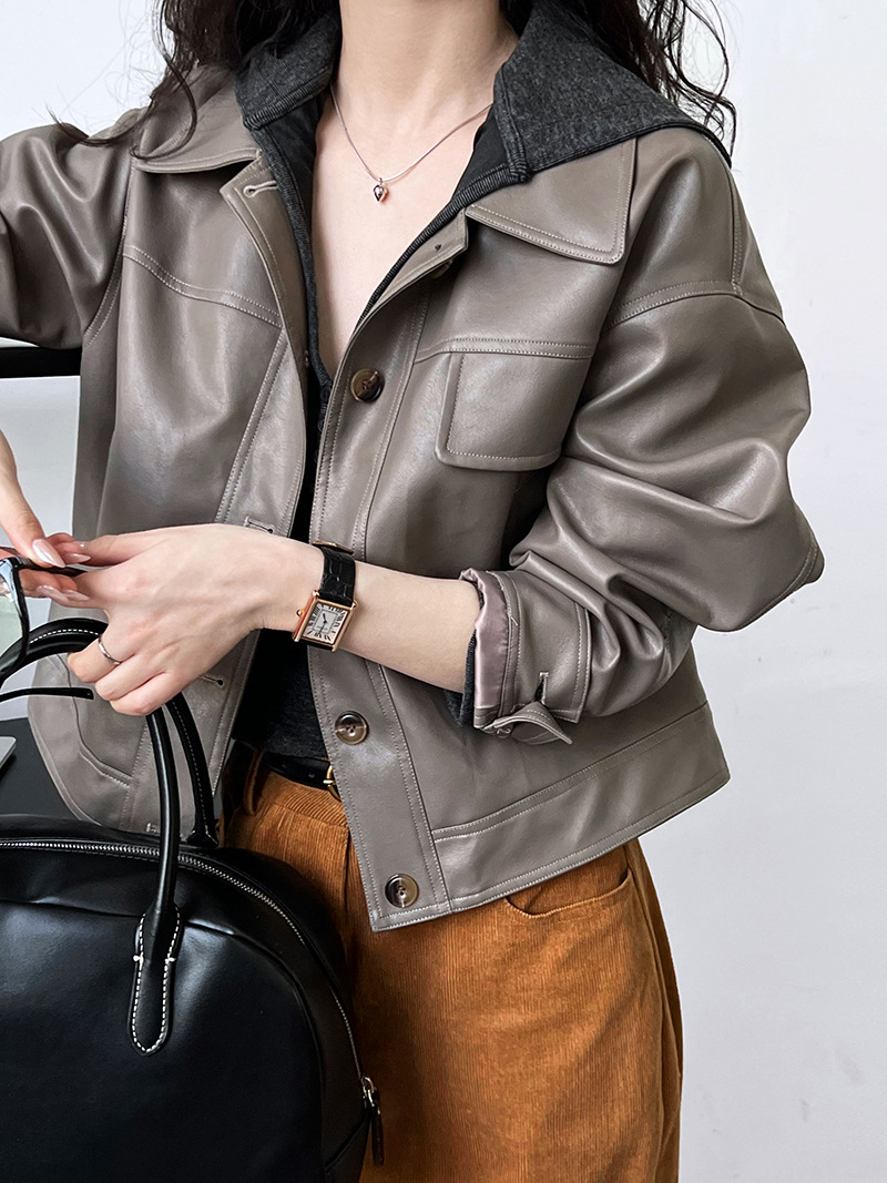 【アウター】春秋 おしゃれ PU レザージャケット ラペル バイク ショートジャケット【SNシリーズ】