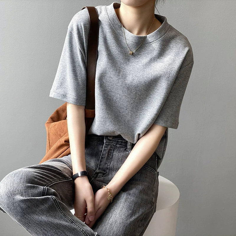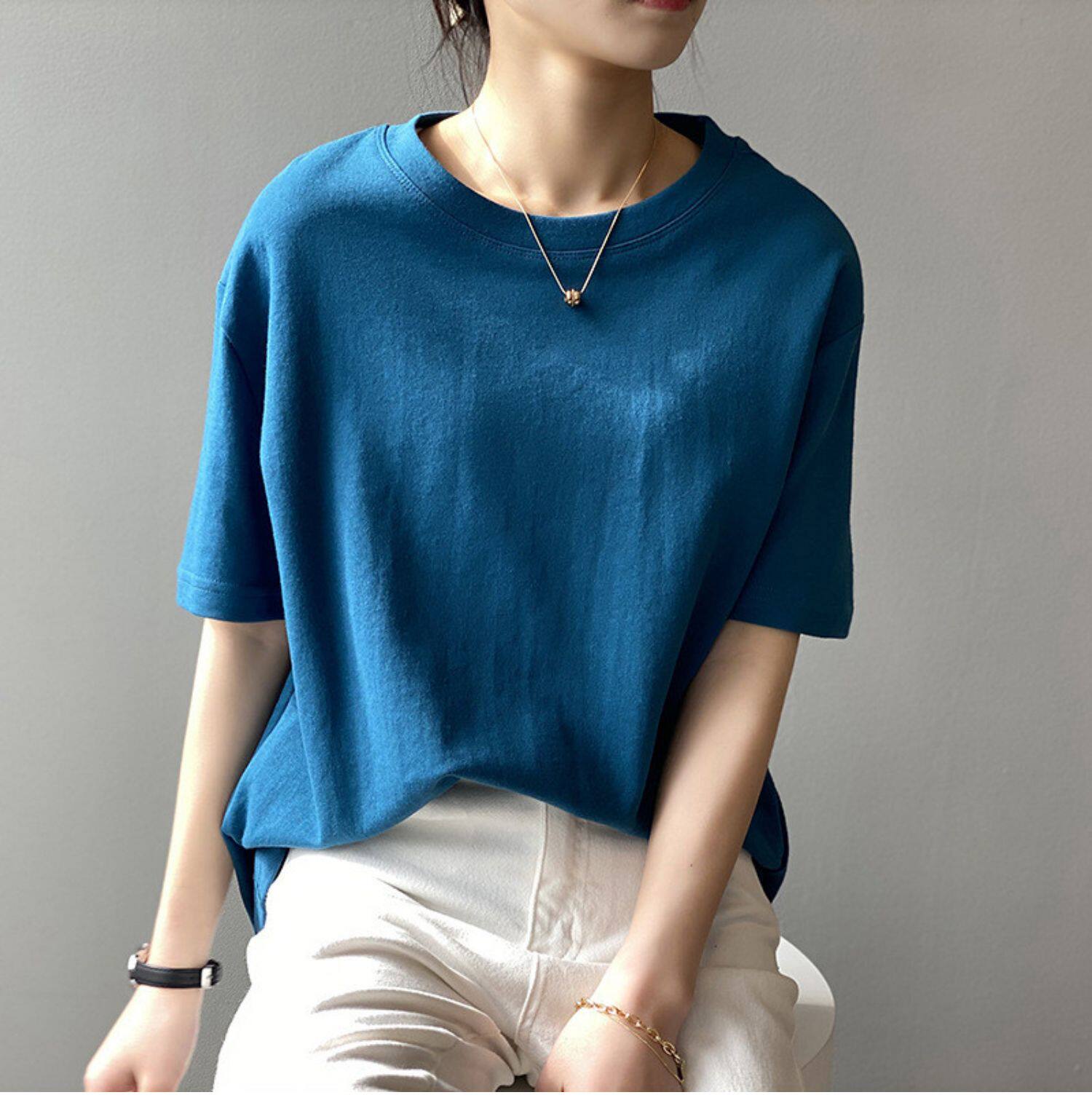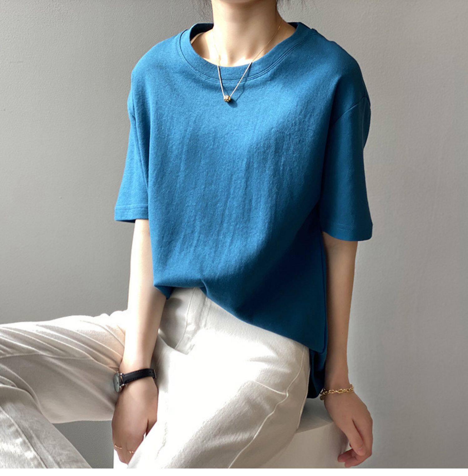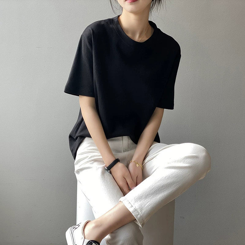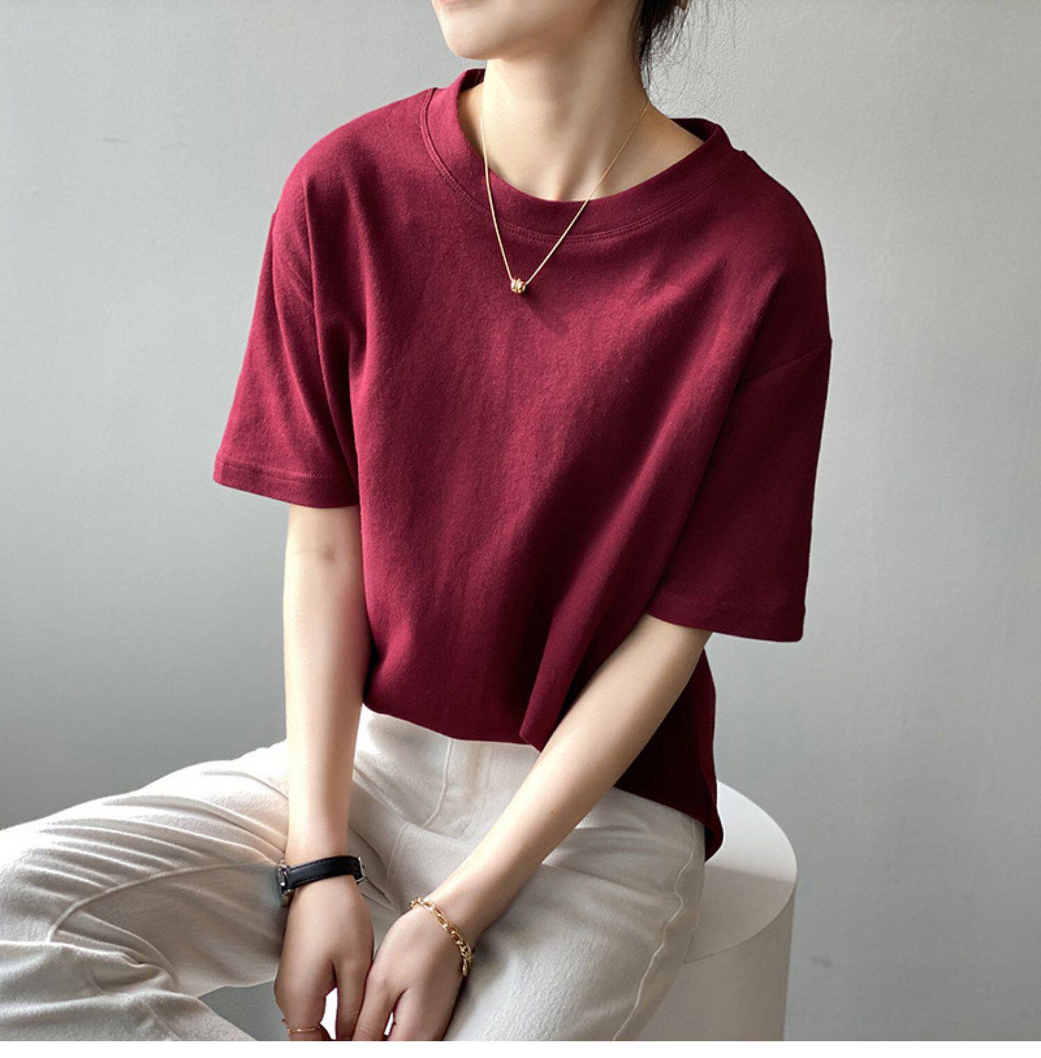 【トップス】無地 夏 ラウンドネック Tシャツ
