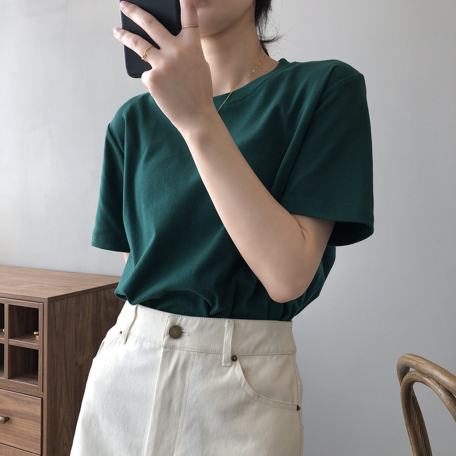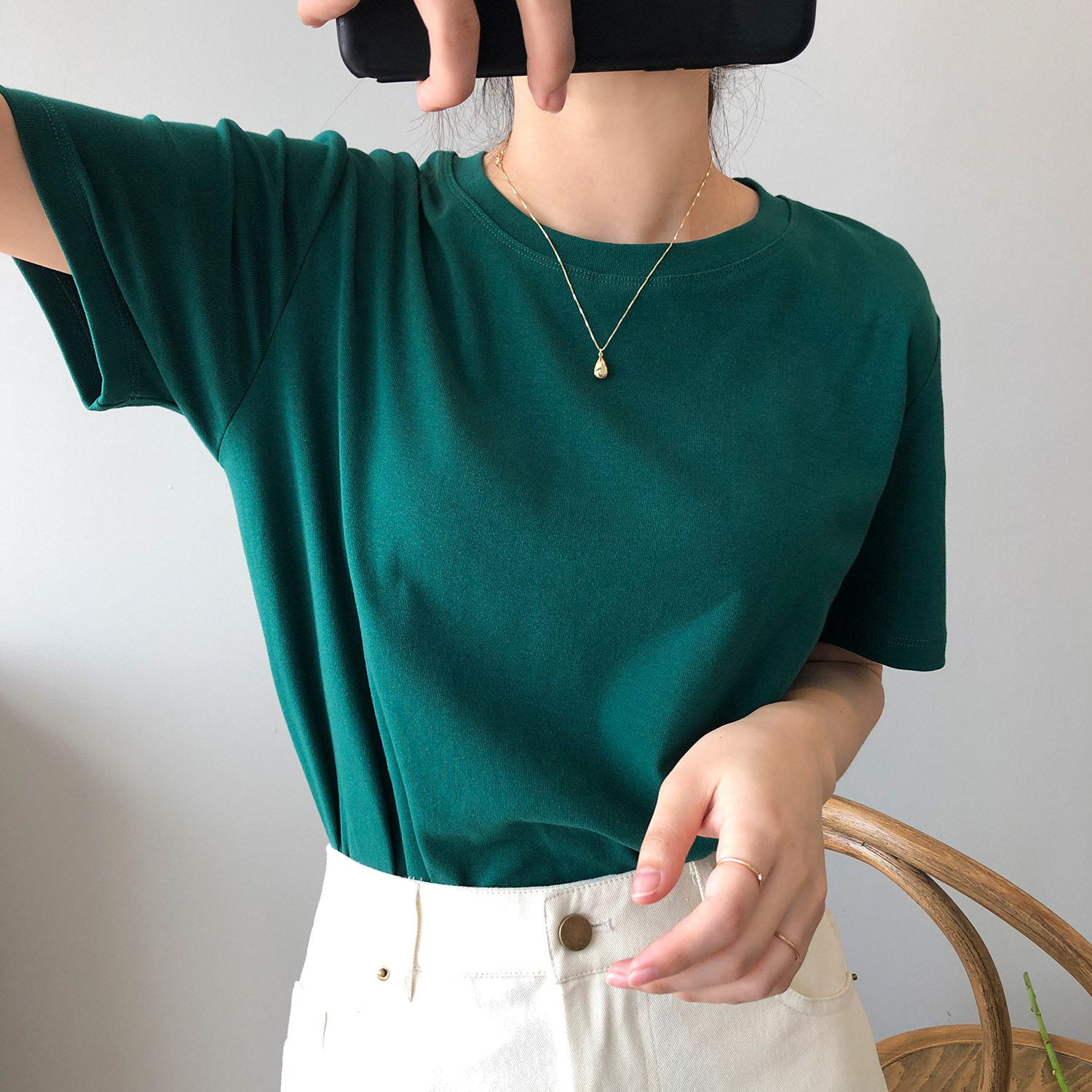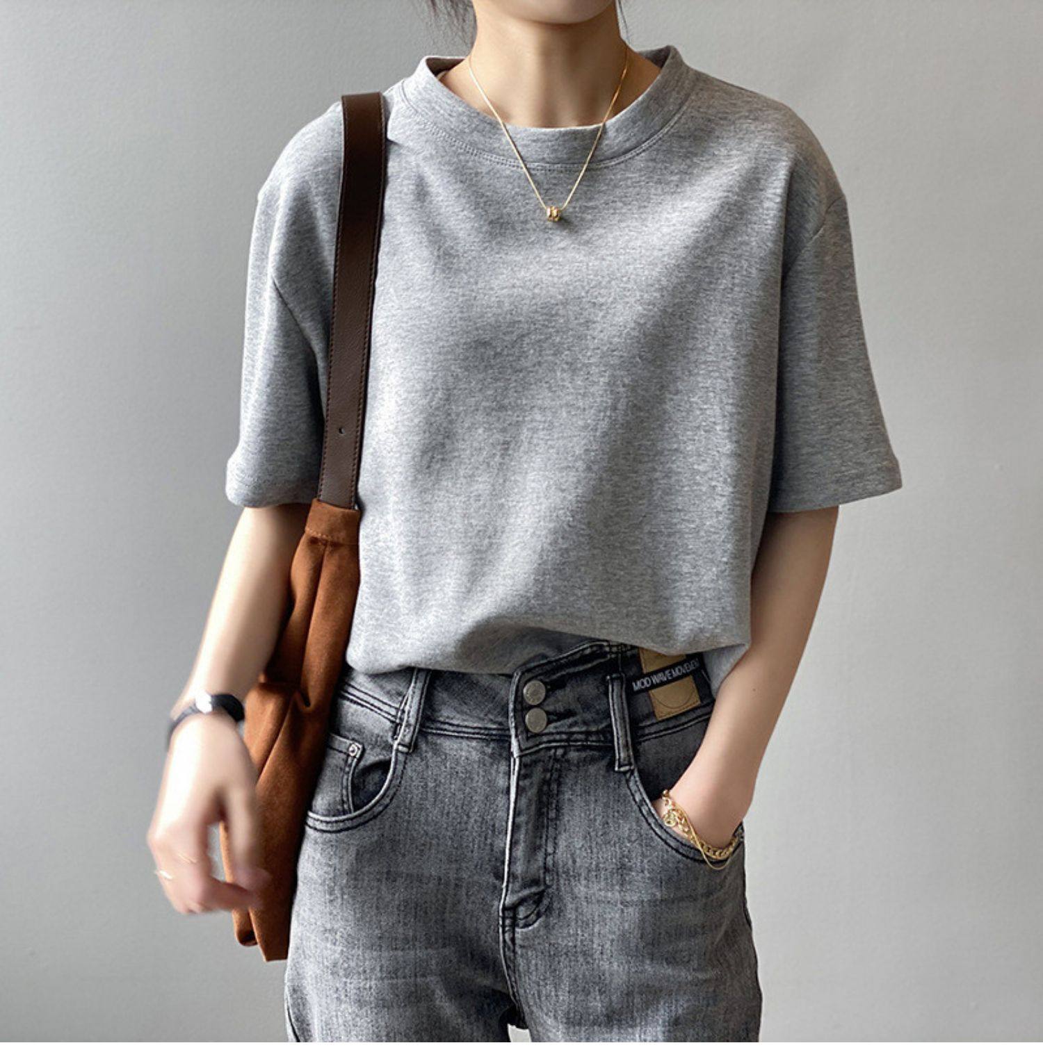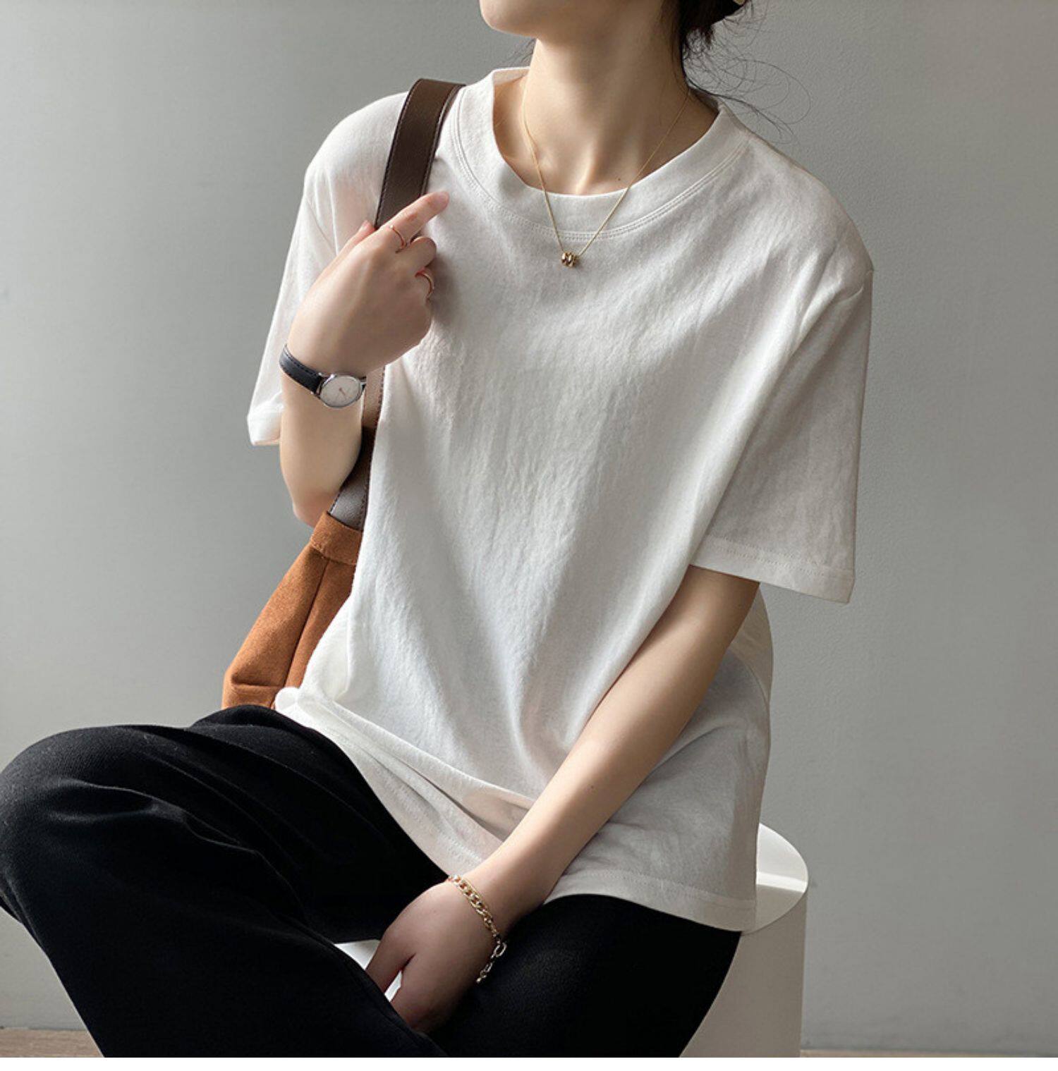【トップス】無地 夏 ラウンドネック Tシャツ