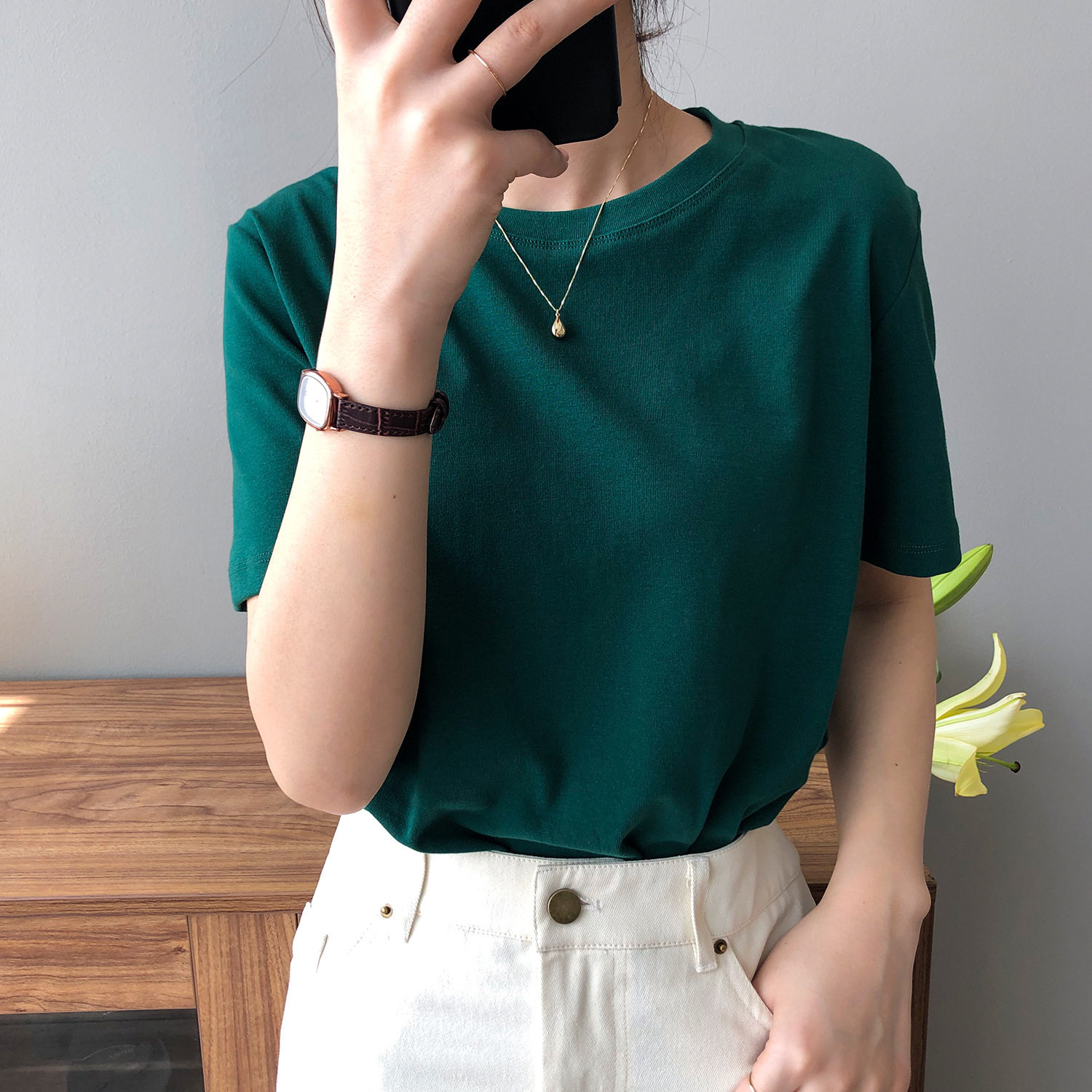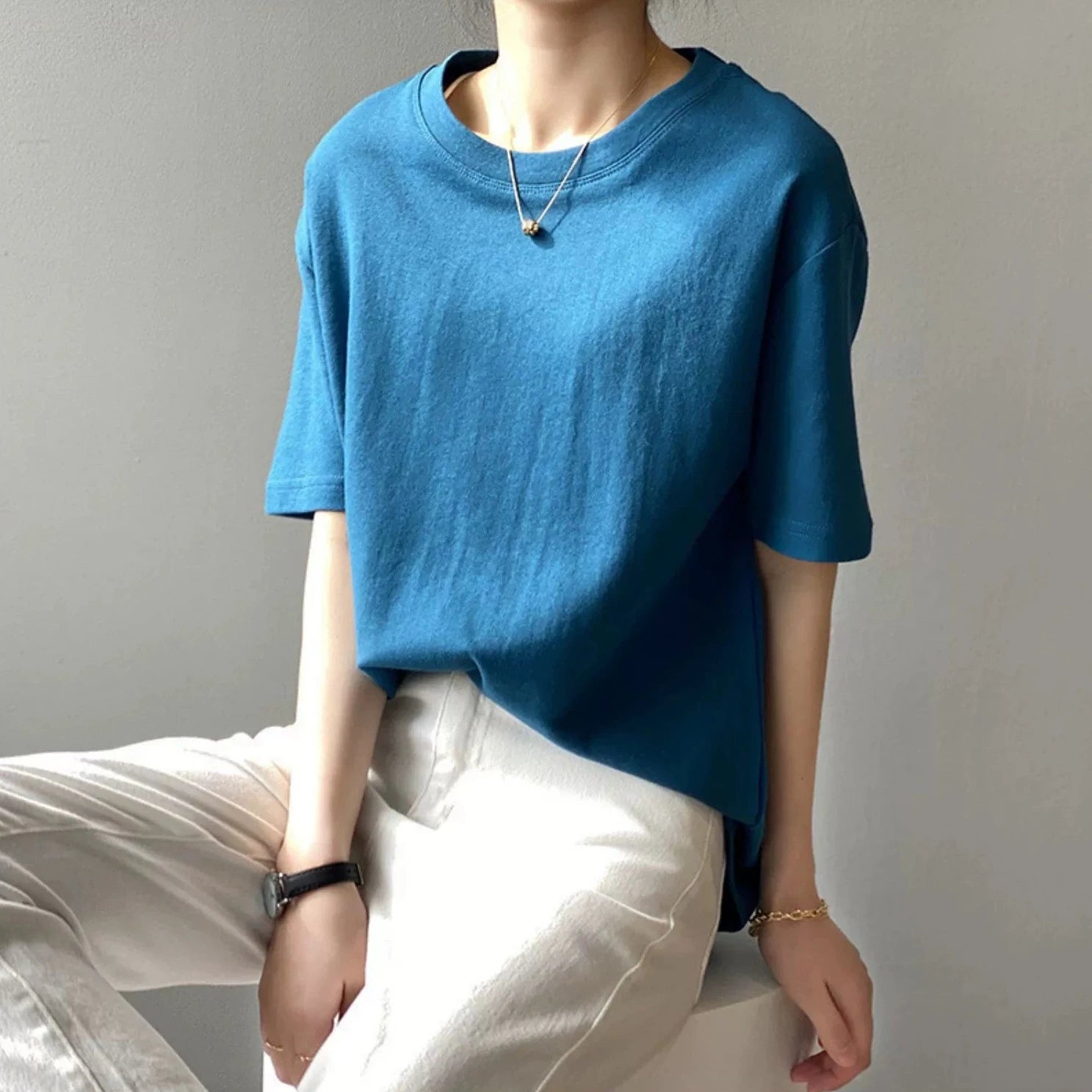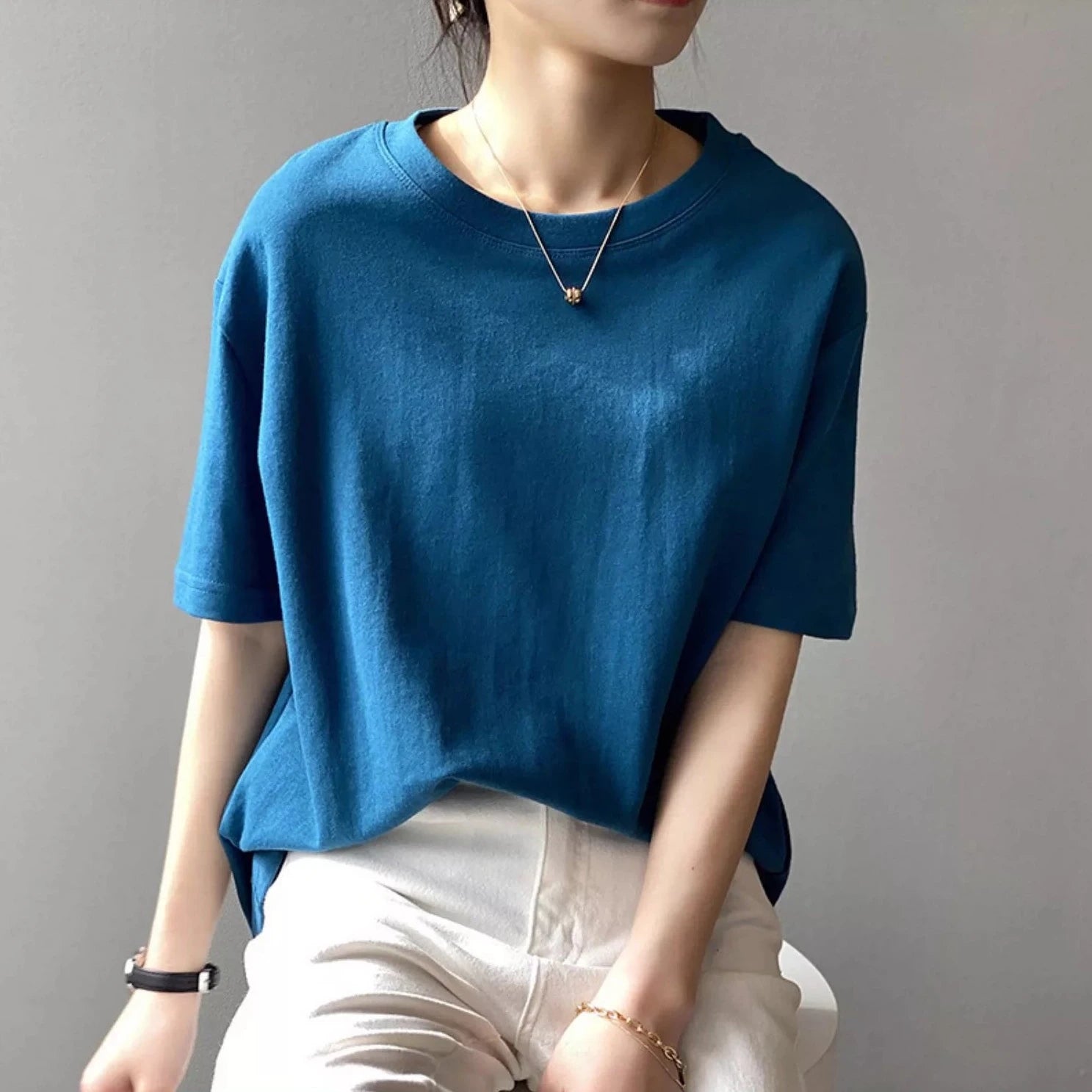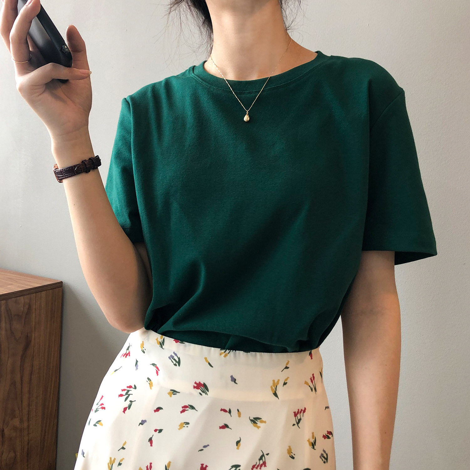 【トップス】無地 夏 ラウンドネック Tシャツ