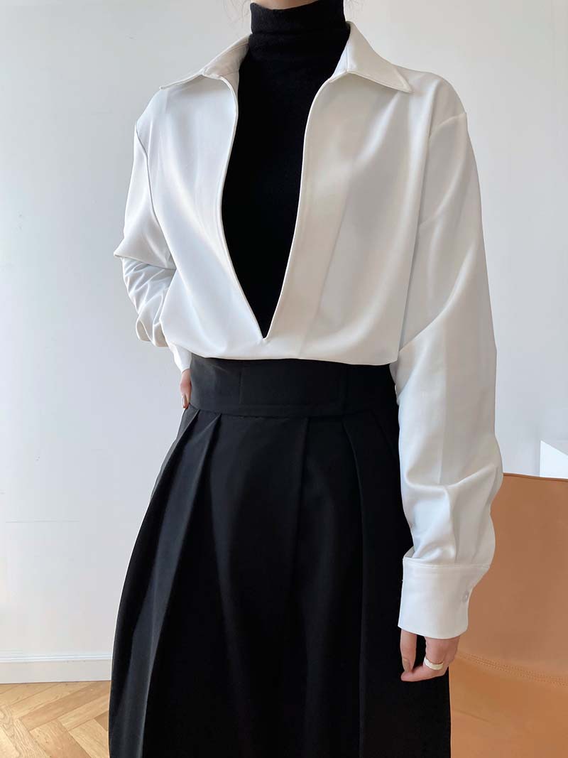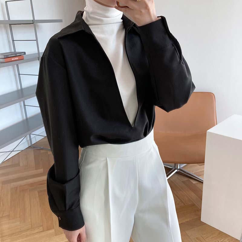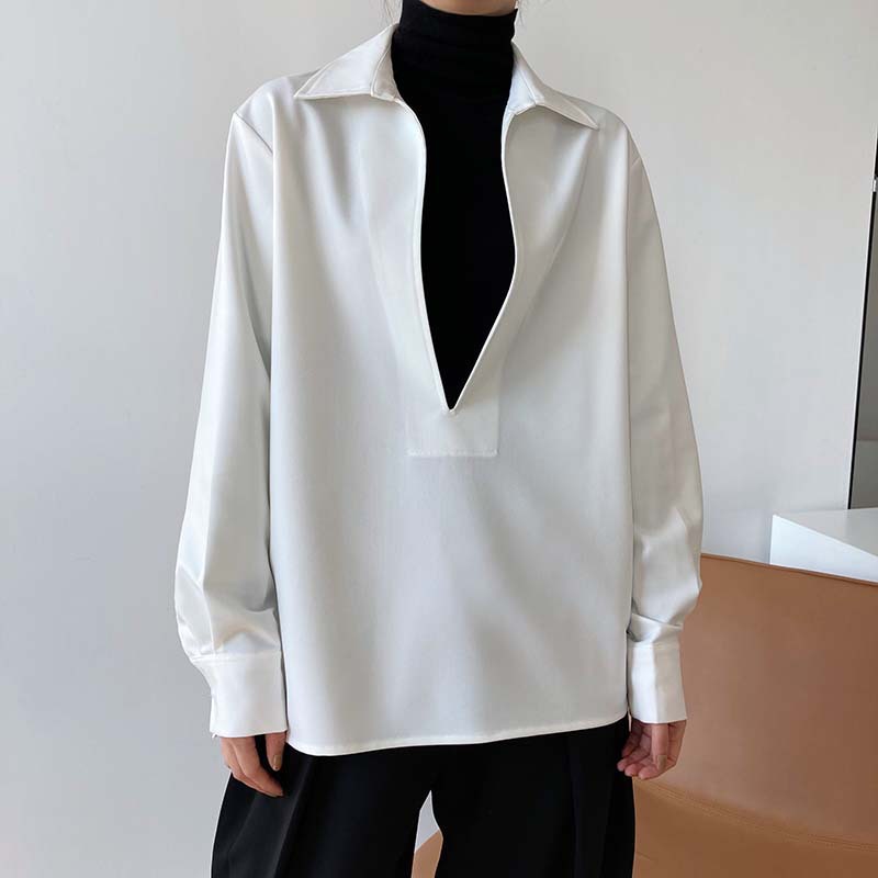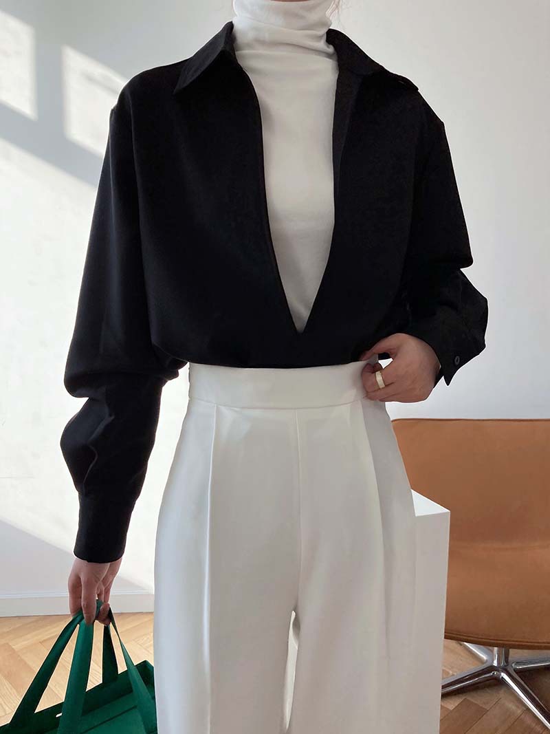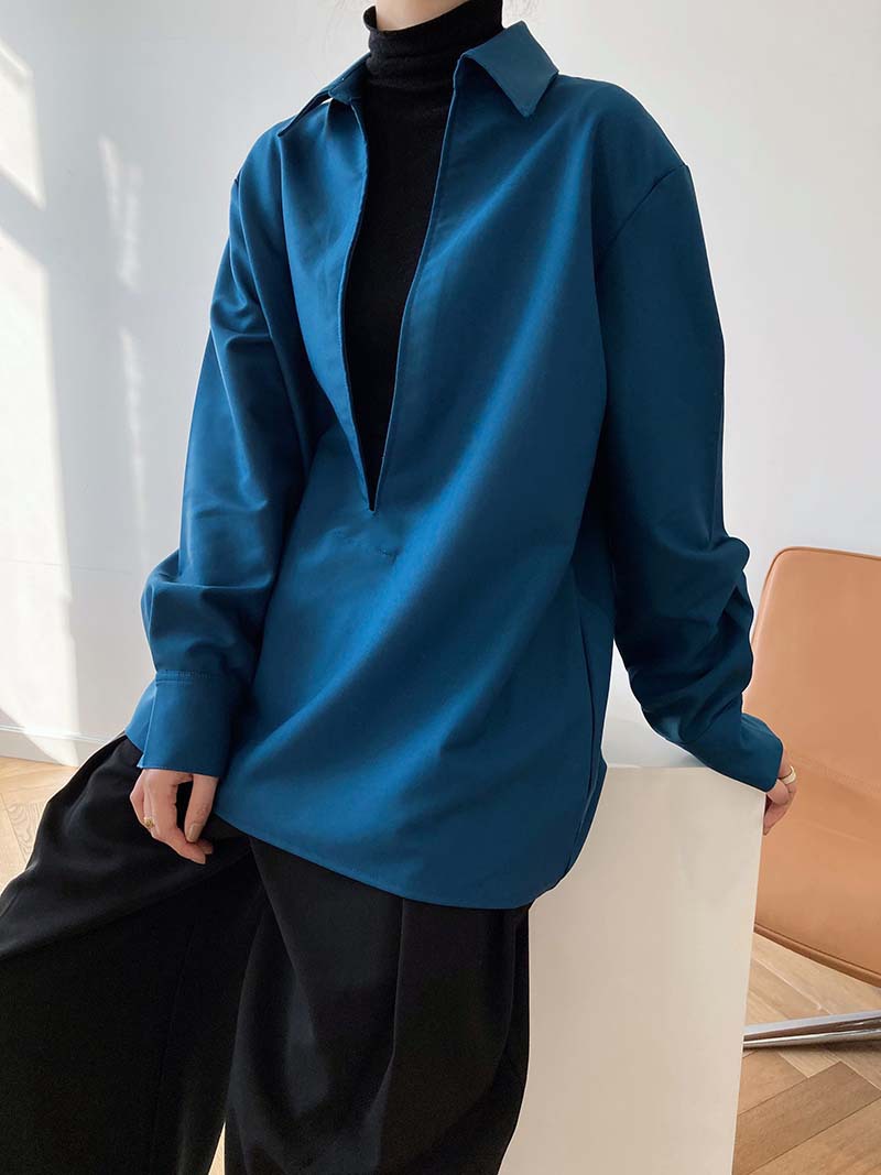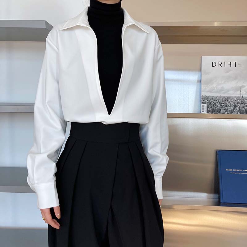 【トップス】通勤 長袖 Vネック 春秋 シャツ【SNシリーズ】