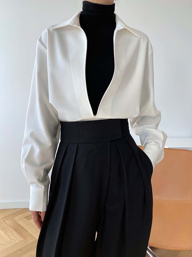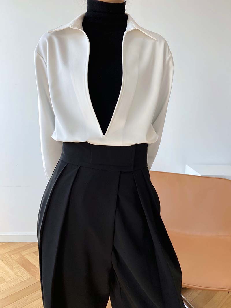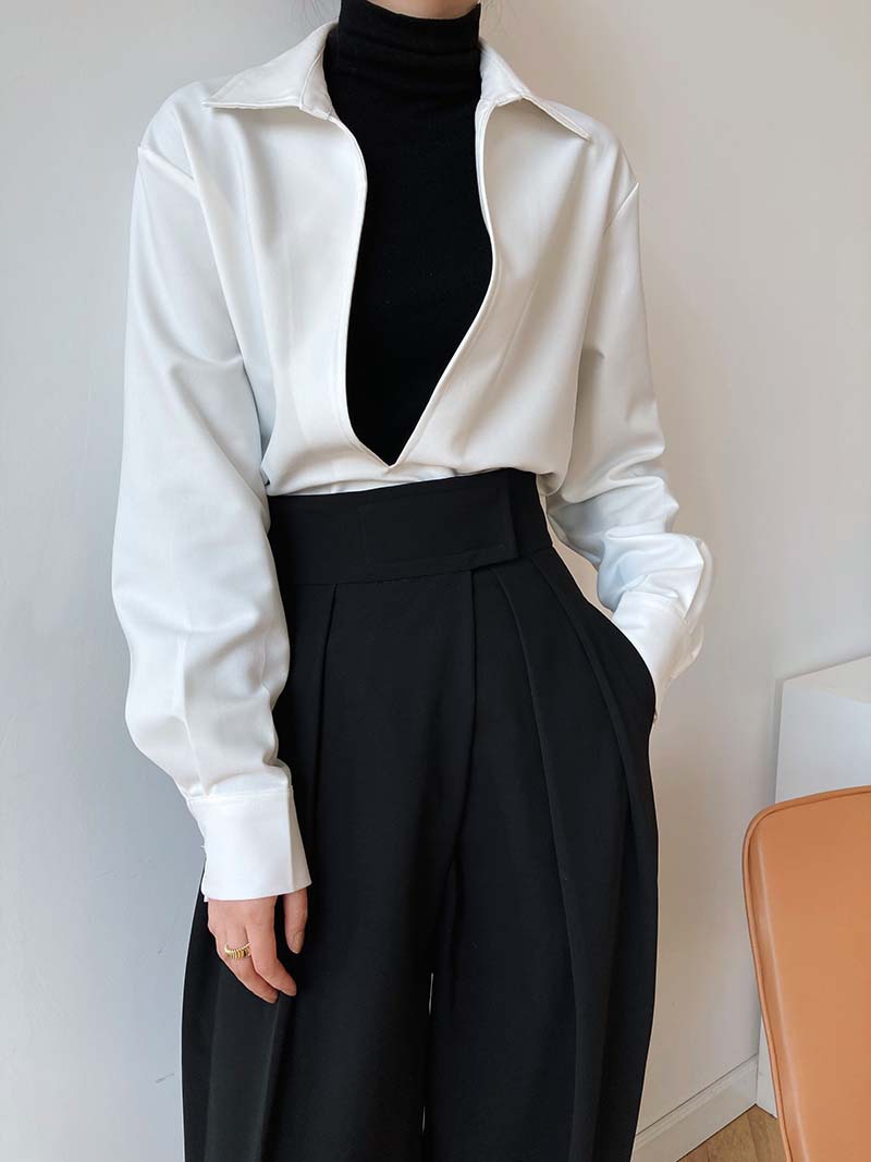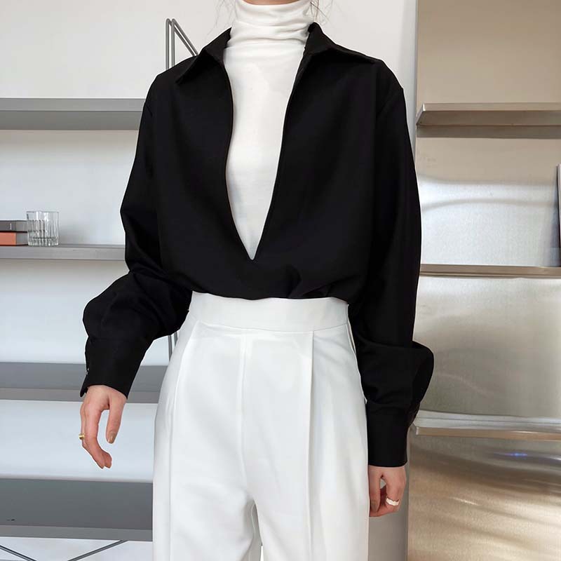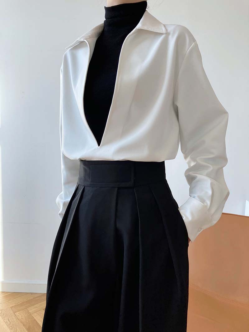 【トップス】通勤 長袖 Vネック 春秋 シャツ【SNシリーズ】