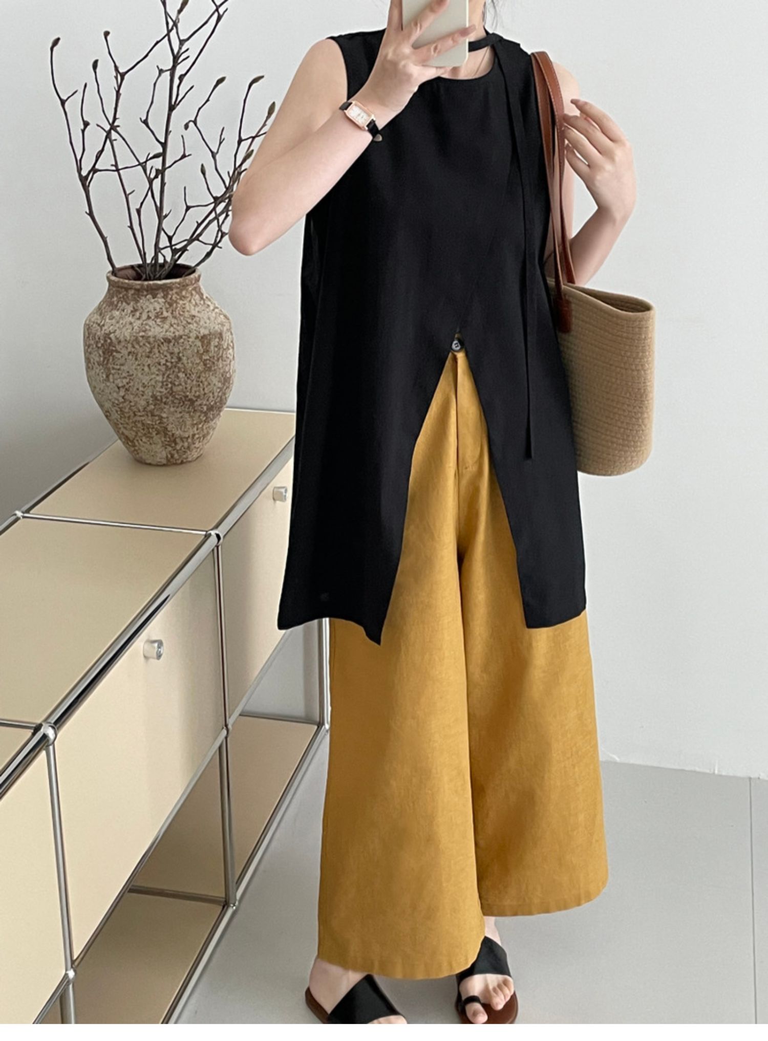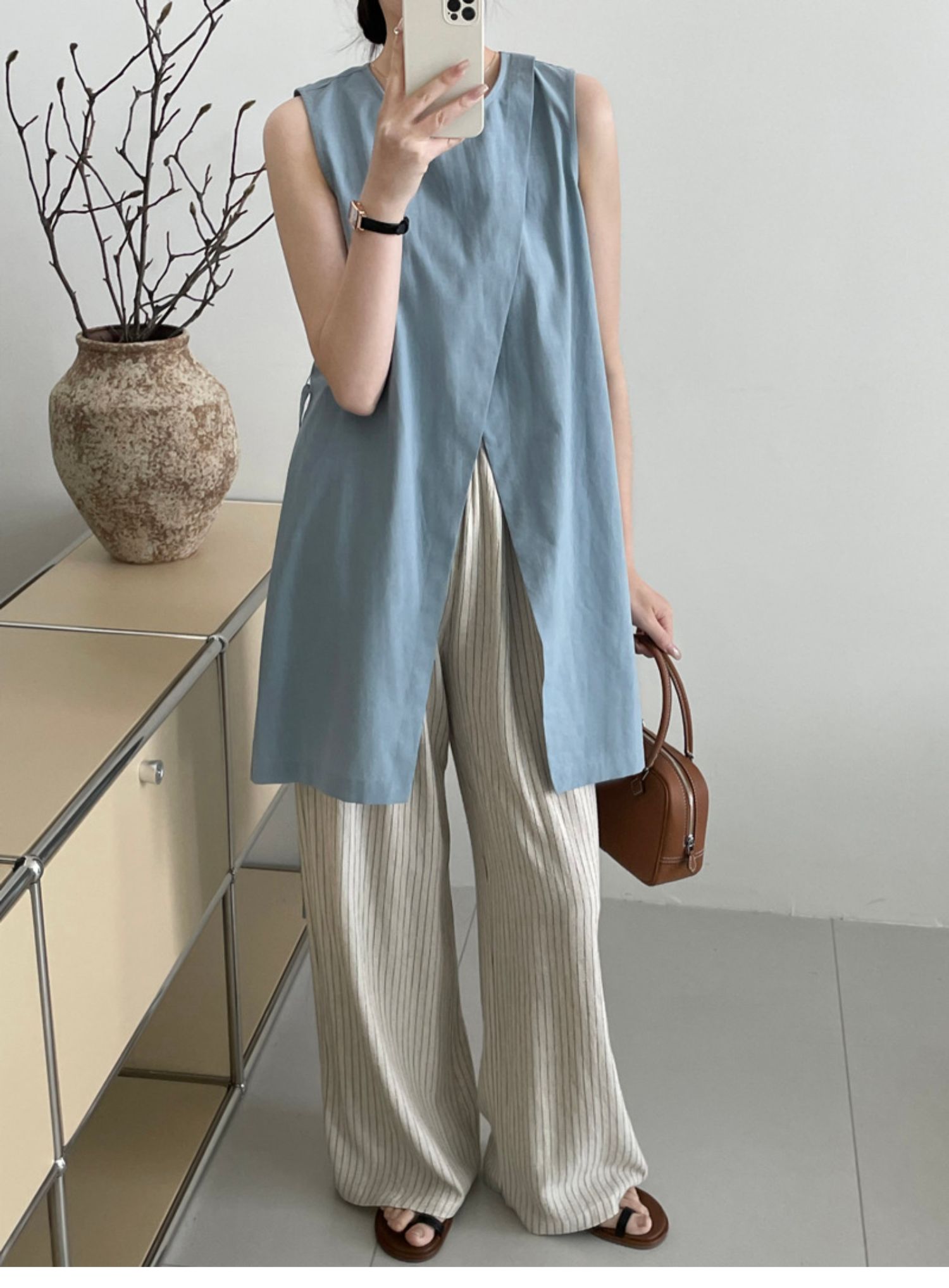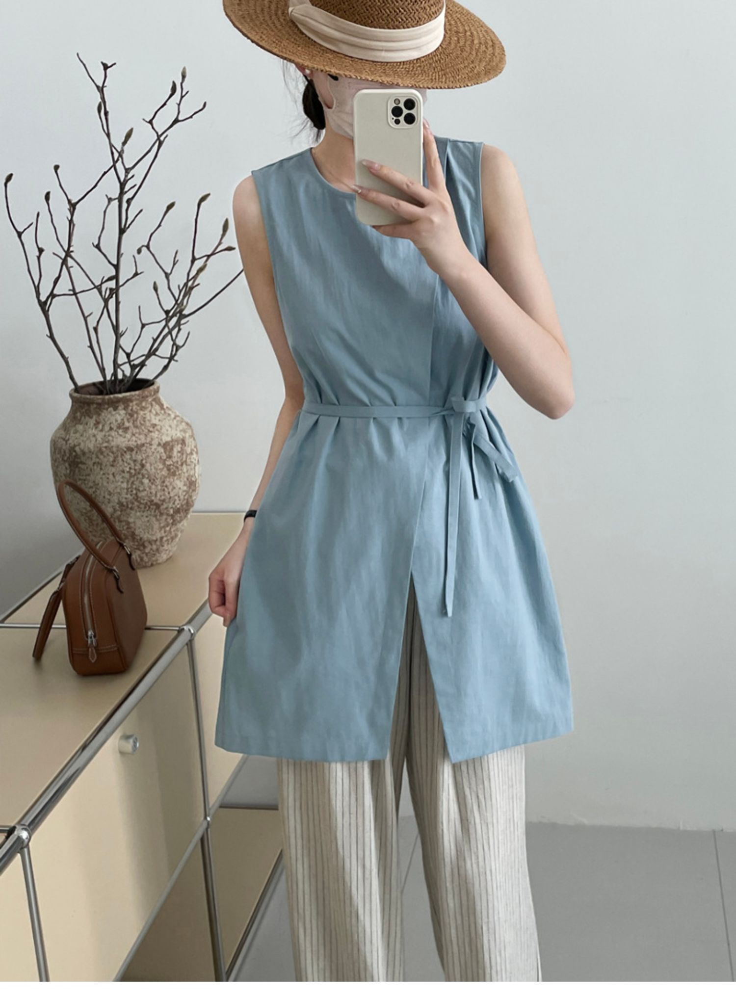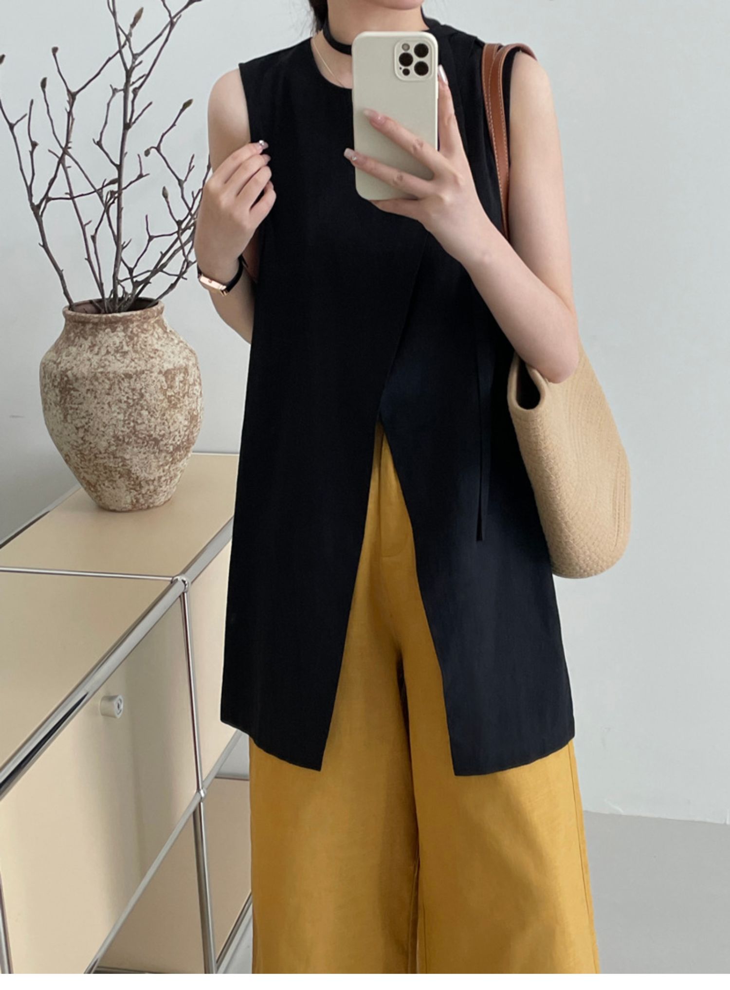 【トップス】不規則 スリット 夏 ノースリーブ シャツ 【JZシリーズ】