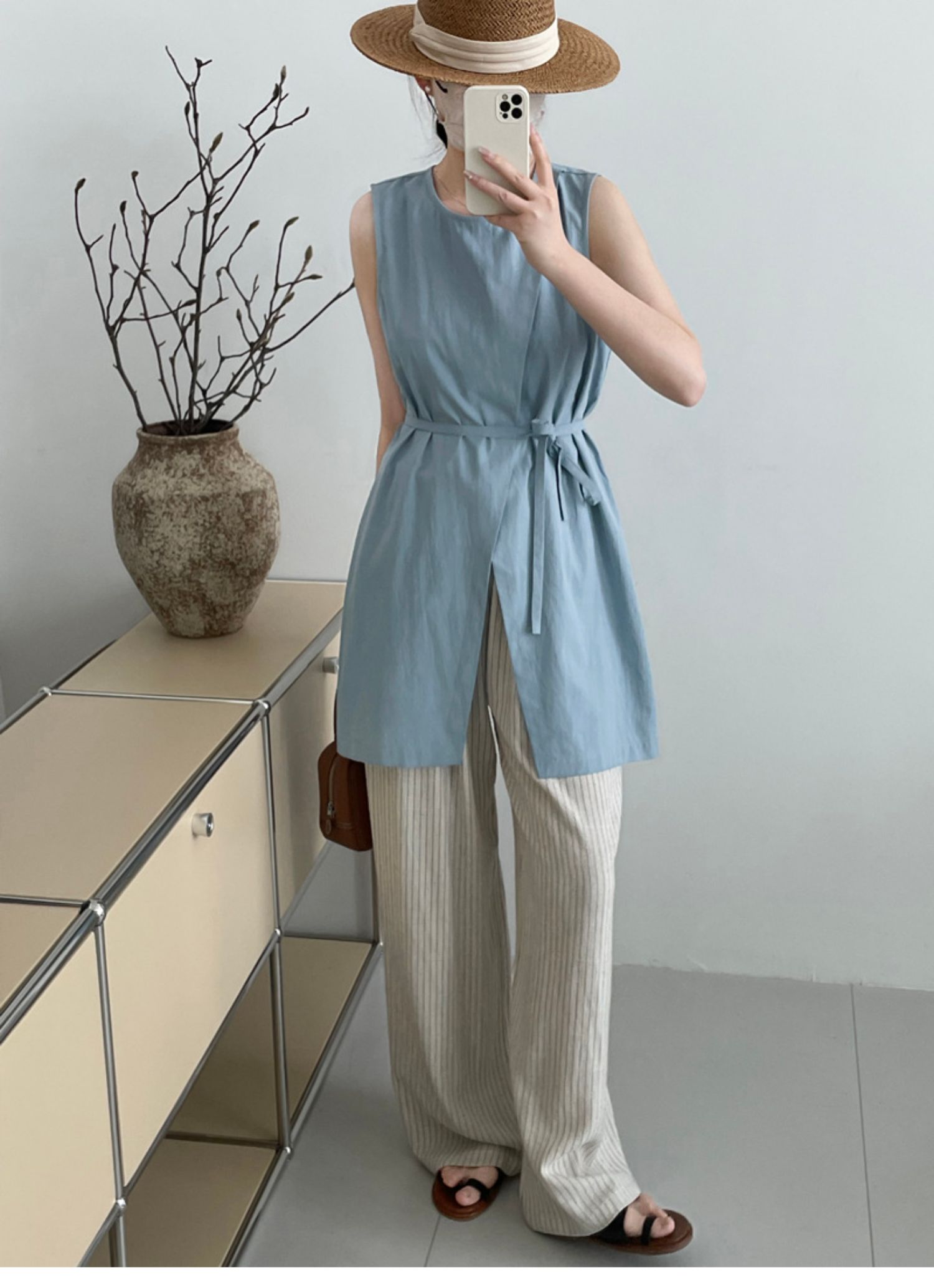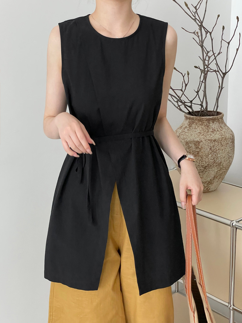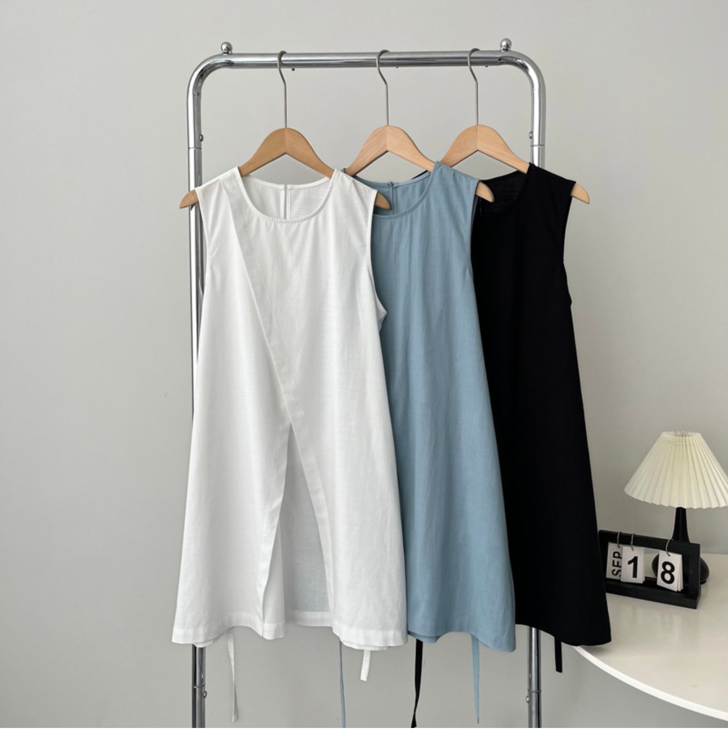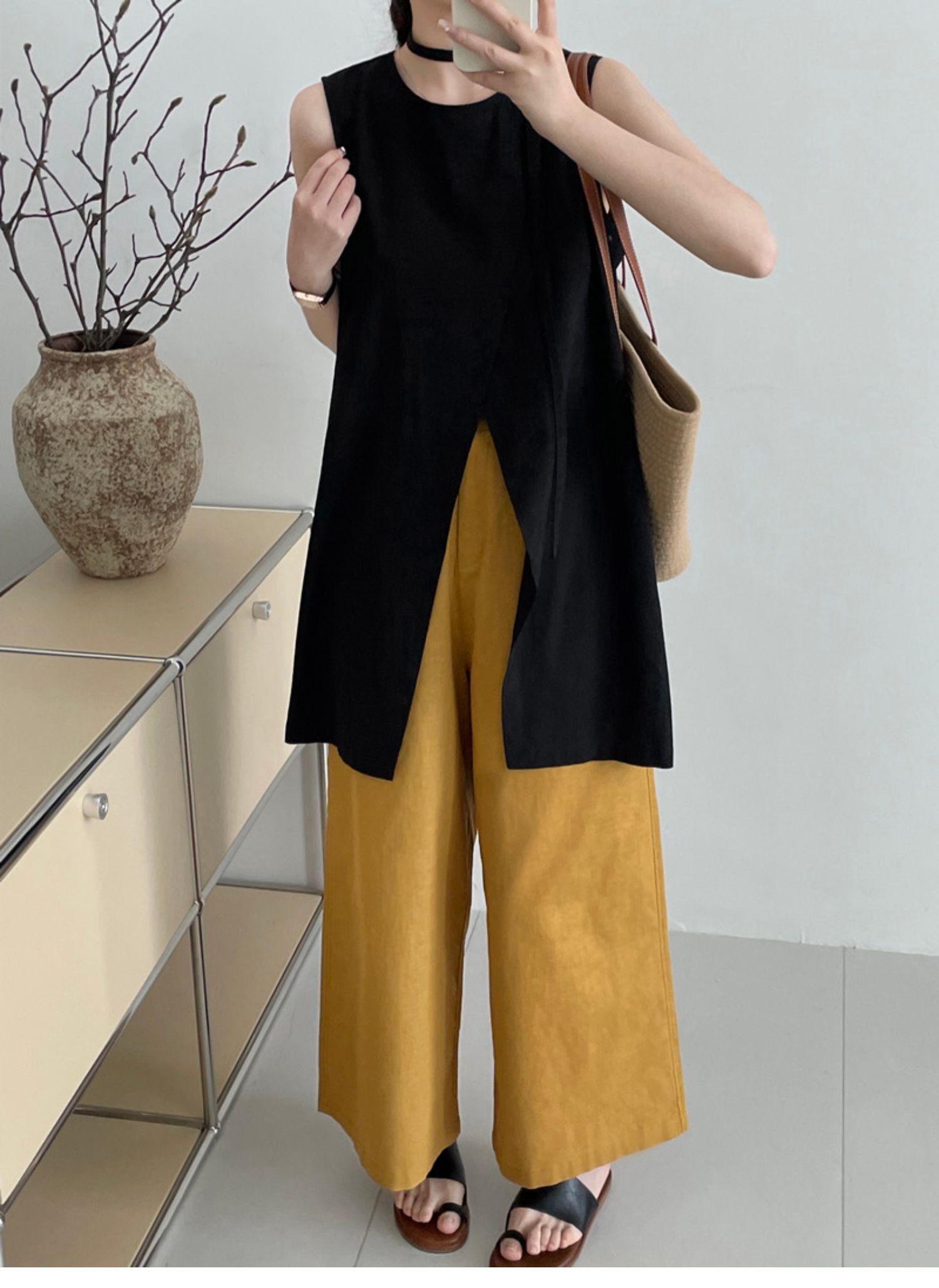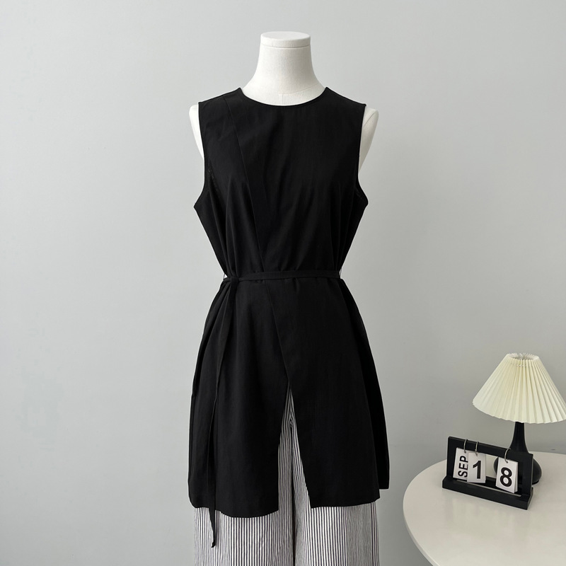 【トップス】不規則 スリット 夏 ノースリーブ シャツ 【JZシリーズ】