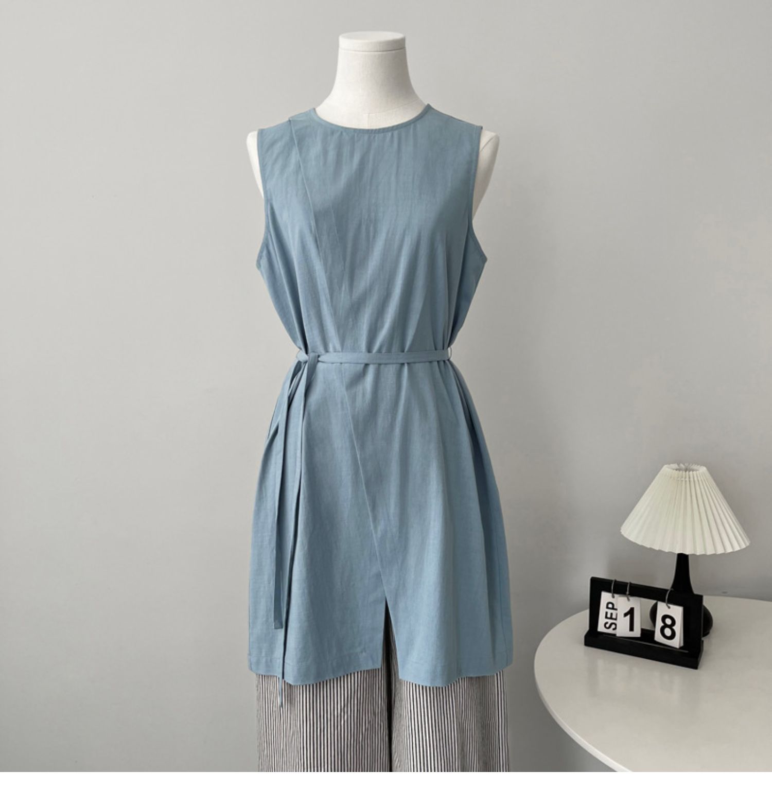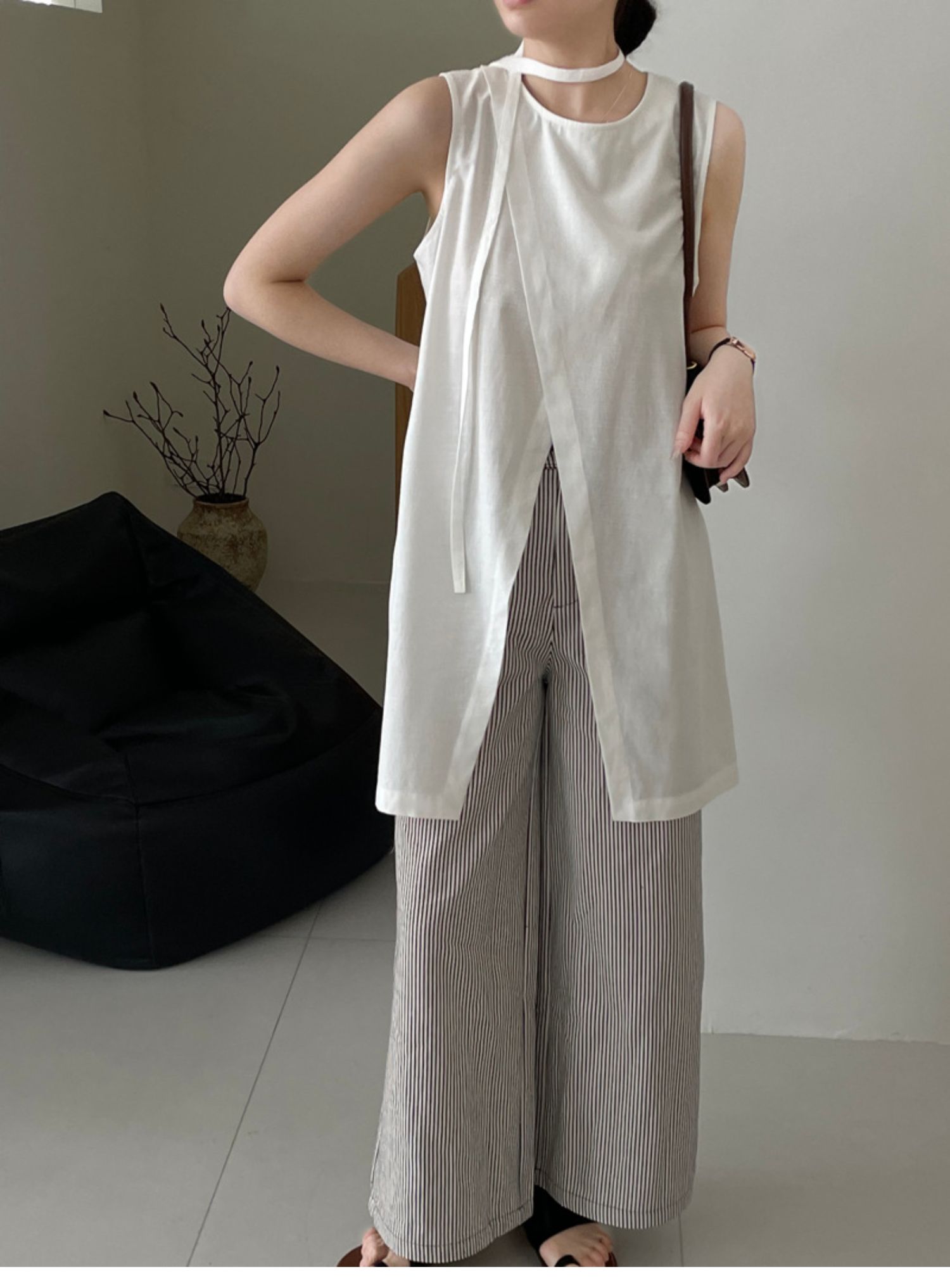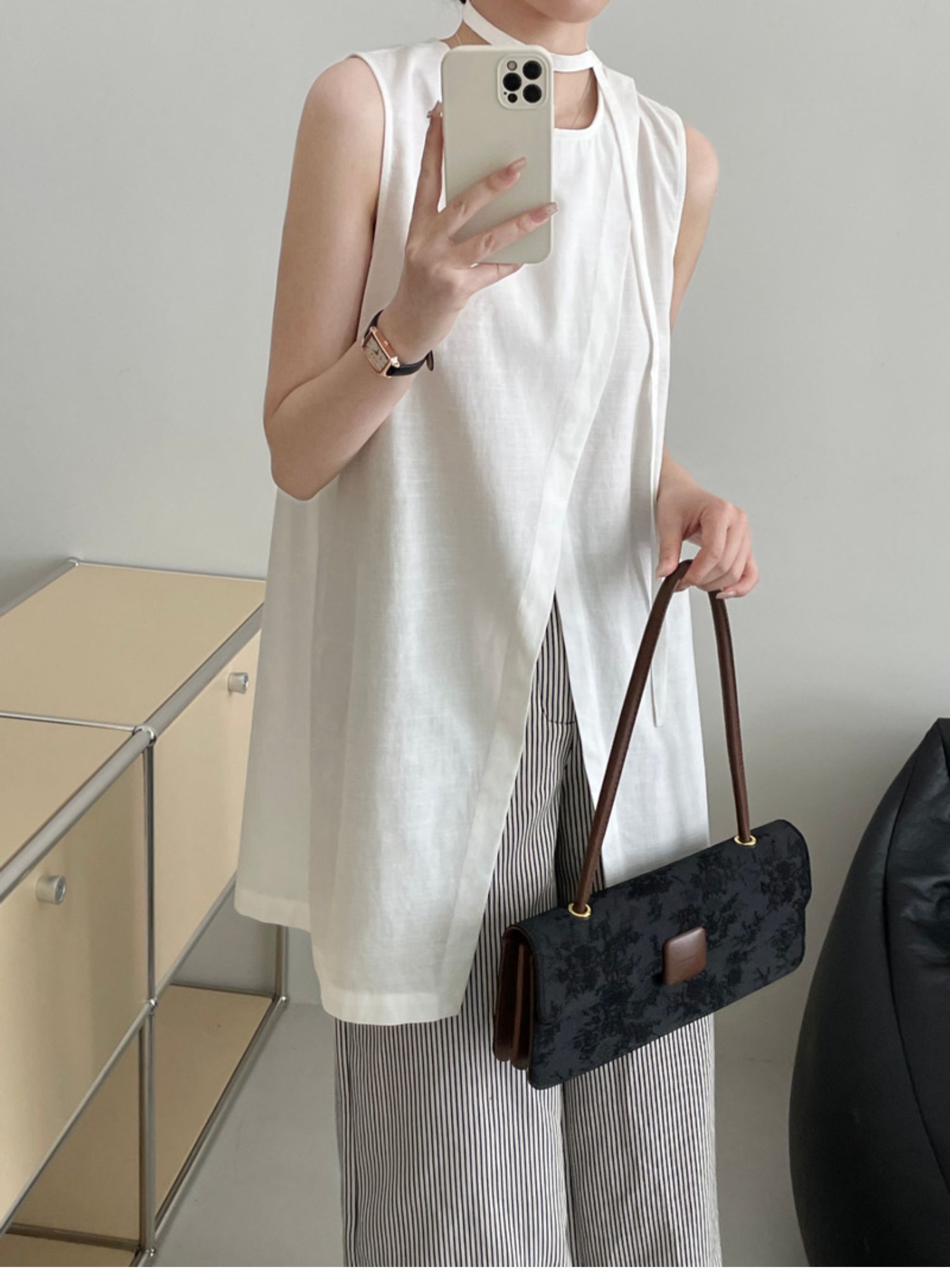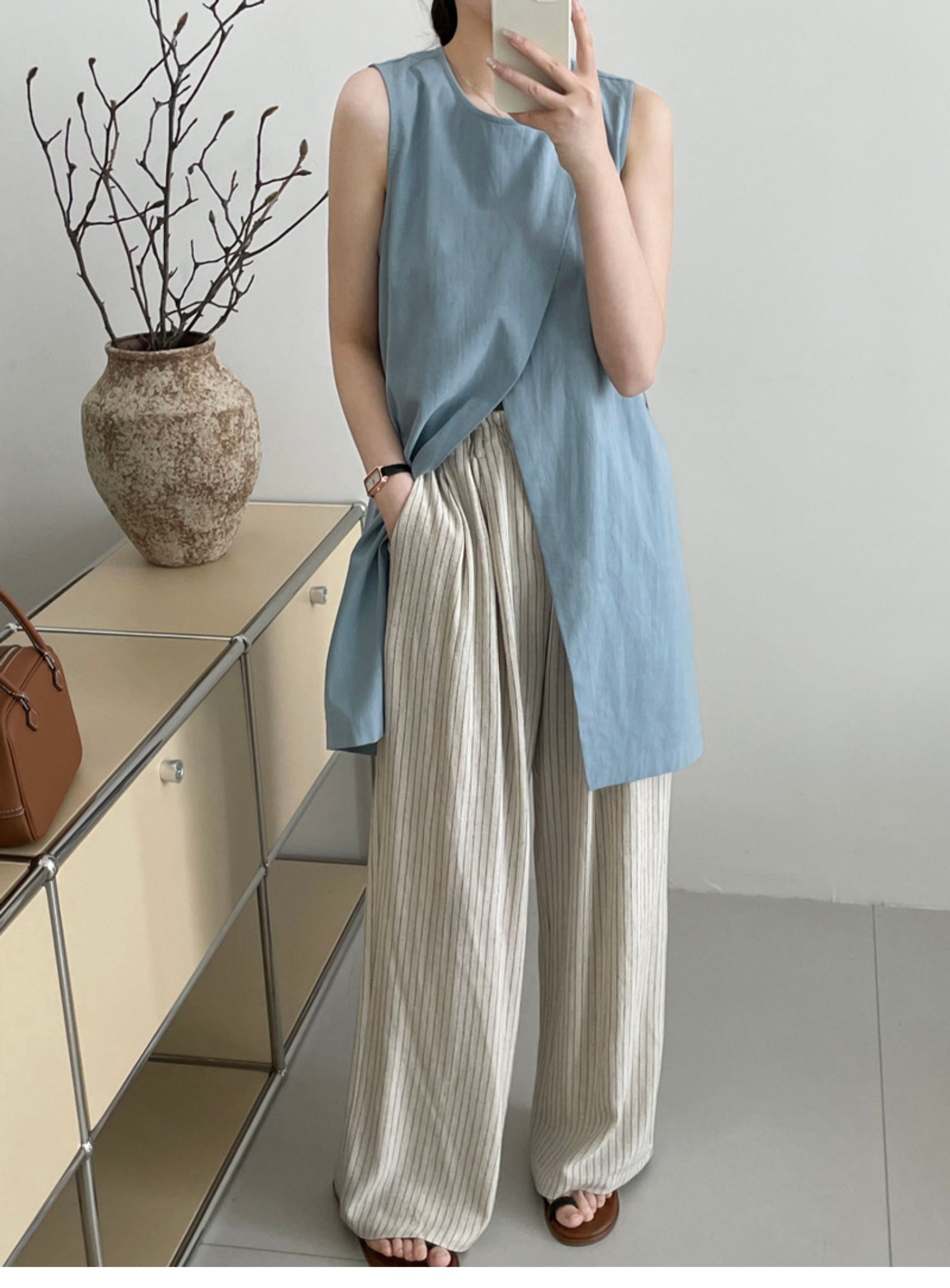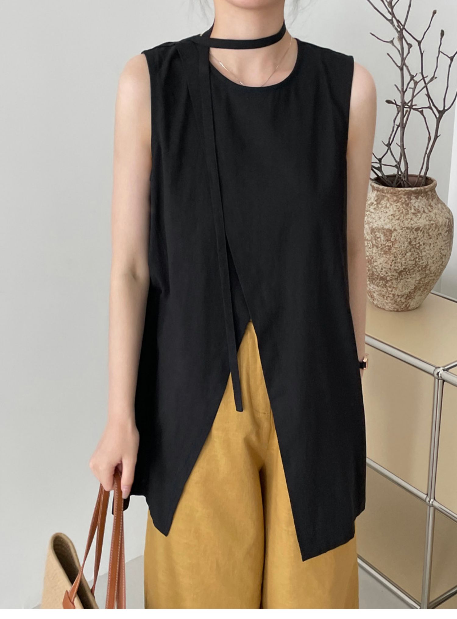 【商品名】【トップス】不規則 スリット ノースリーブ シャツ