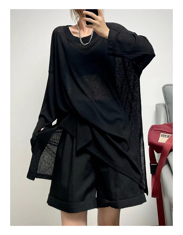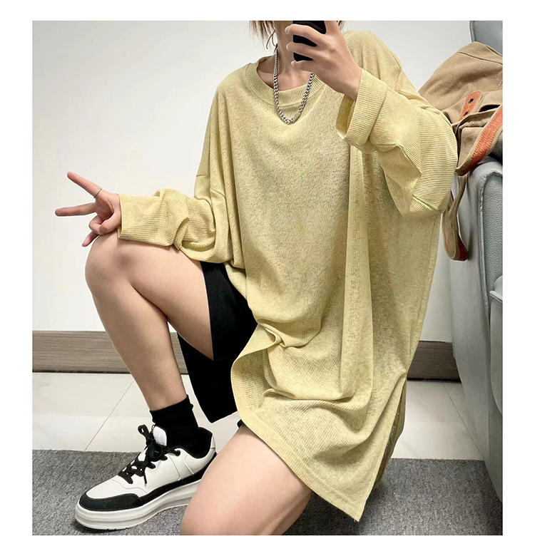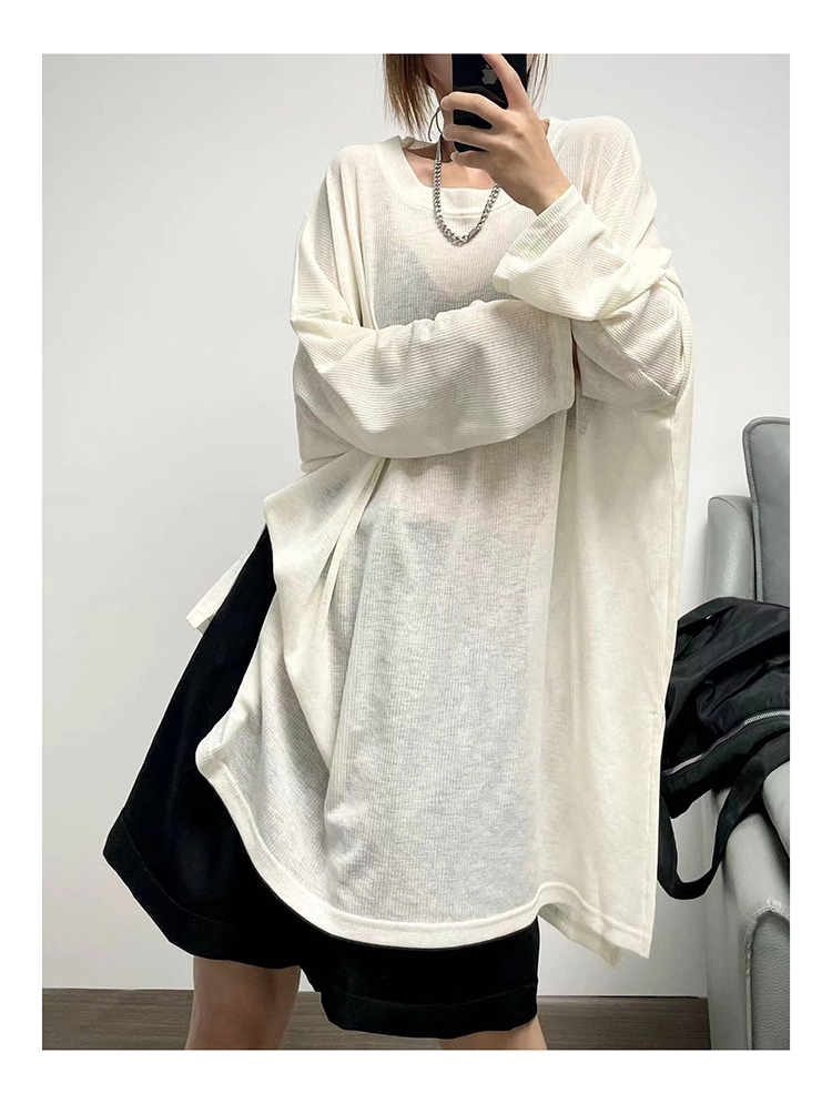 【トップス】韓国風 通気性 夏 物理的な日焼け防止 ロング Tシャツ