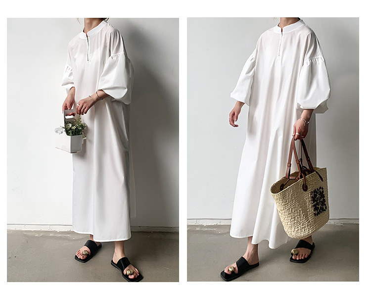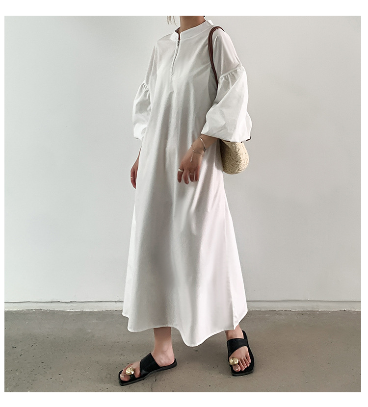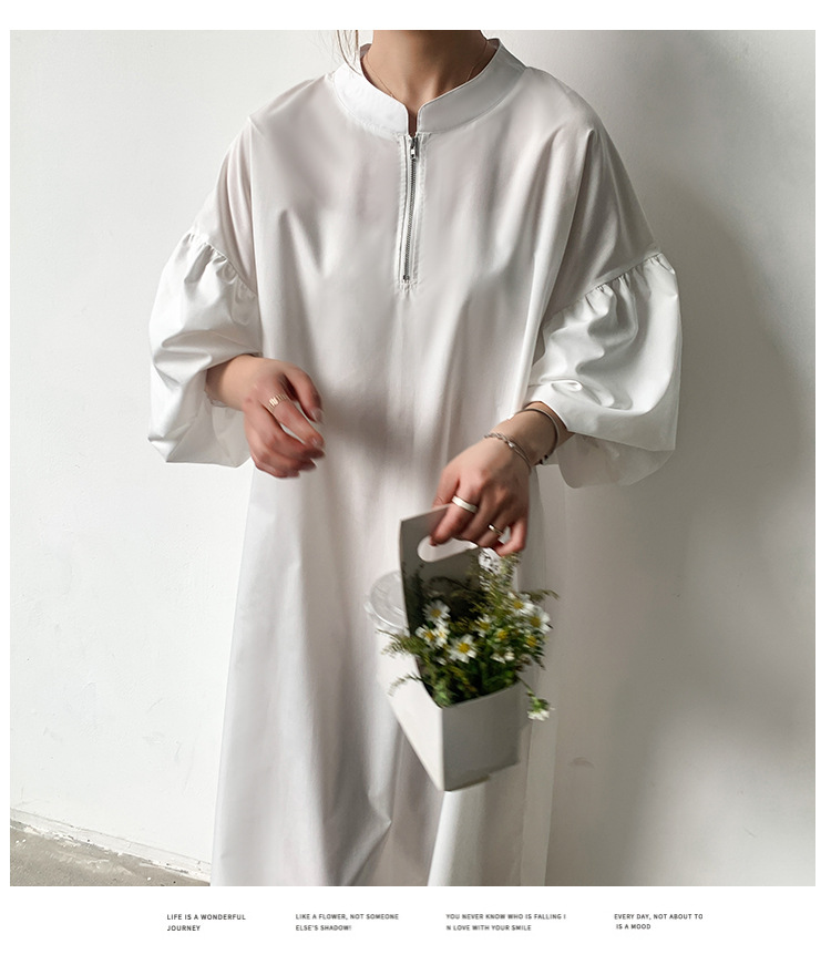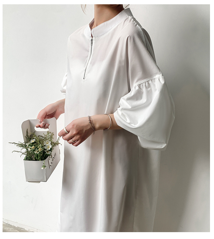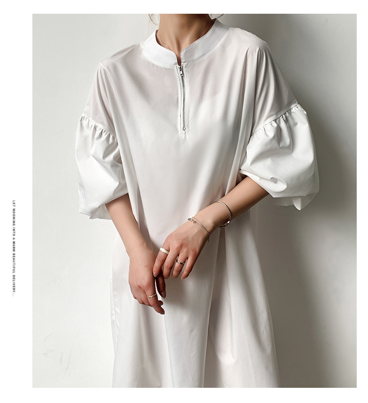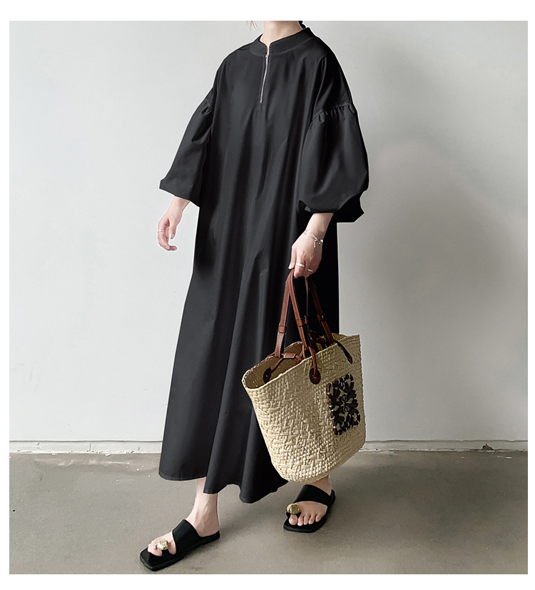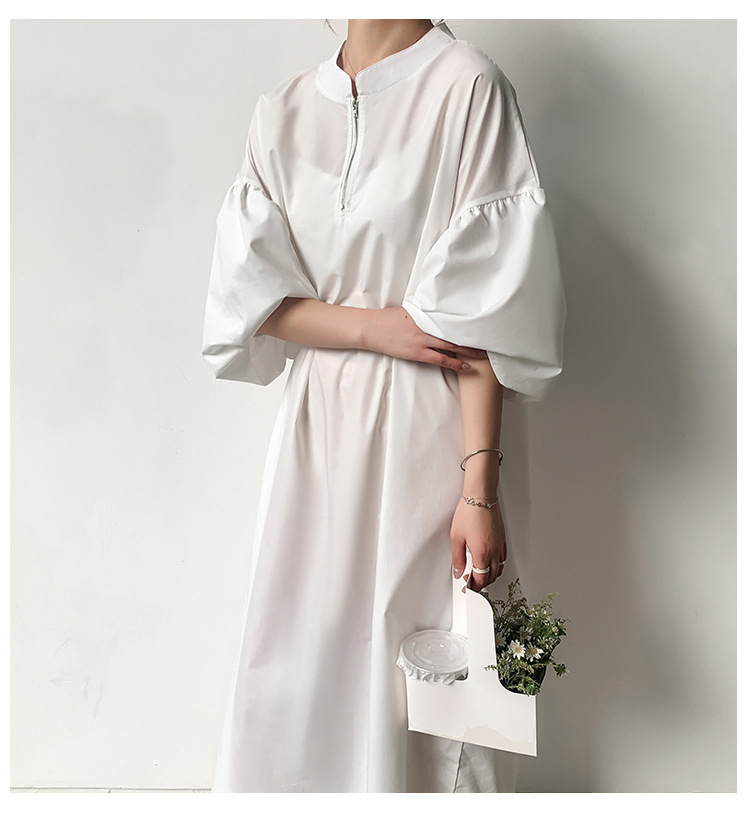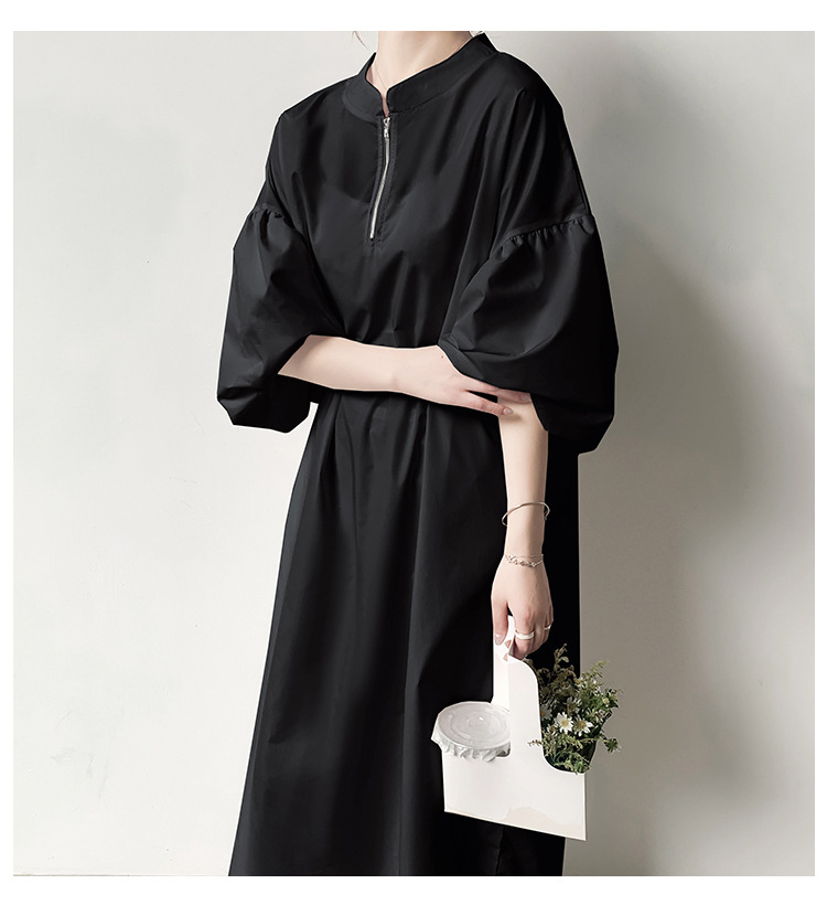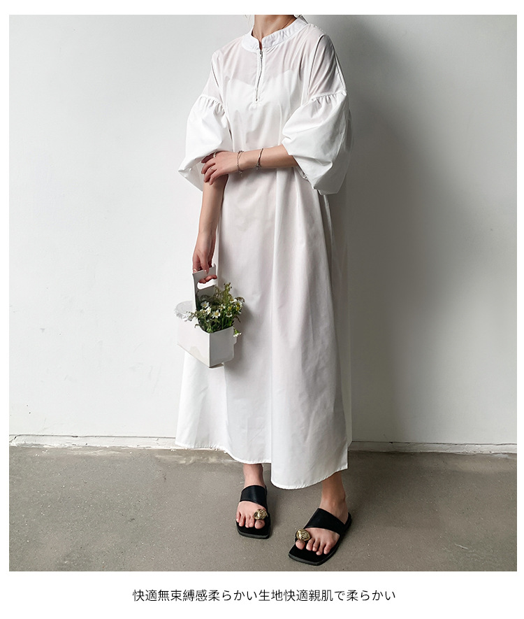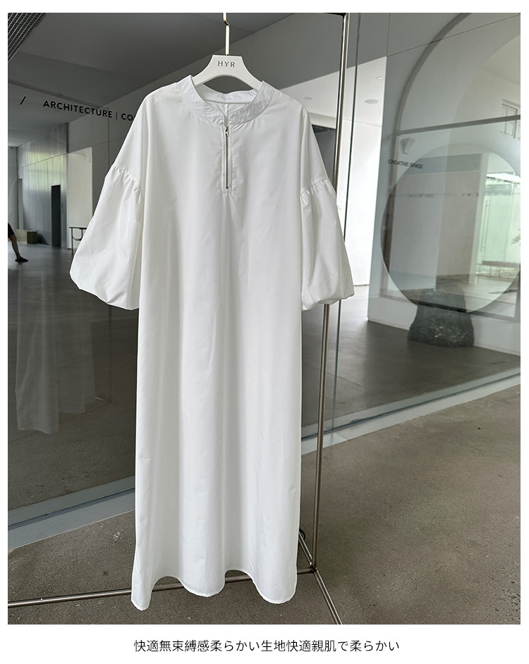【商品名】【ワンピース】快適な着心地 無地 ニット ジッパー 高級 半袖ワンピース