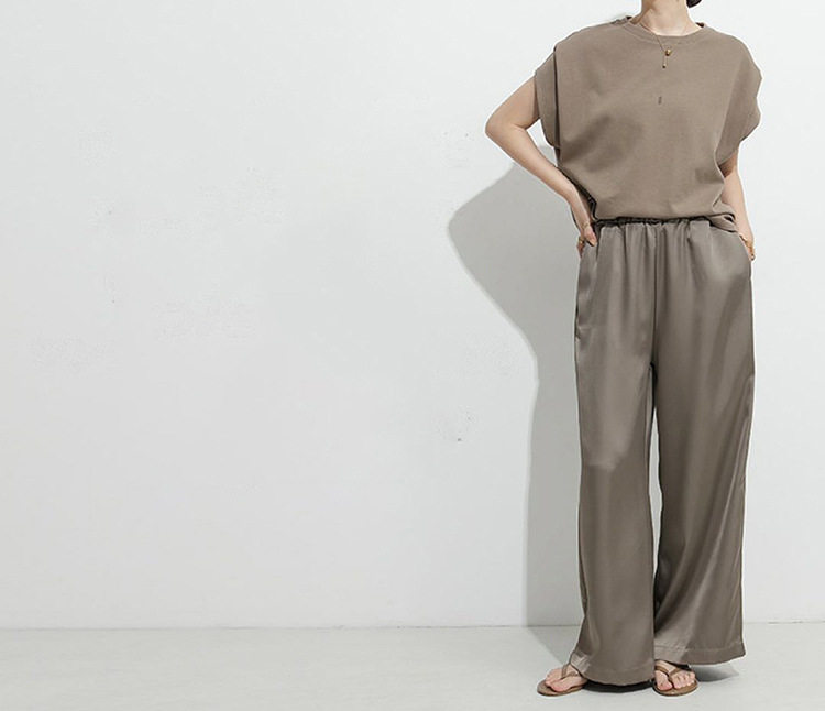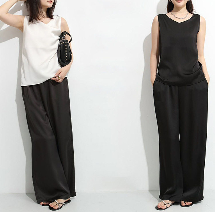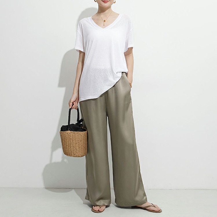 【ボトムス】ドレープ カジュアル 無地 春夏 ルーズ ワイドパンツ