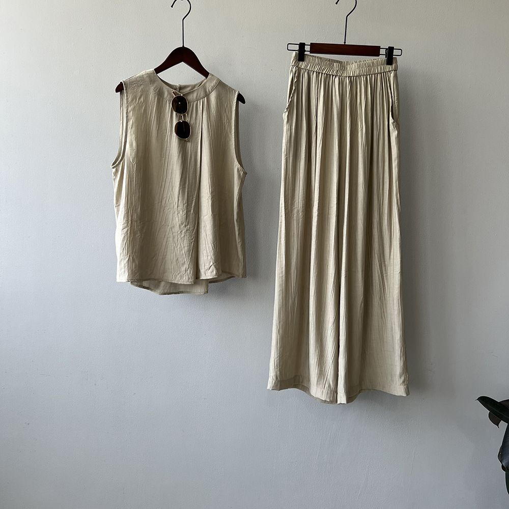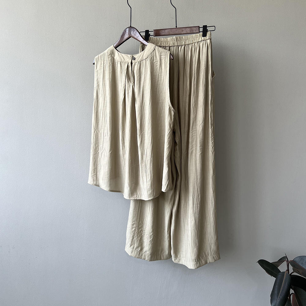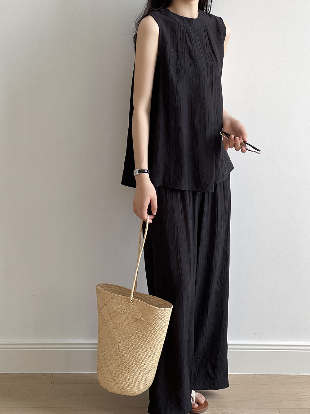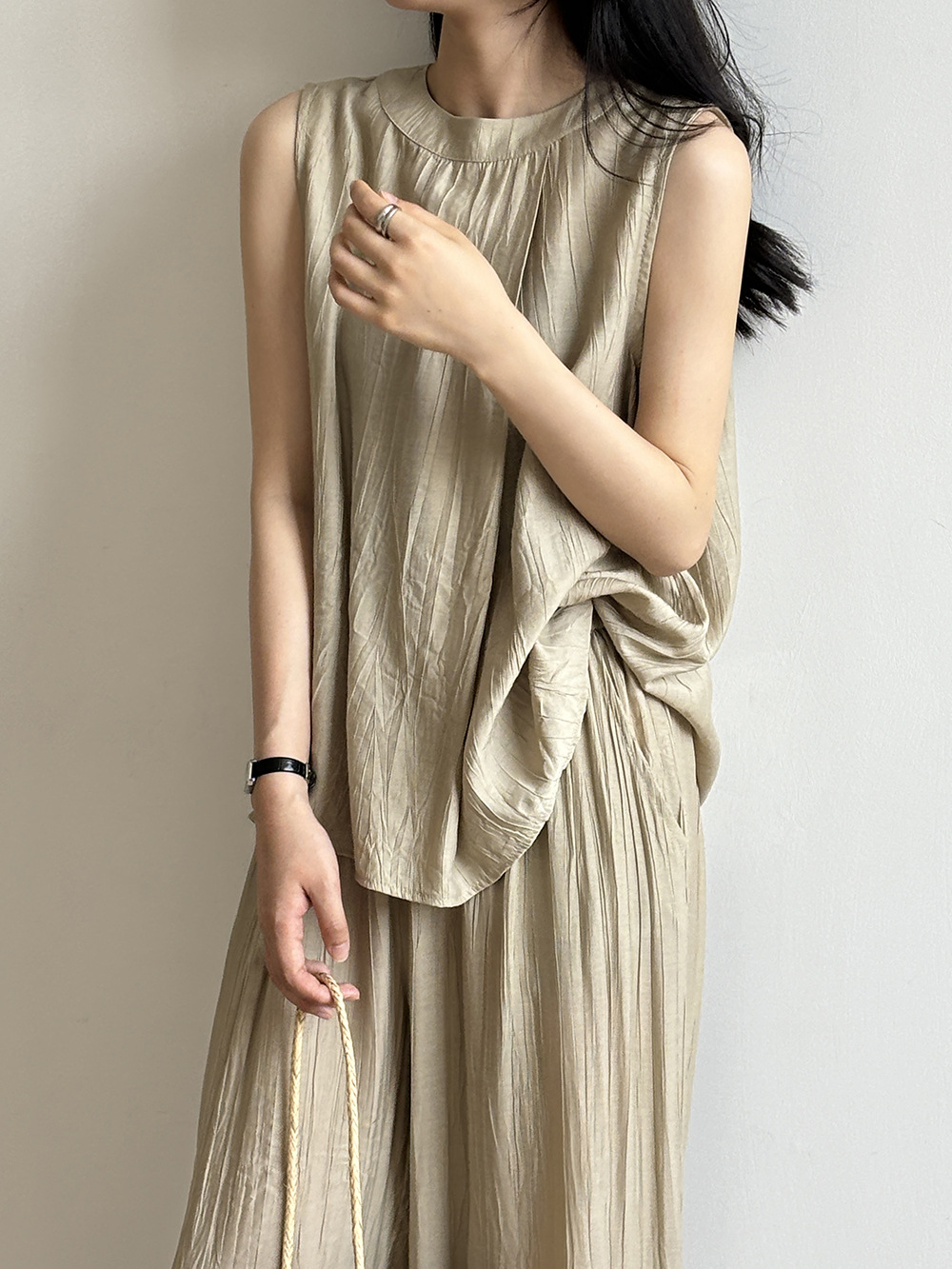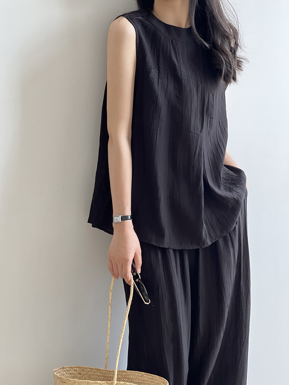 【セットアップ】気質よい シャーリング 夏 ノースリーブ Tシャツ + パンツ 上下セット【JZシリーズ】