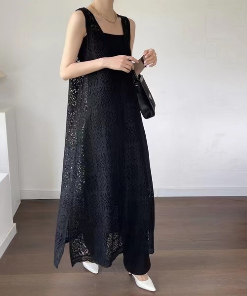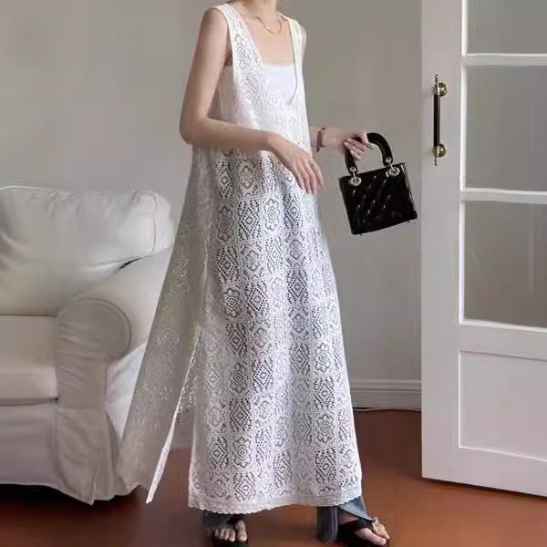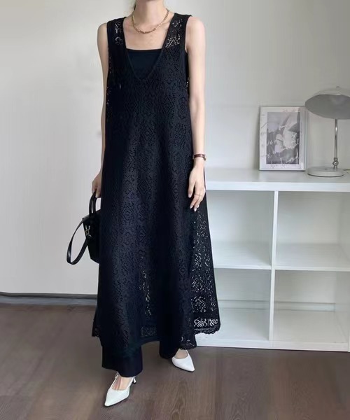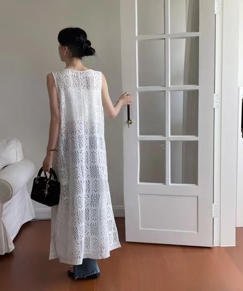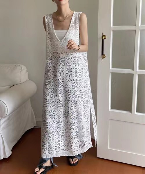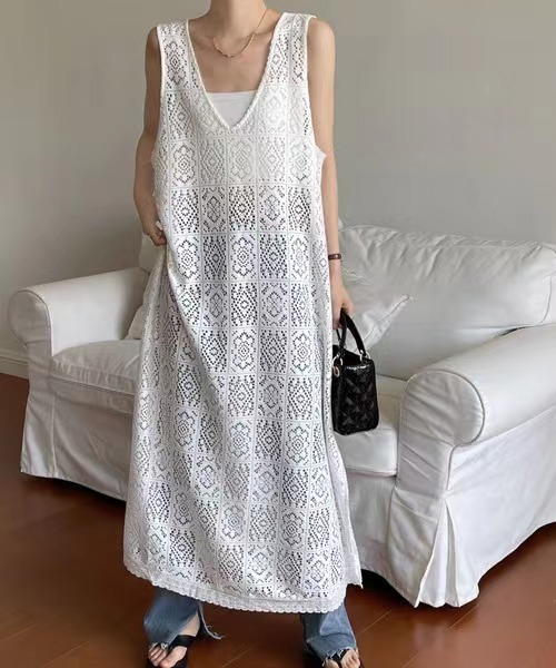 【ワンピース】夏 通気性 チラリ 中空デザイン ノースリーブワンピース