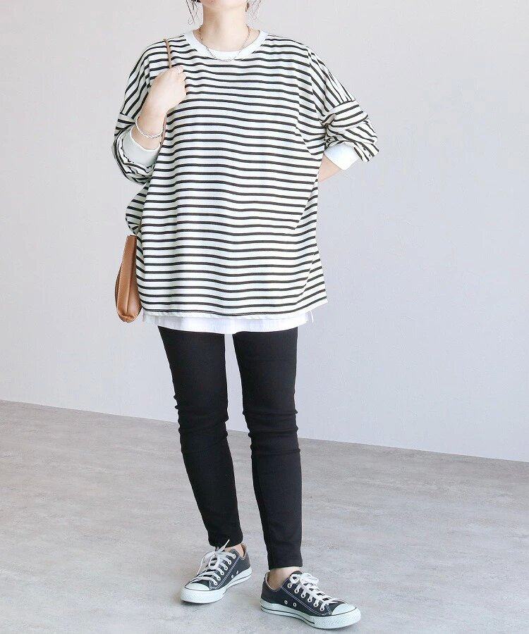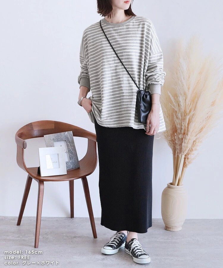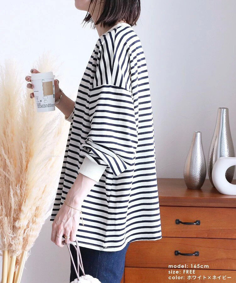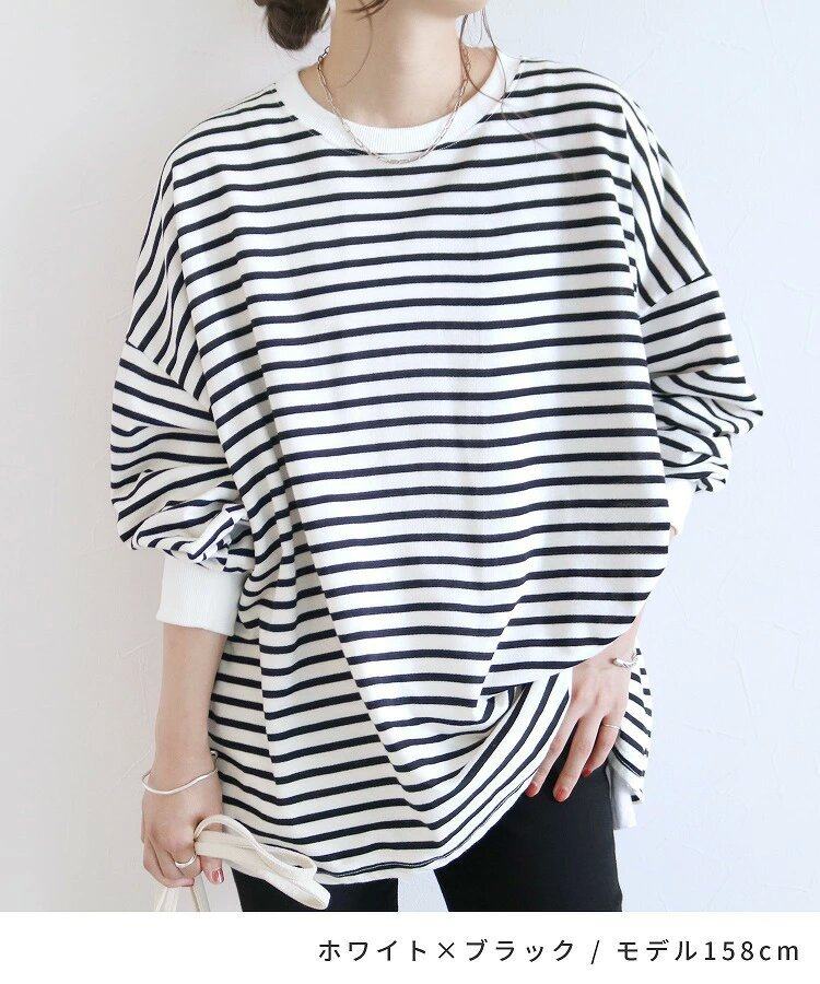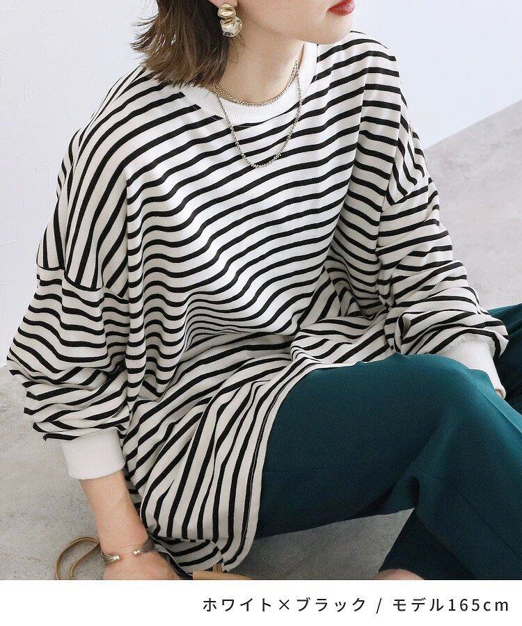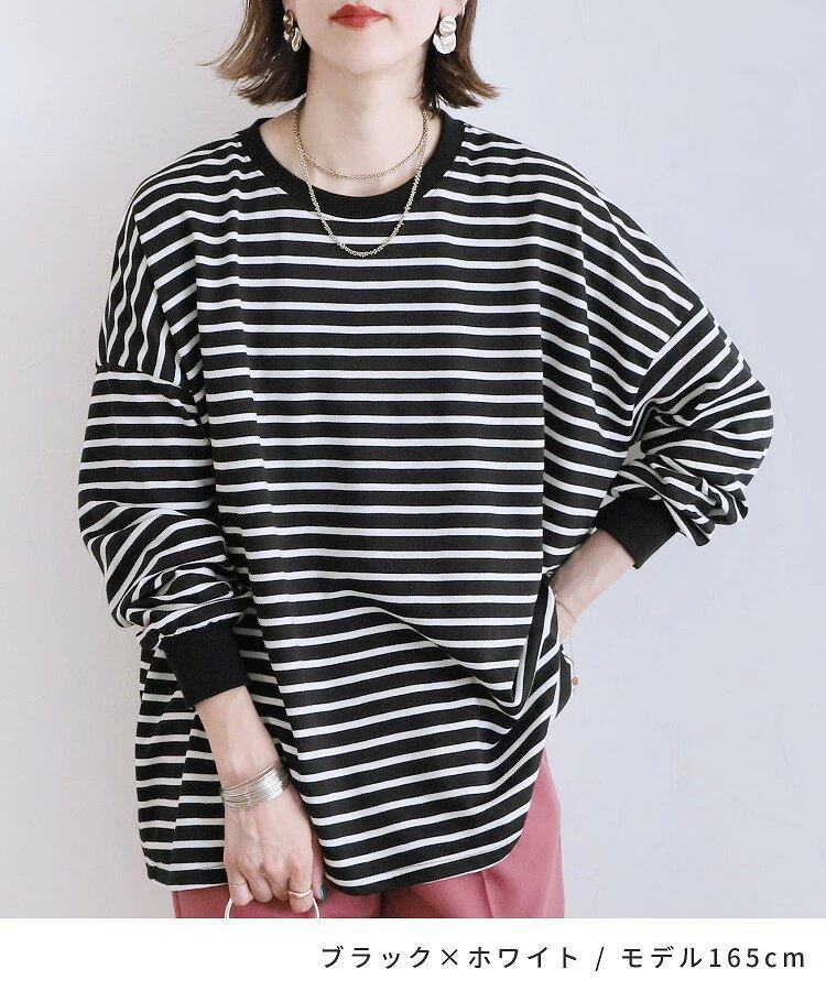 【トップス】全11色 ストライプ柄 春秋 ゆったり オーバーサイズ 秋冬 Tシャツ