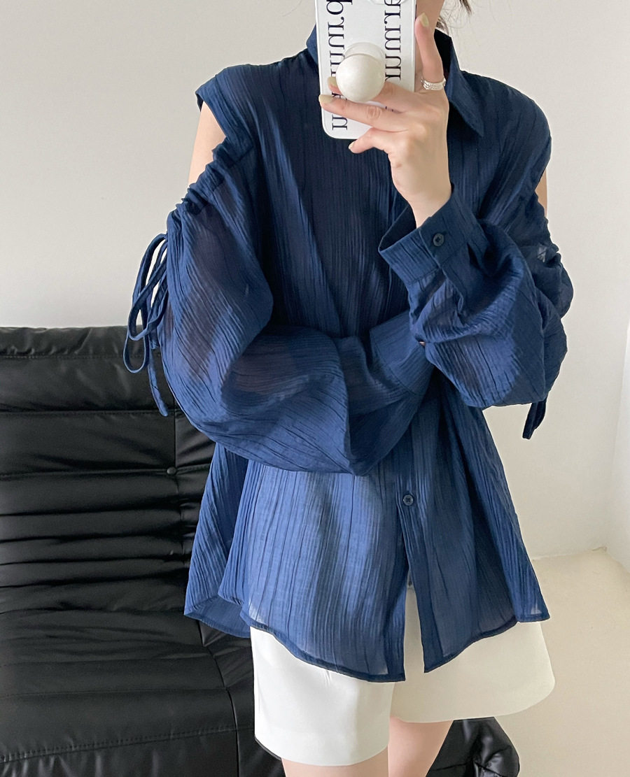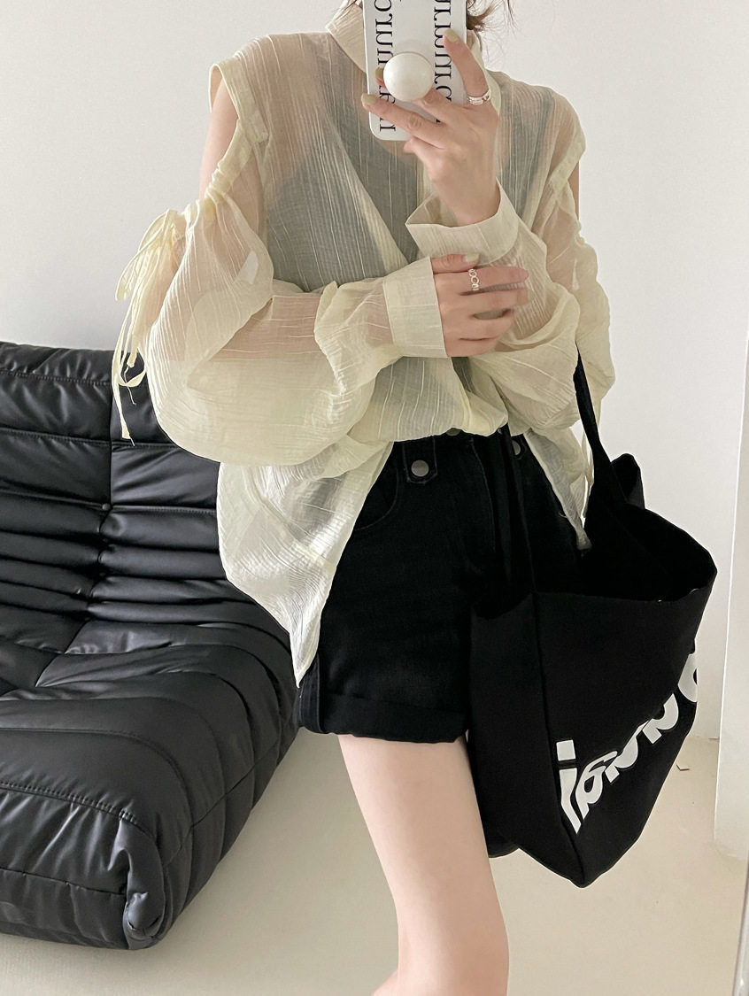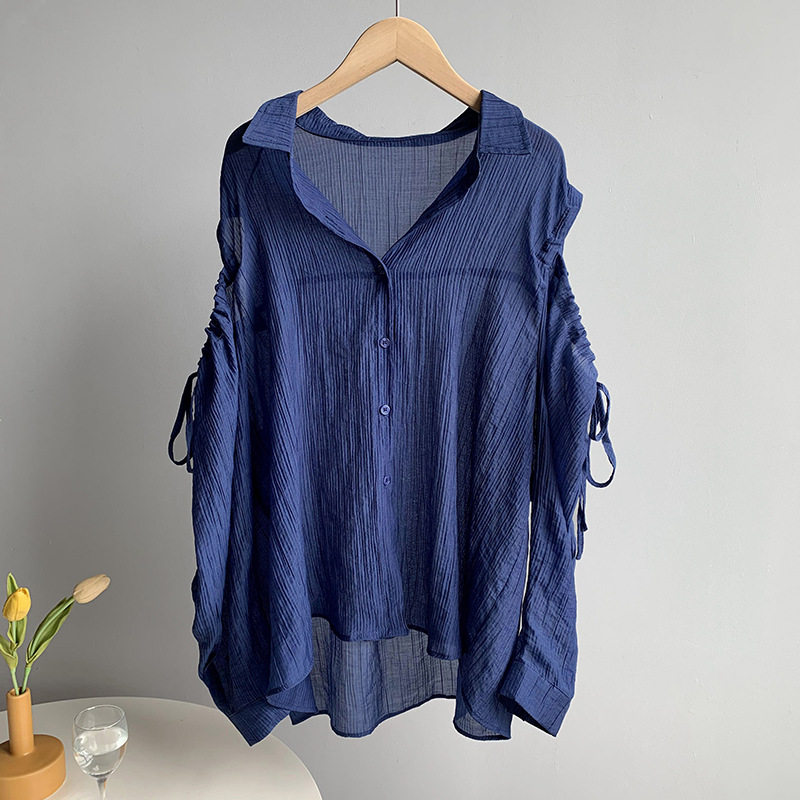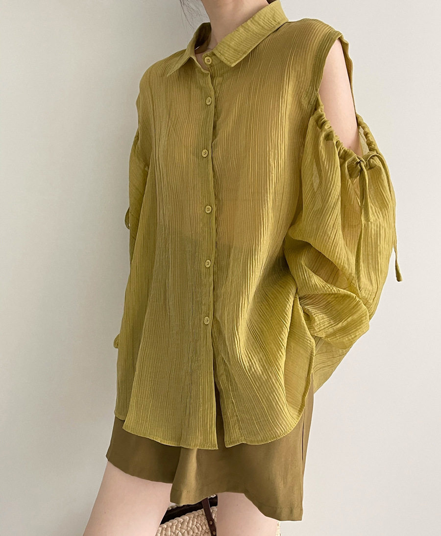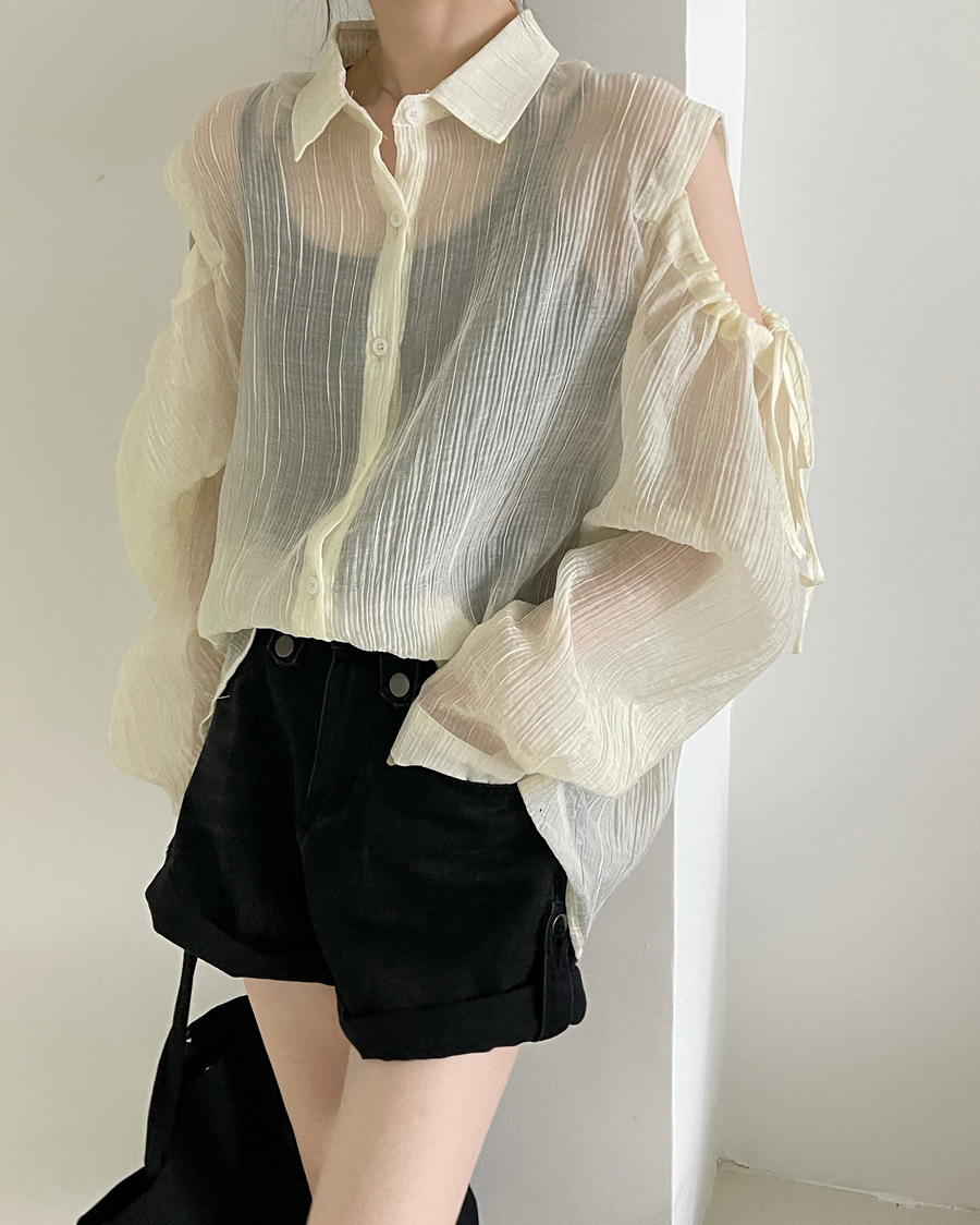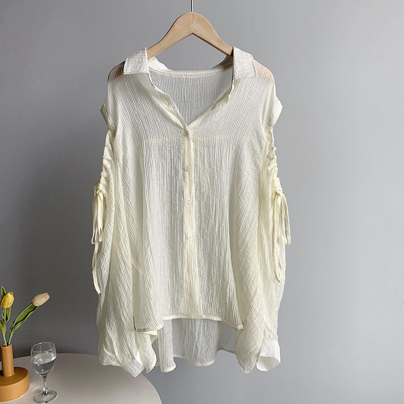 【商品名】【トップス】無地 薄手 オフショルダー ルーズ 日焼け止め シャツ
