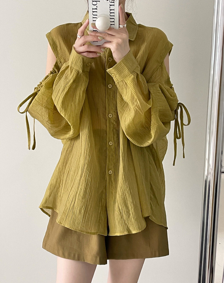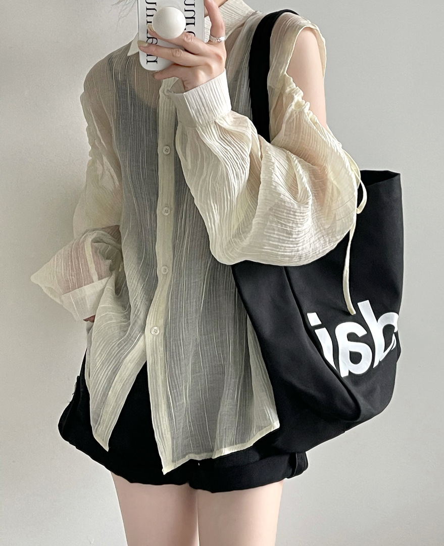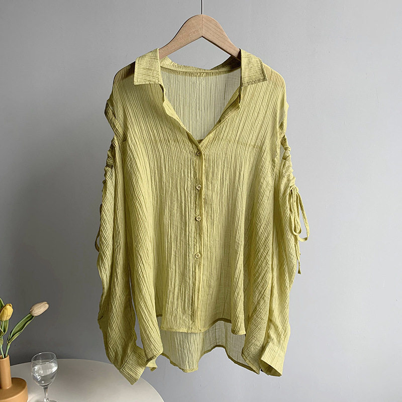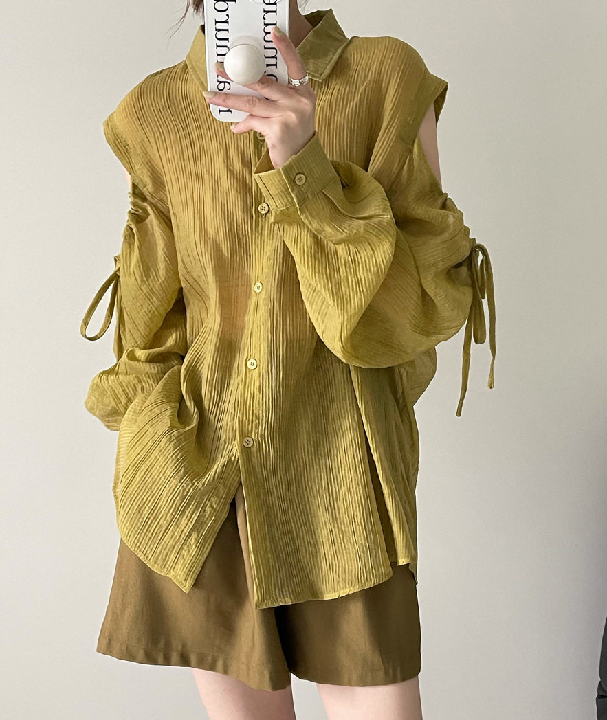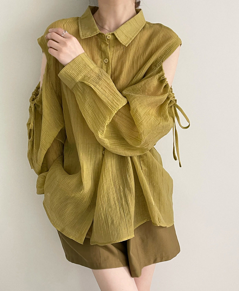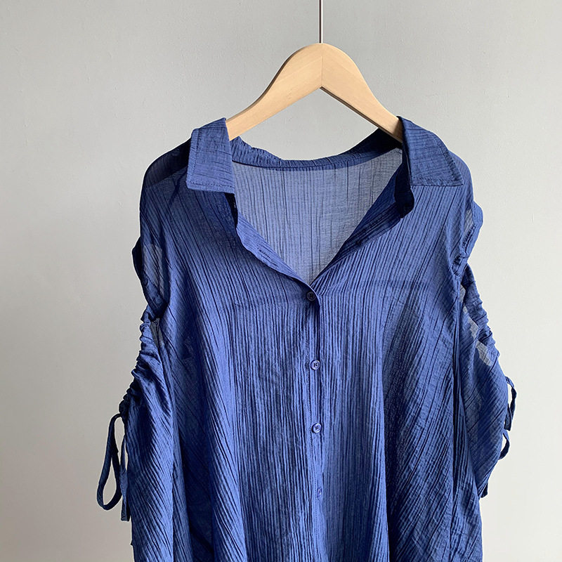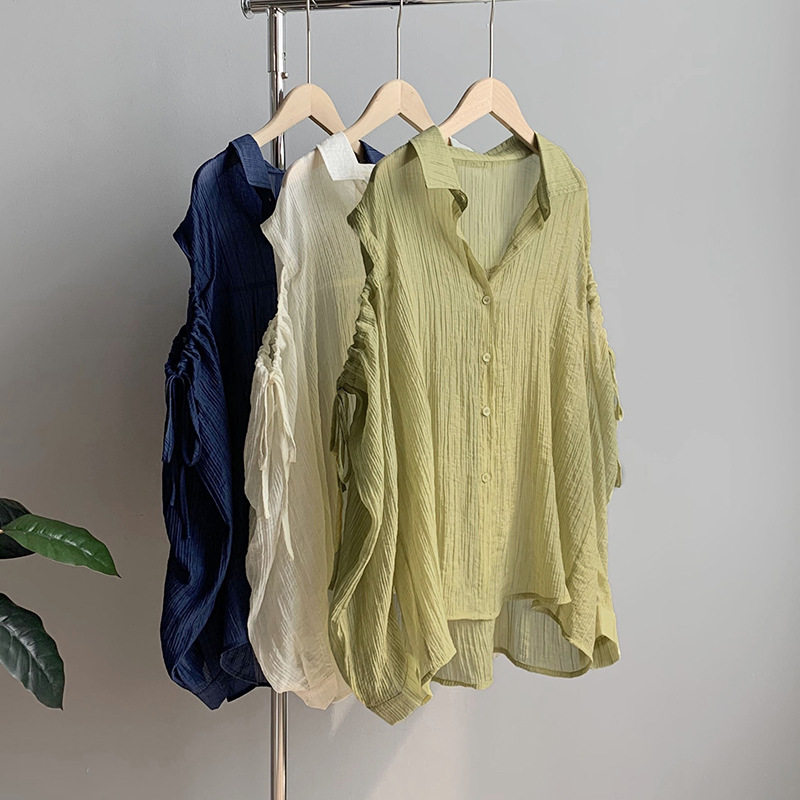 【商品名】【トップス】無地 薄手 オフショルダー ルーズ 日焼け止め シャツ