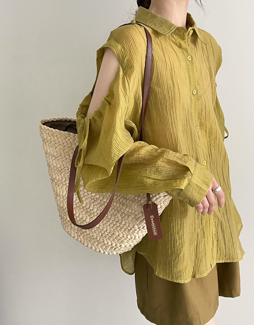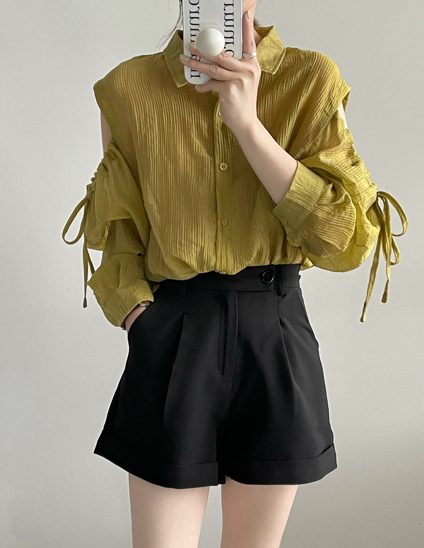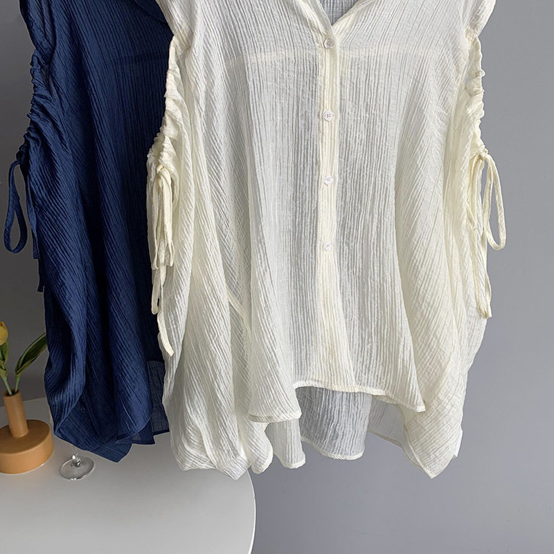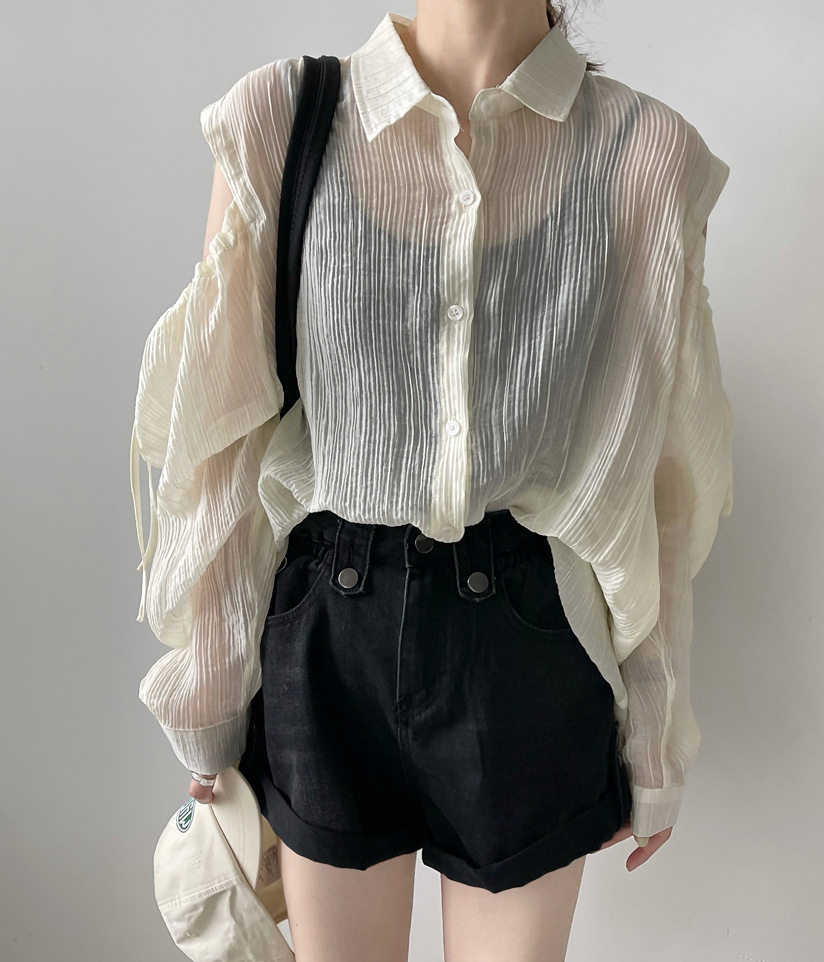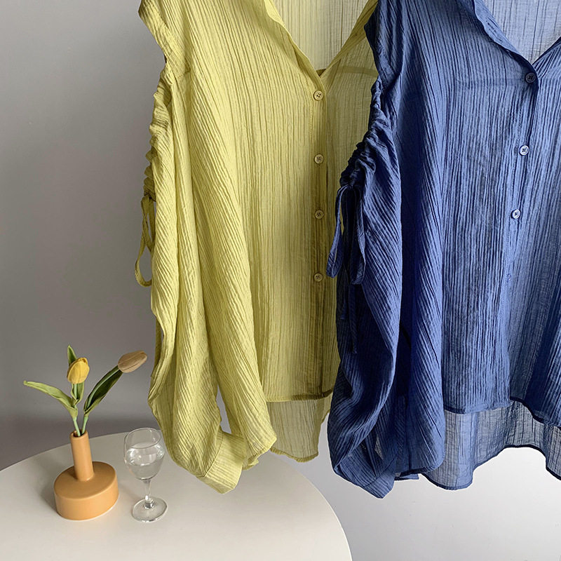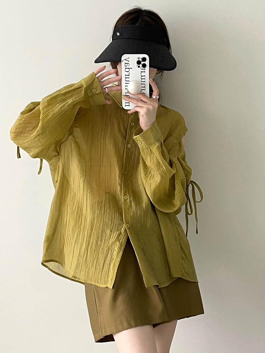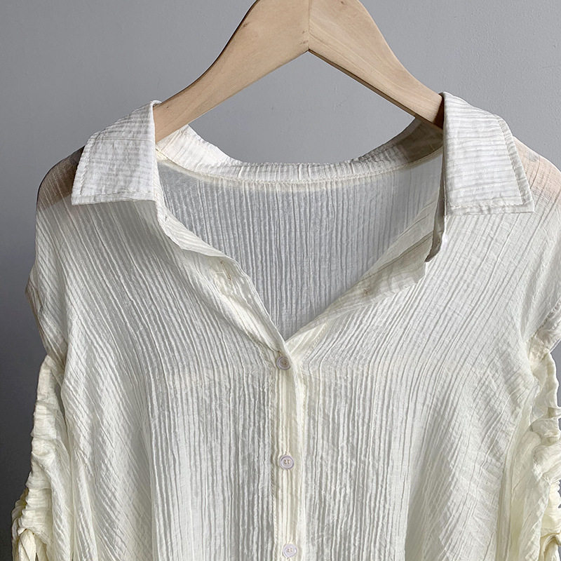 【商品名】【トップス】無地 薄手 オフショルダー ルーズ 日焼け止め シャツ