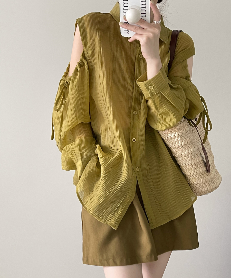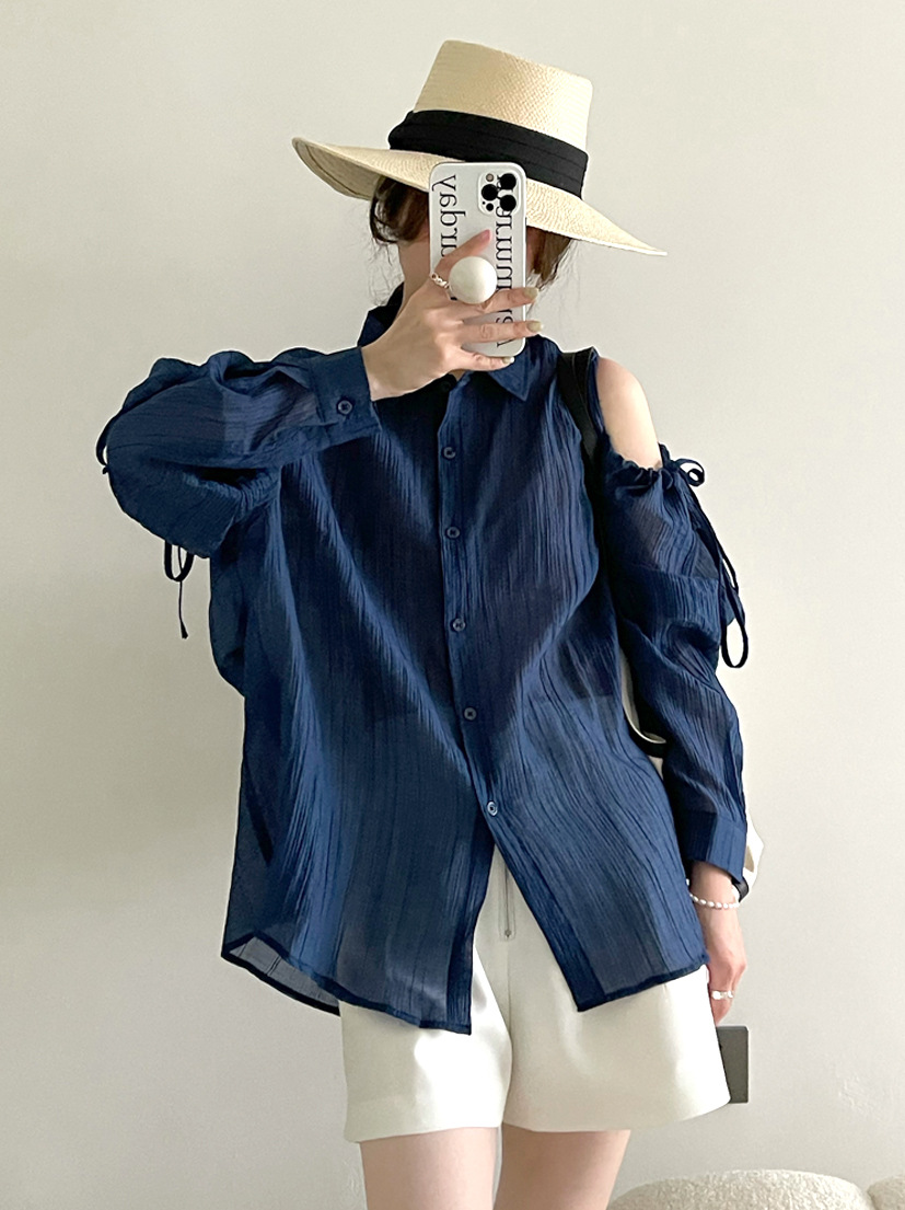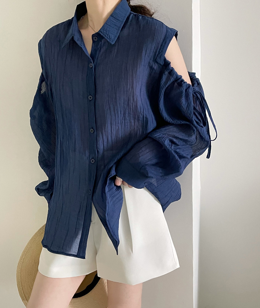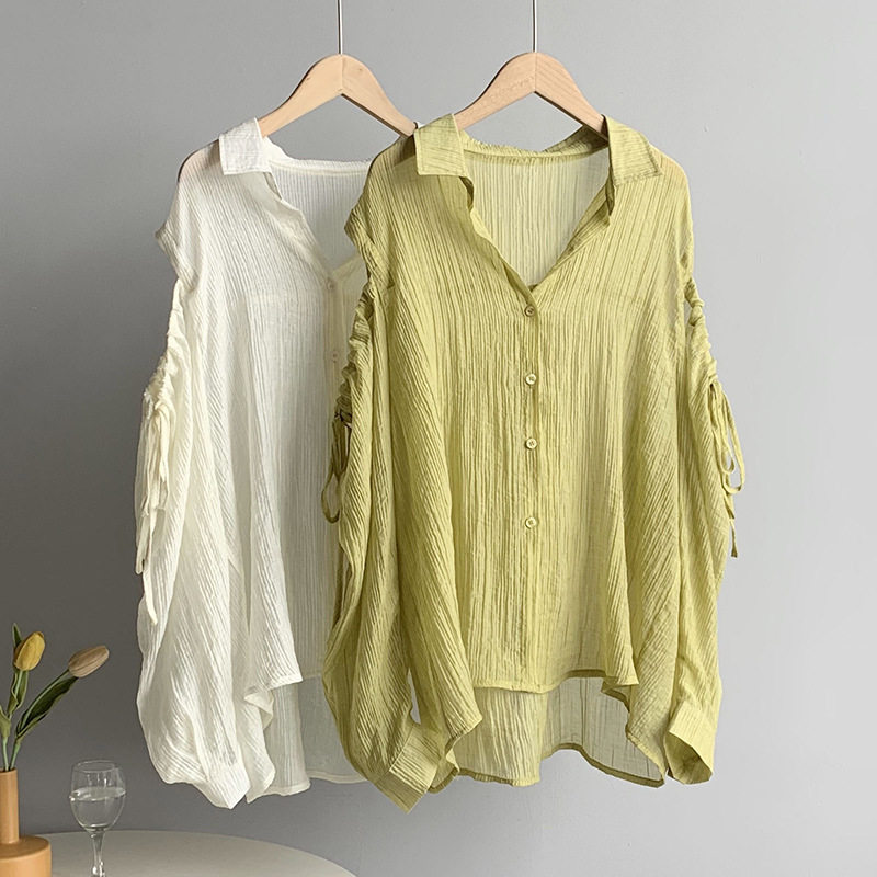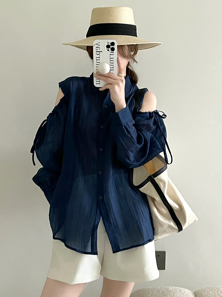 【トップス】春夏秋 無地 薄手 オフショルダー ルーズ 日焼け止め シャツ【JZシリーズ】