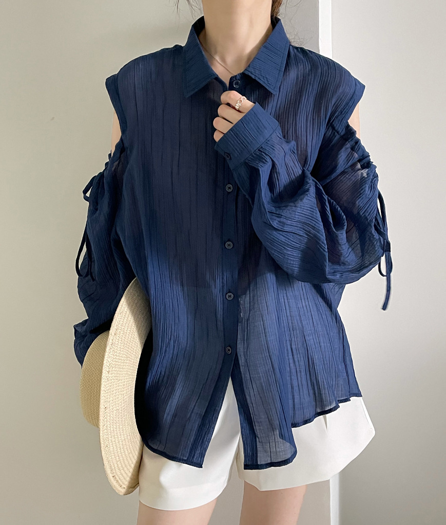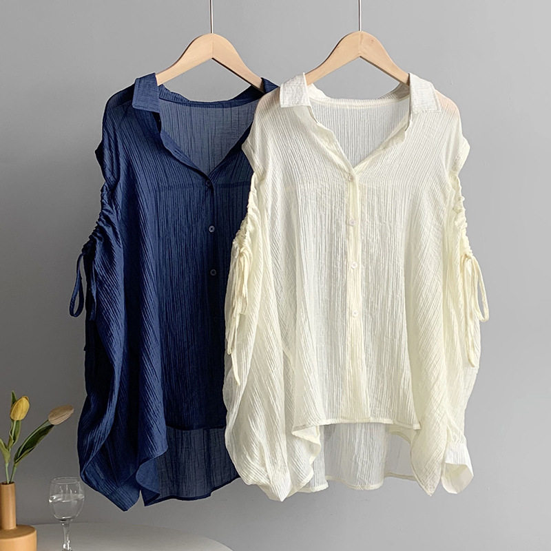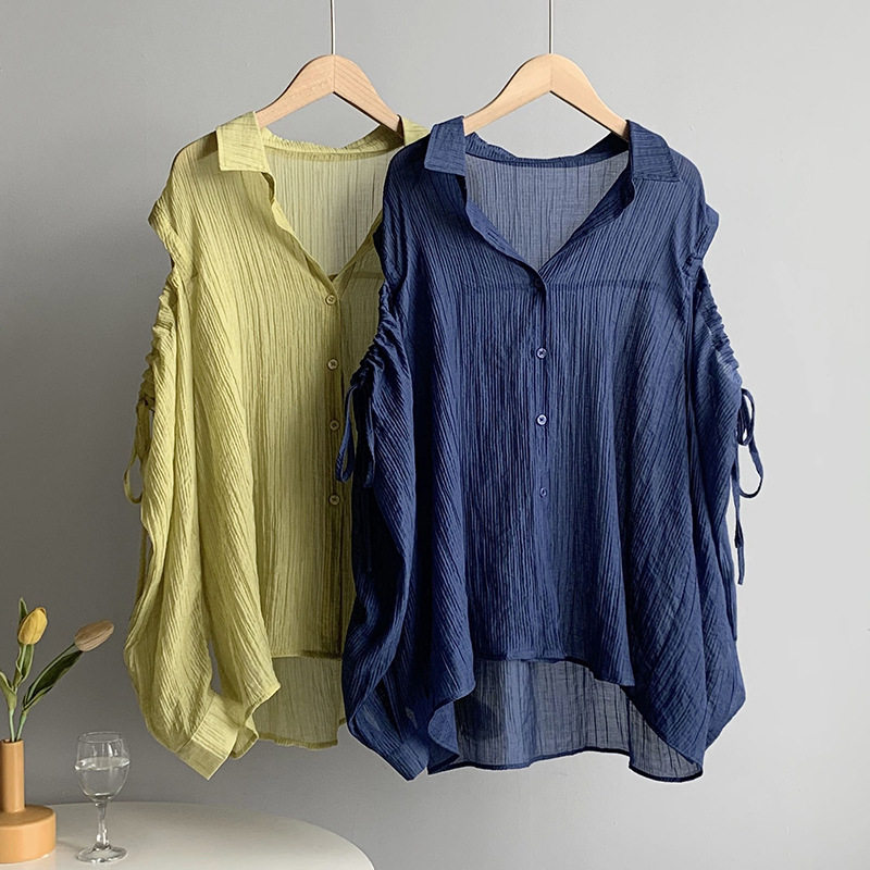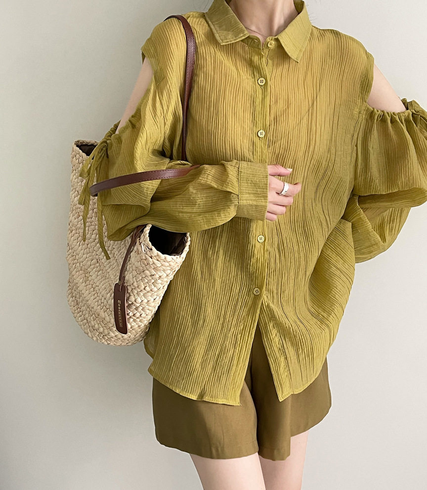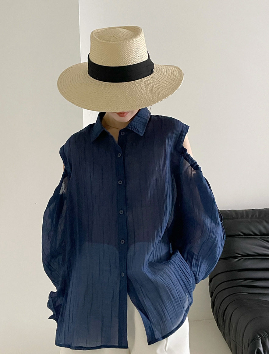 【トップス】春夏秋 無地 薄手 オフショルダー ルーズ 日焼け止め シャツ【JZシリーズ】