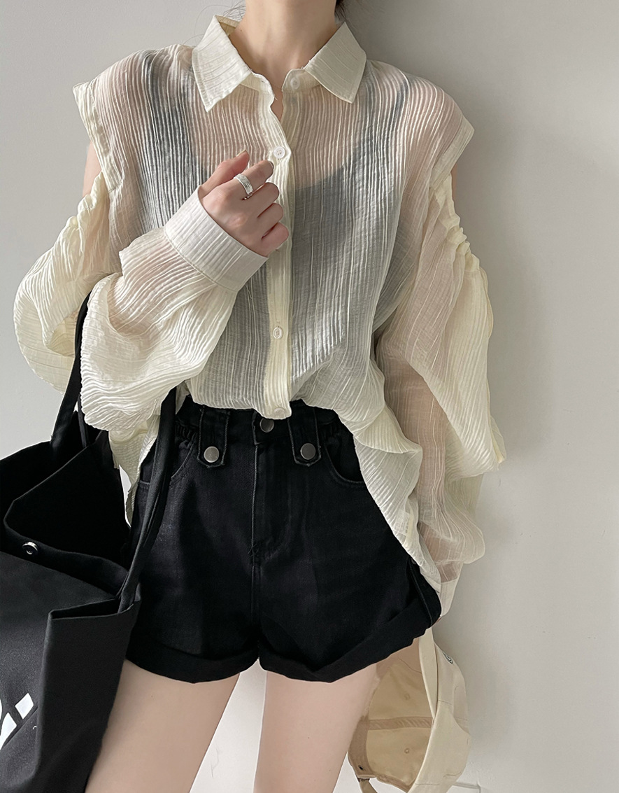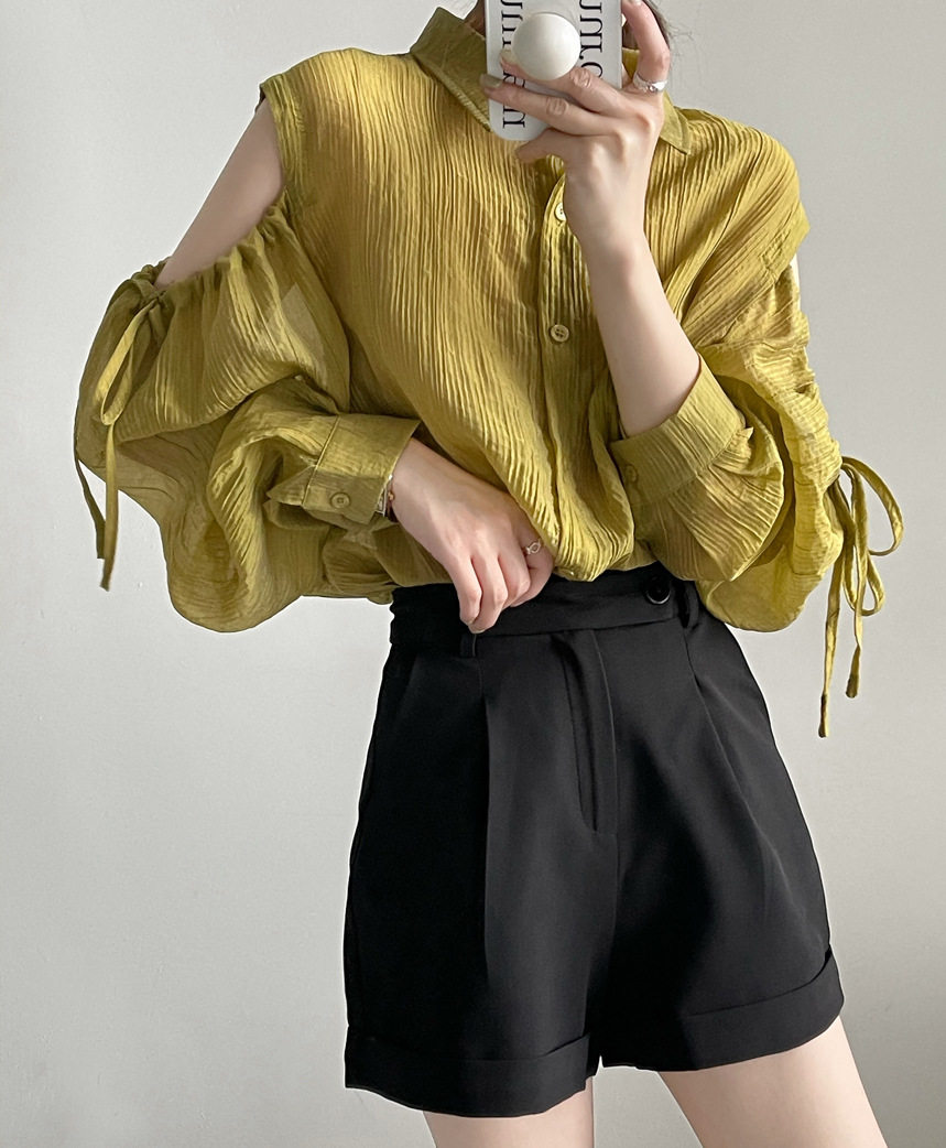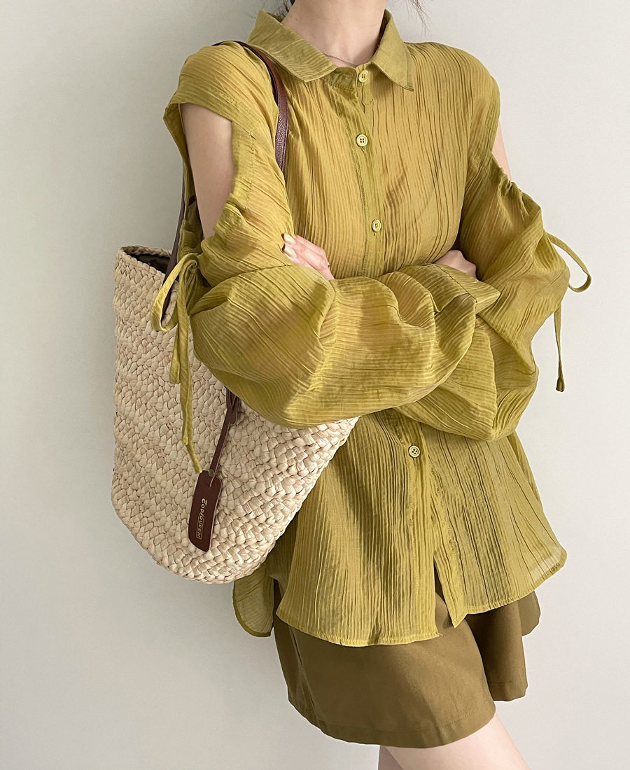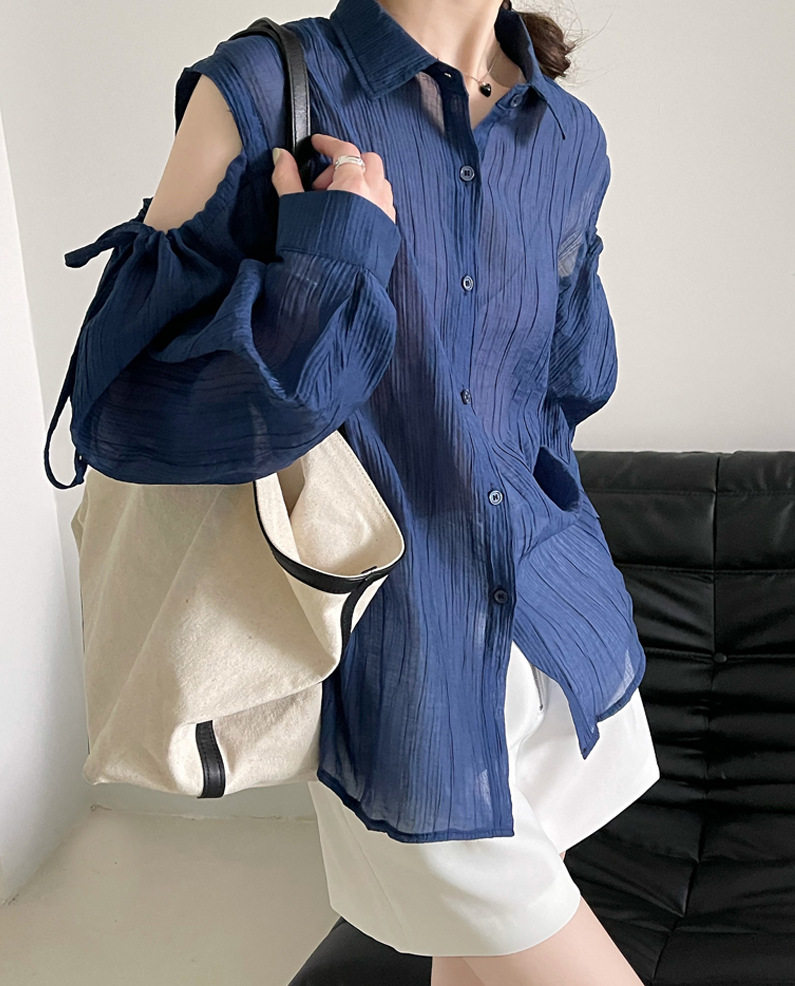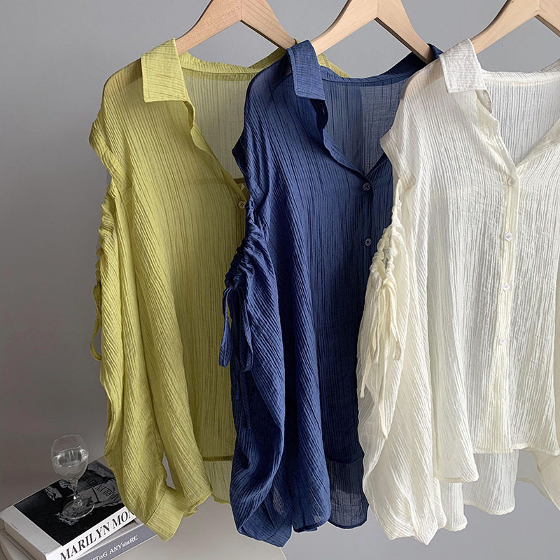 【トップス】春夏秋 無地 薄手 オフショルダー ルーズ 日焼け止め シャツ【JZシリーズ】