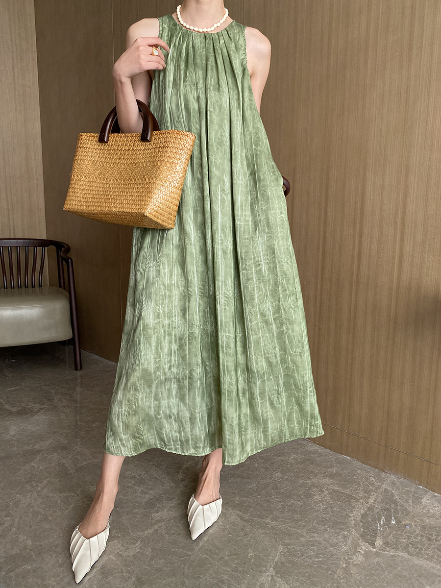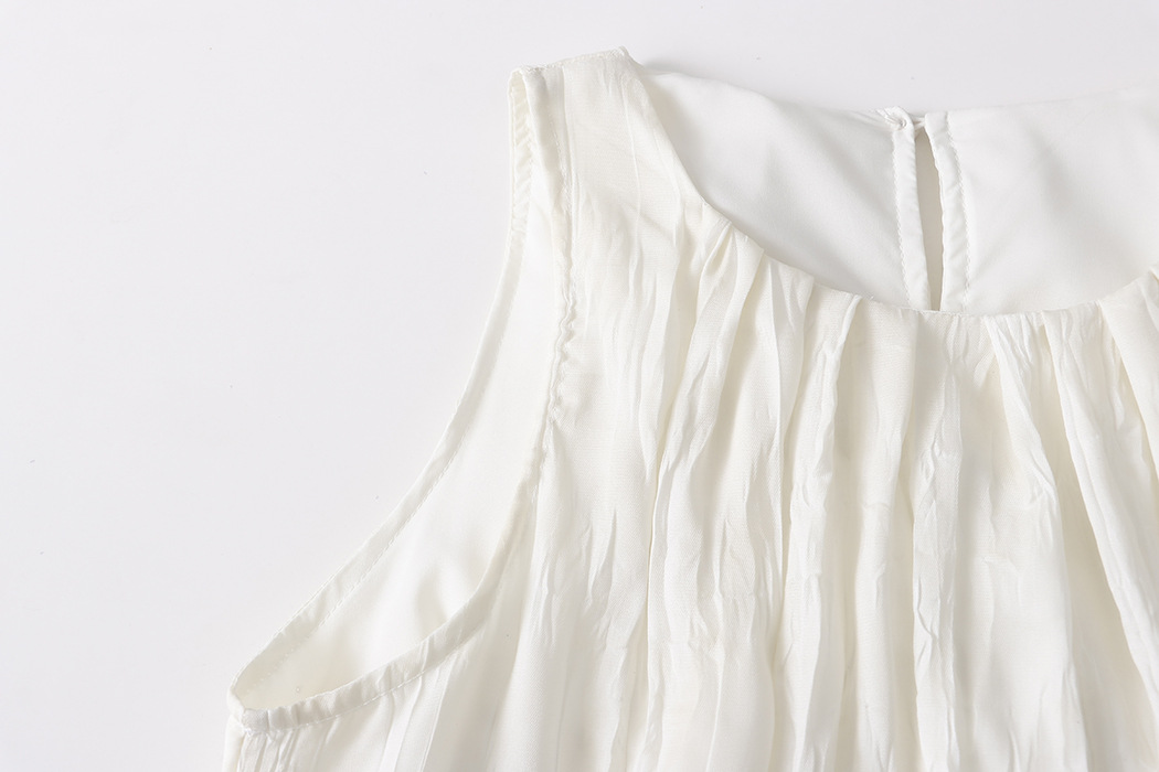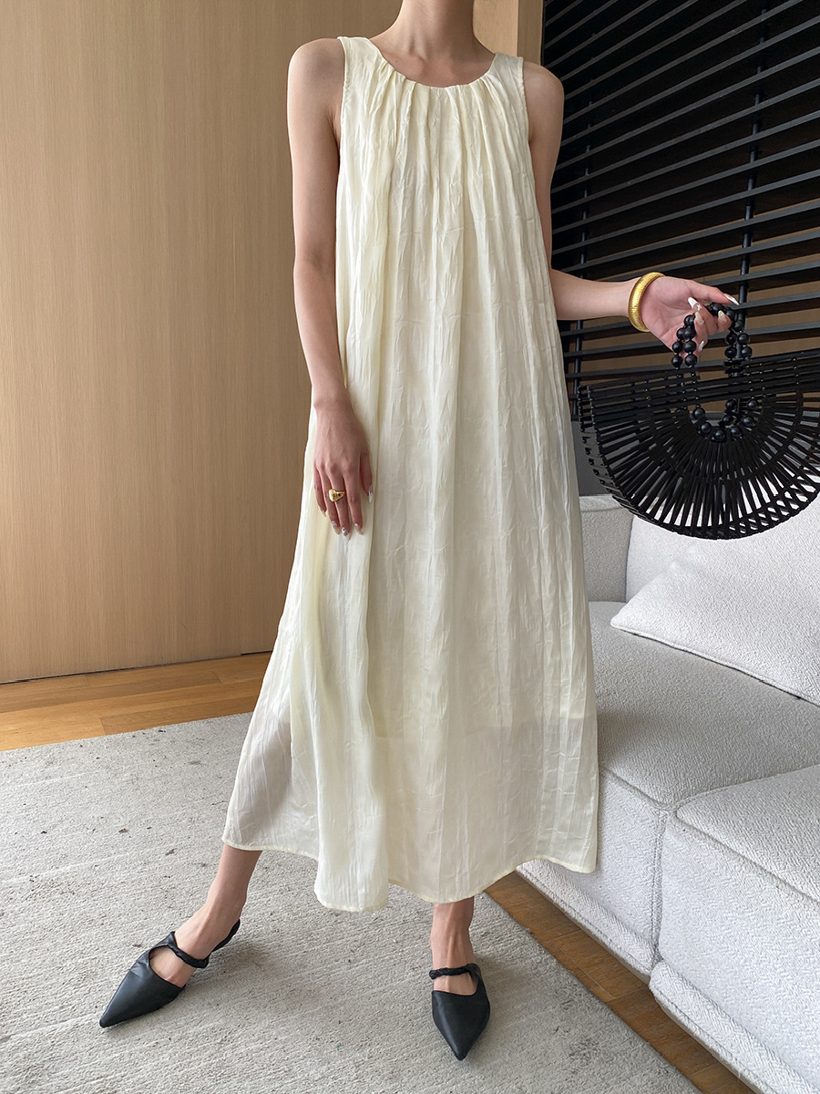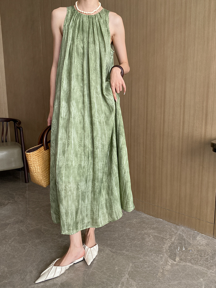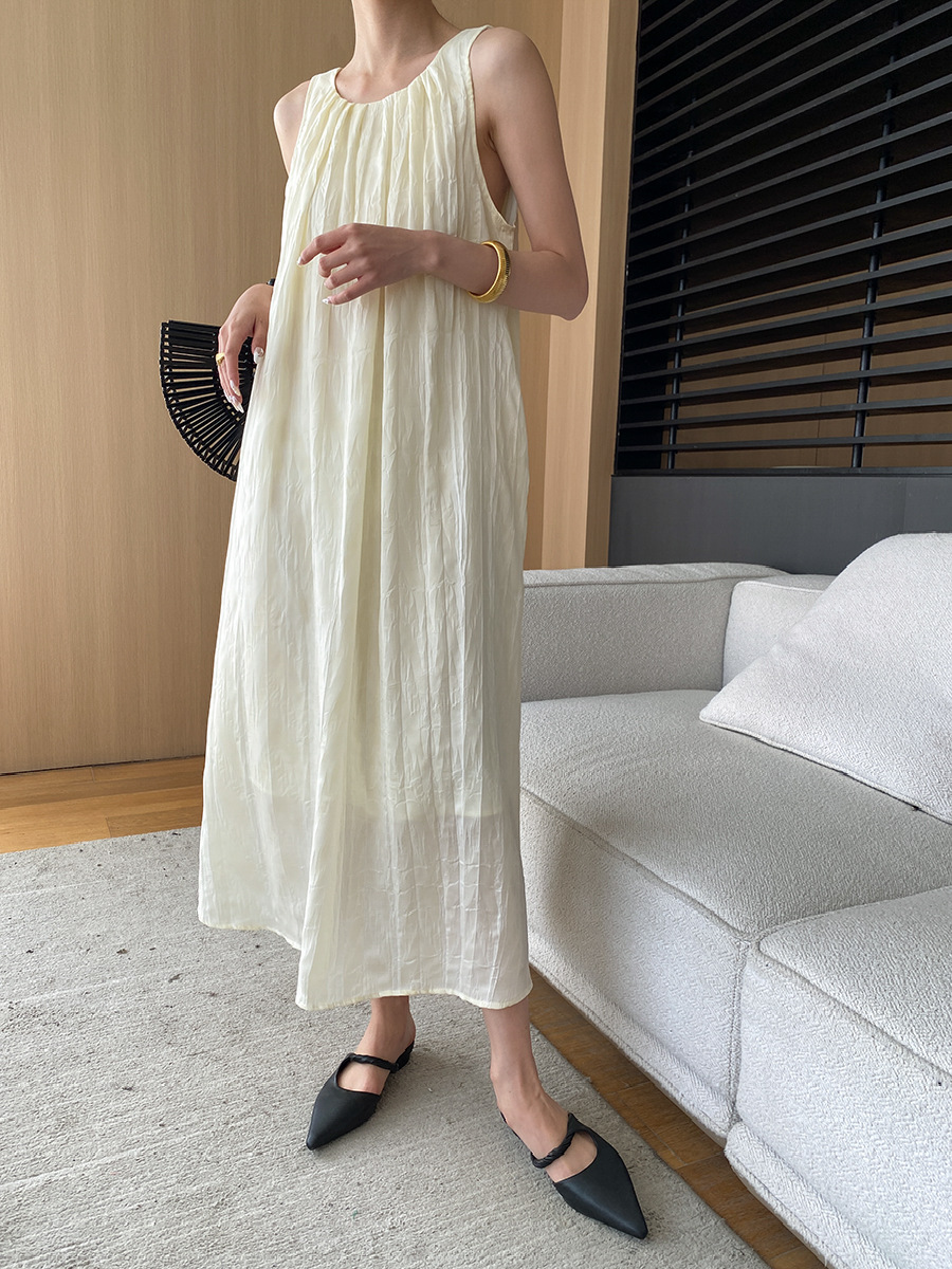 【ワンピース】夏 プリーツ ラウンドネック ノースリーブワンピース【SNシリーズ】
