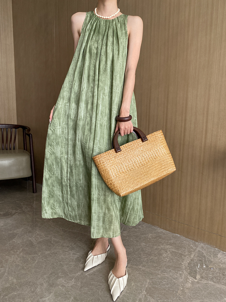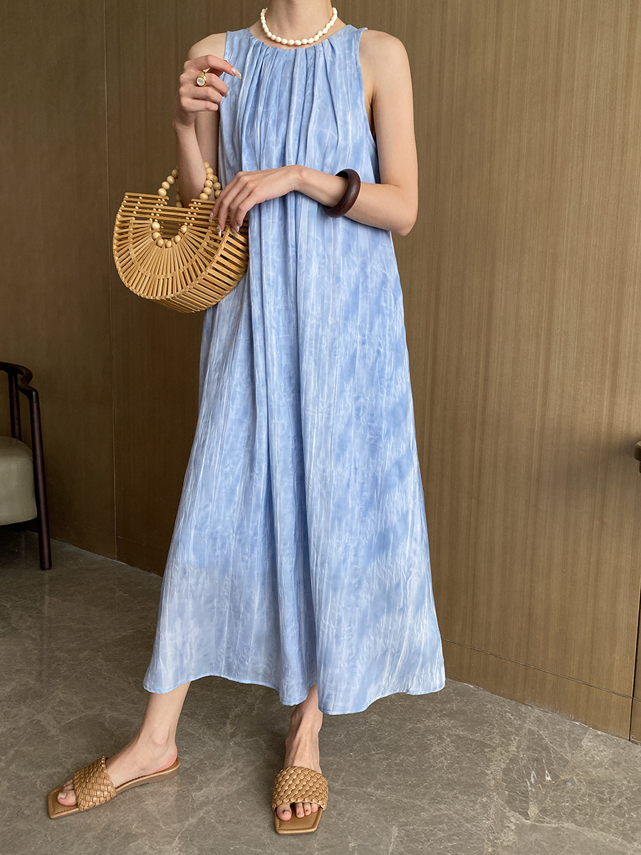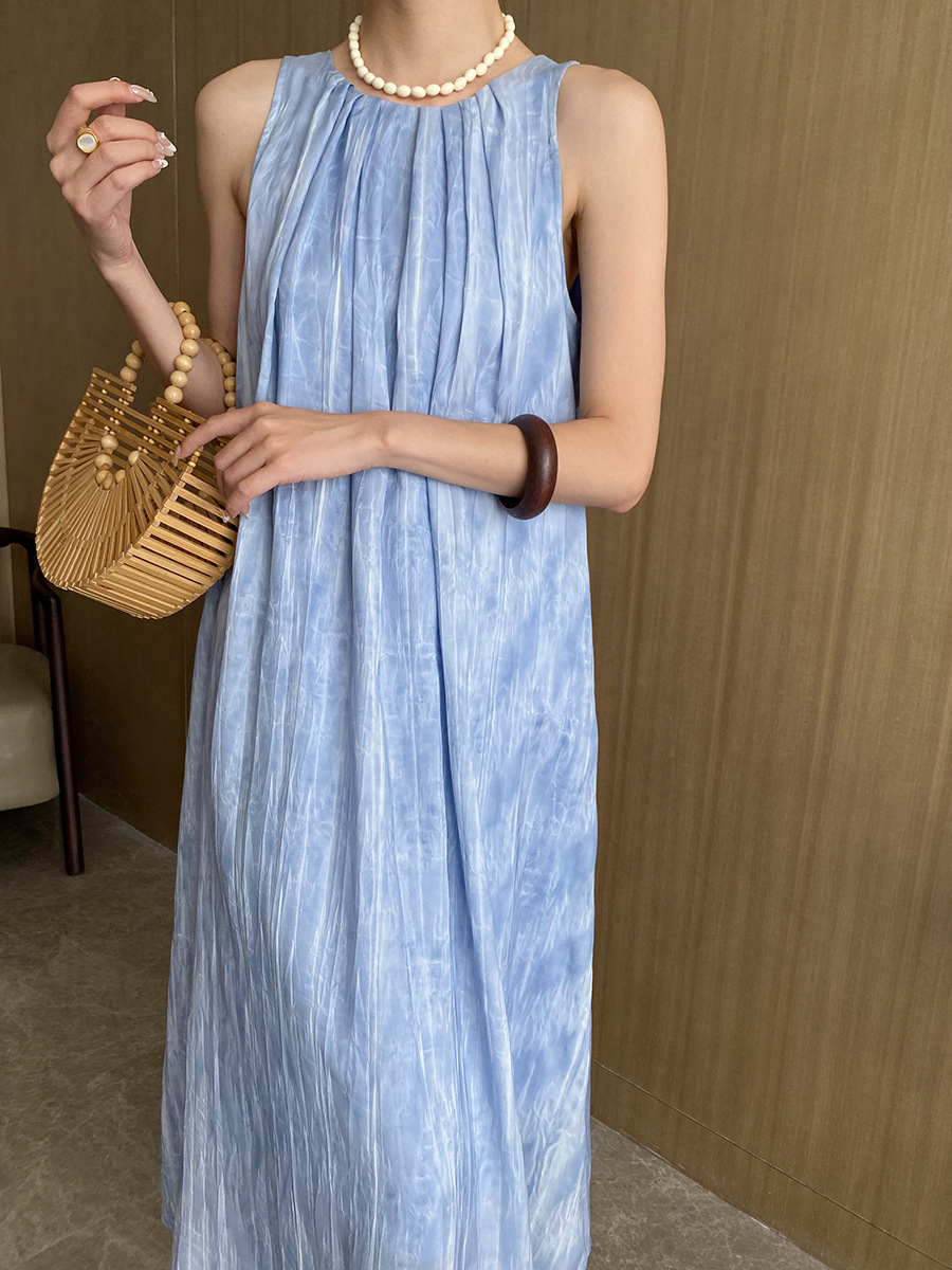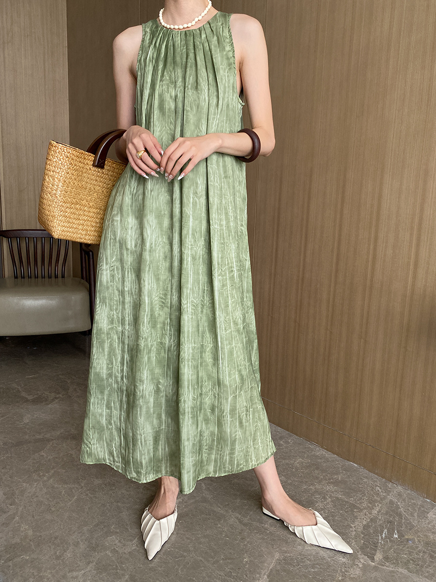 【ワンピース】夏 プリーツ ラウンドネック ノースリーブワンピース【SNシリーズ】