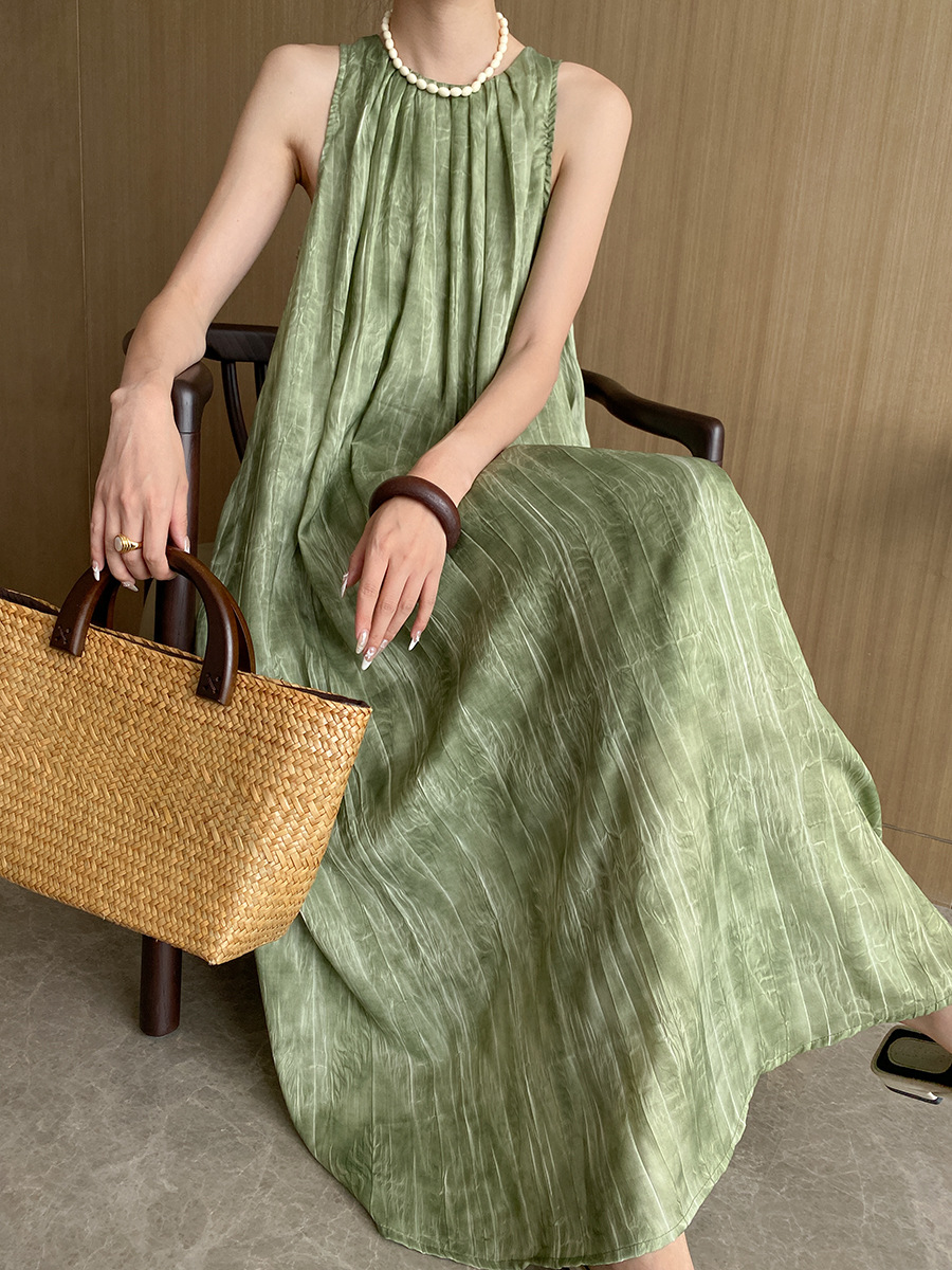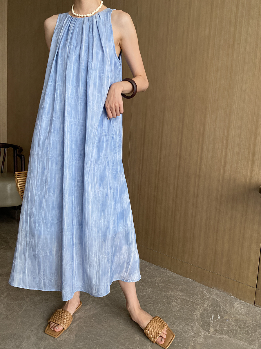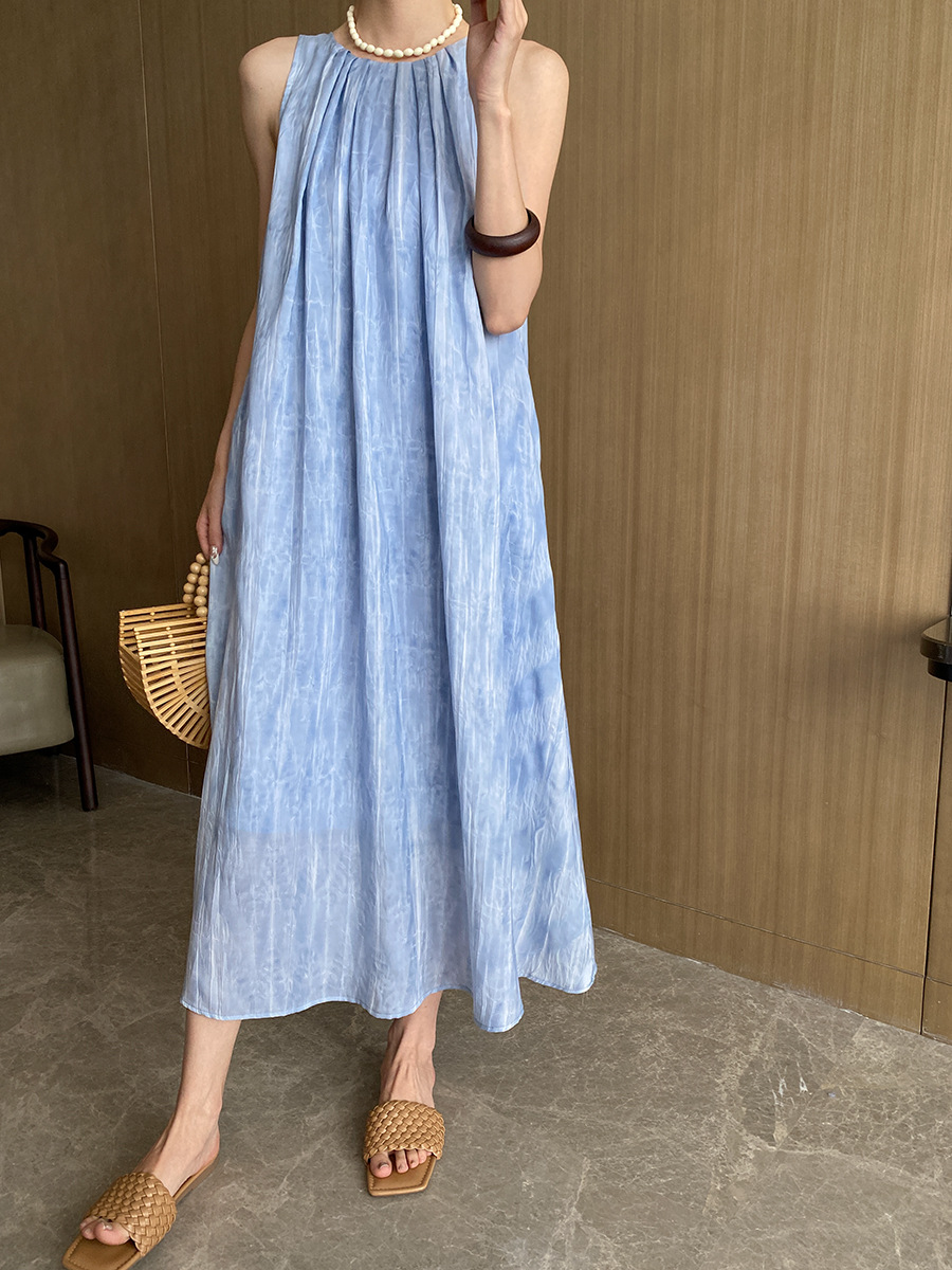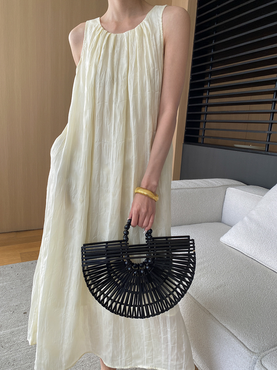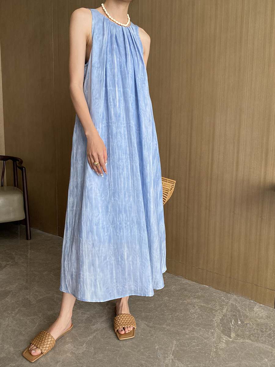 【ワンピース】夏 プリーツ ラウンドネック ノースリーブワンピース【SNシリーズ】
