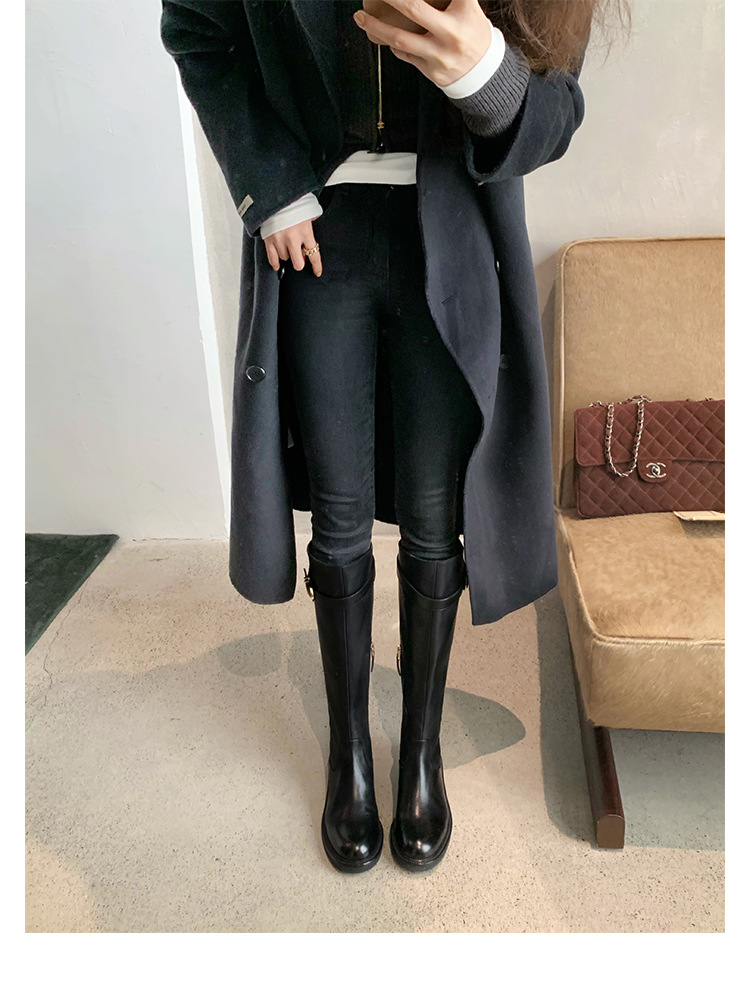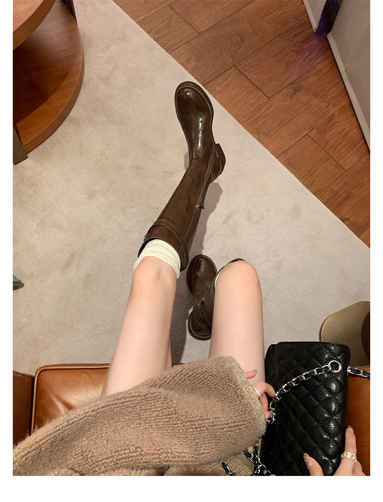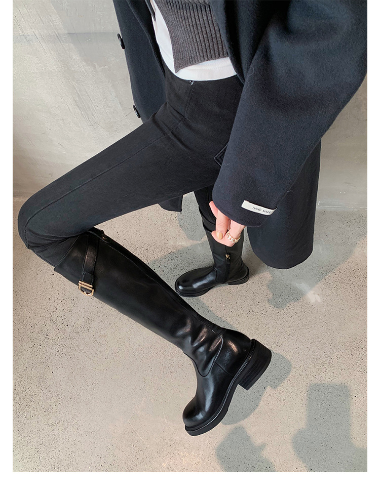 【商品名】【シューズ】秋冬 ラウンドトゥ 厚底 ハイバレルブーツ