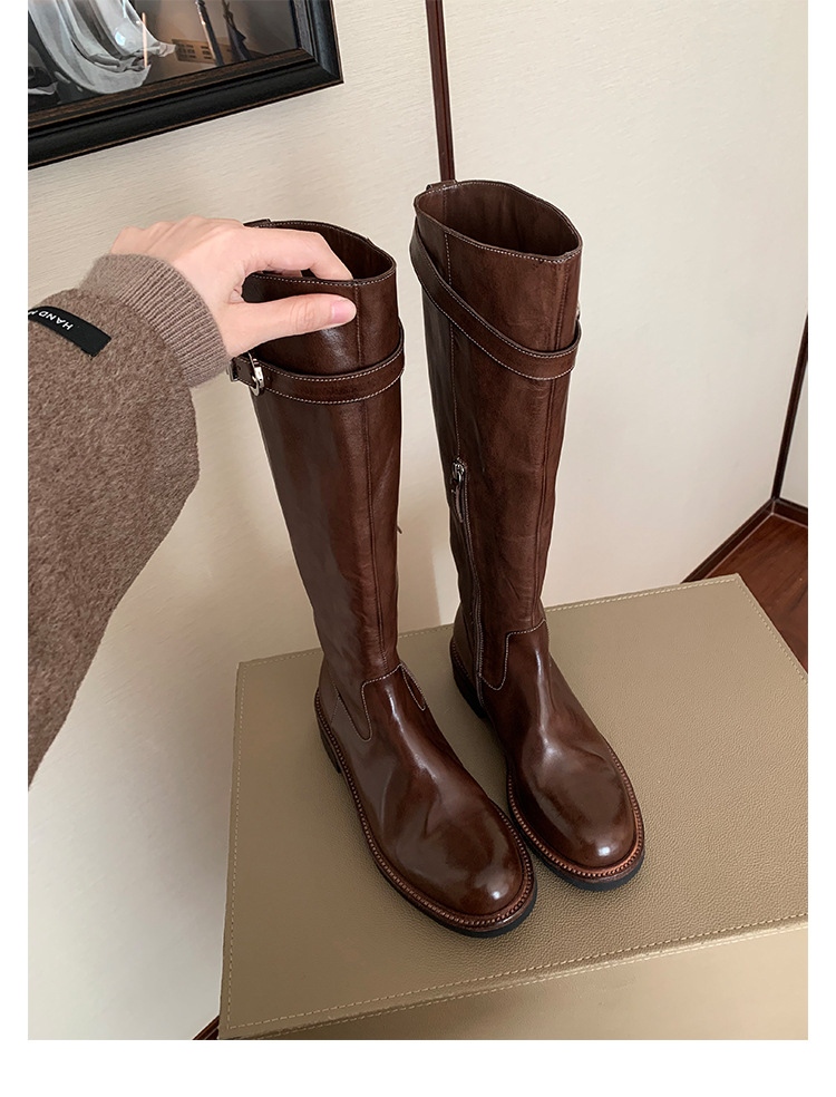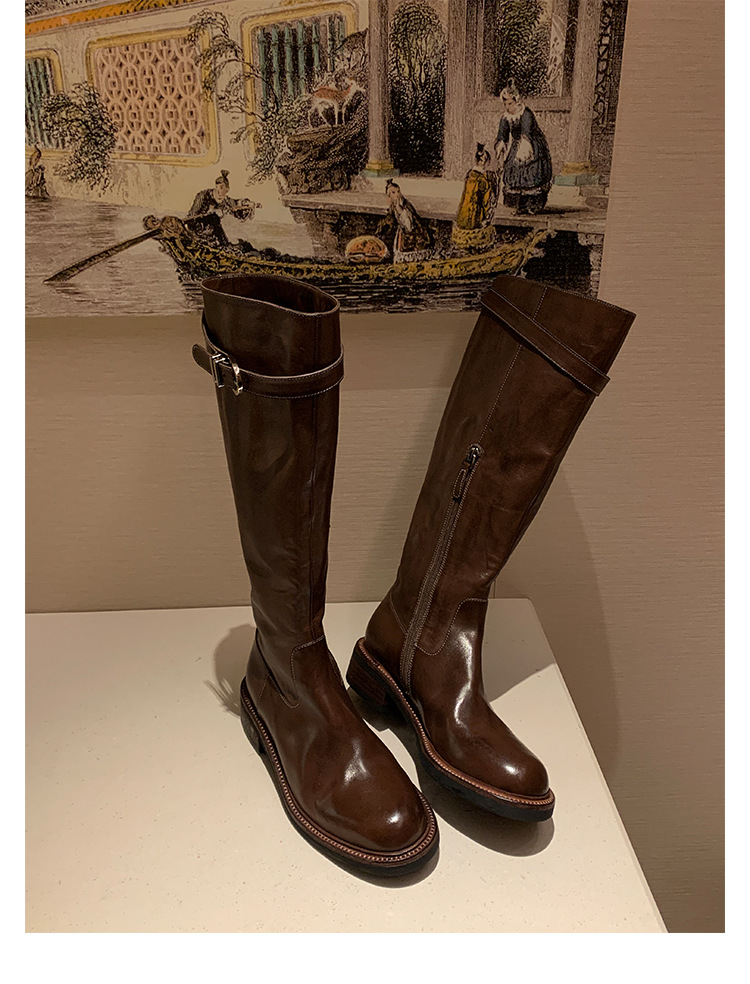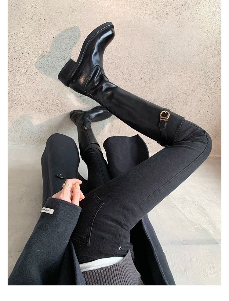 【シューズ】春秋冬 ラウンドトゥ 厚底 ハイバレルブーツ