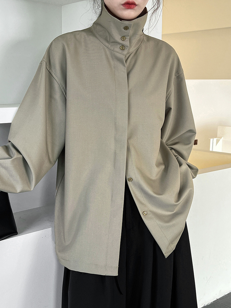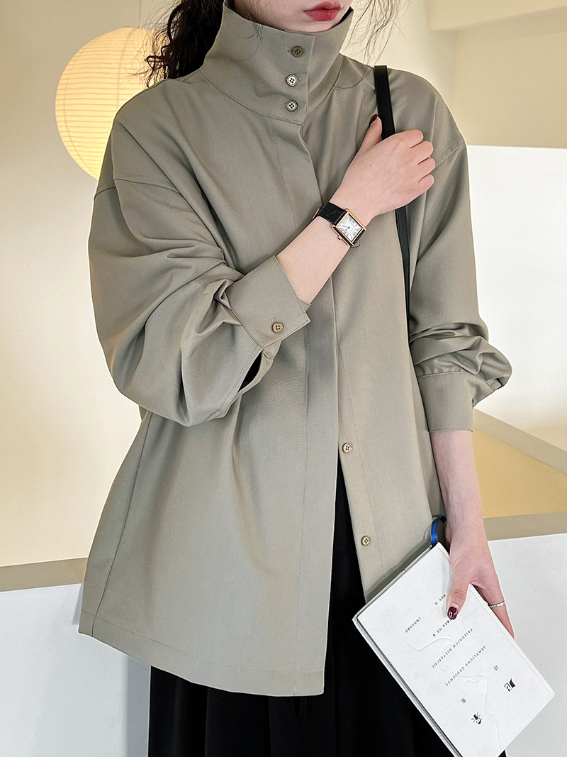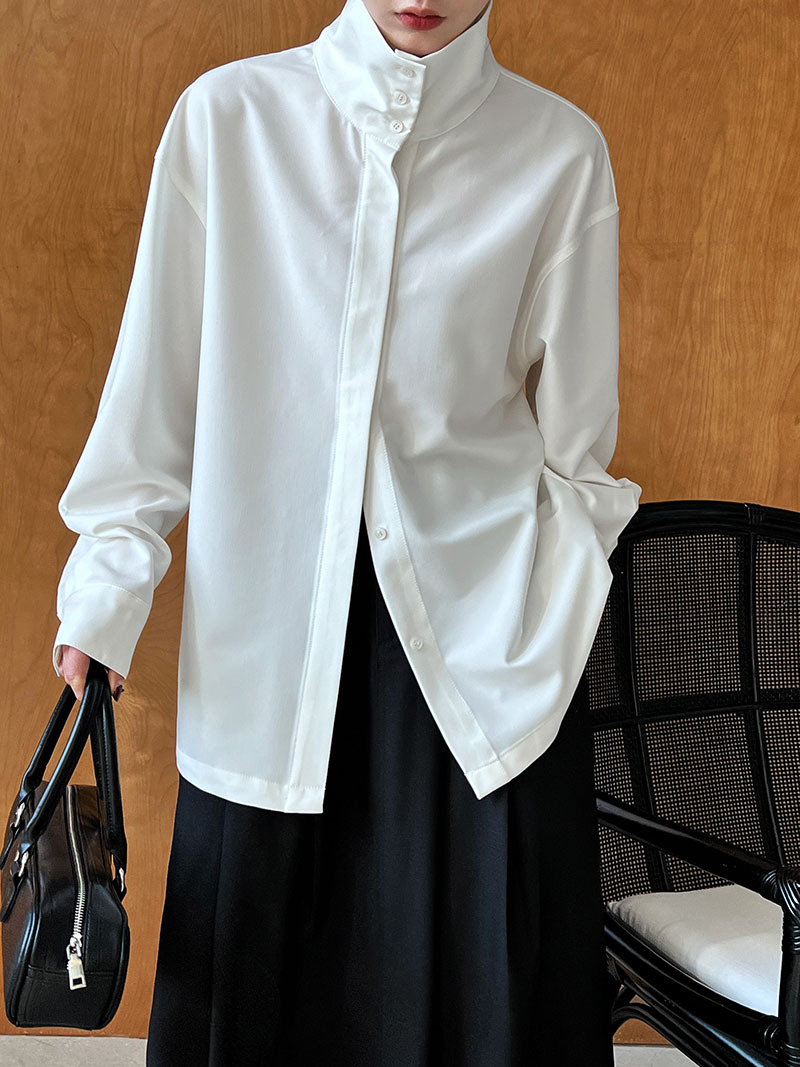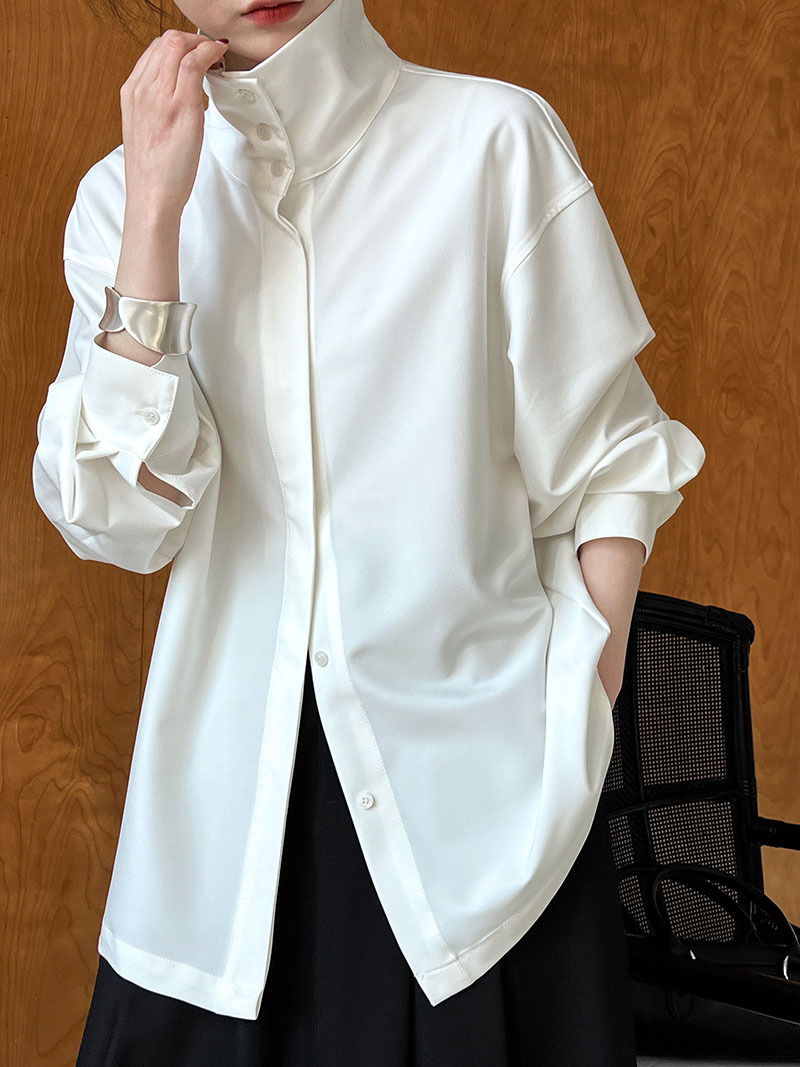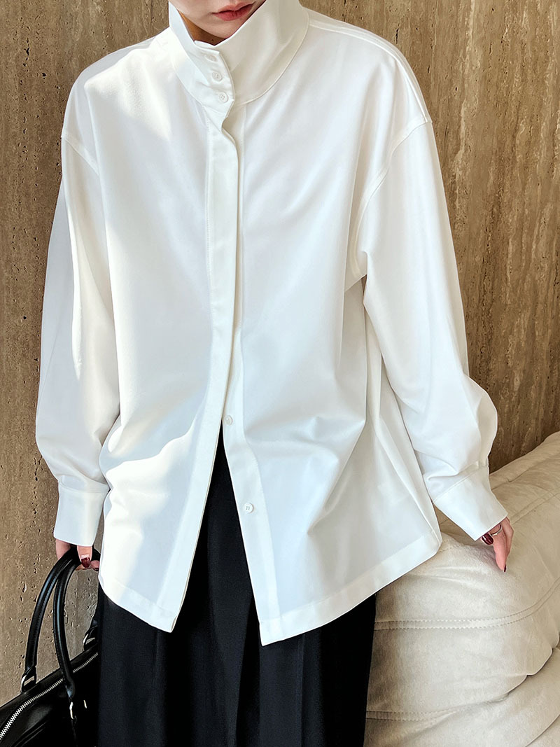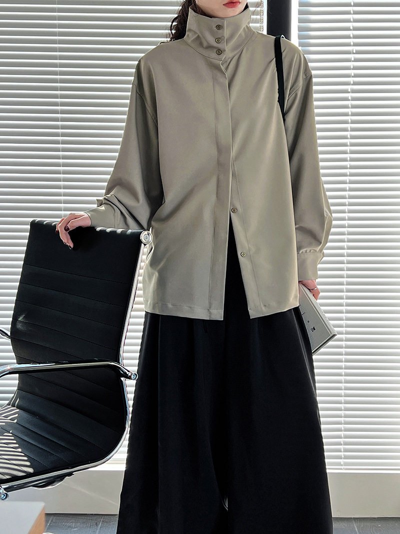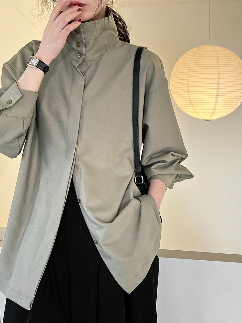 【商品名】【トップス】スタンドカラー ドレープ シンプル 気質 長袖 シャツ