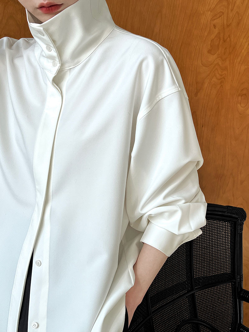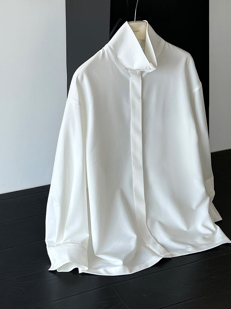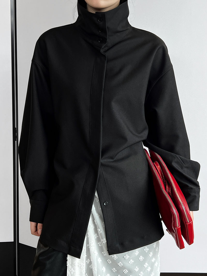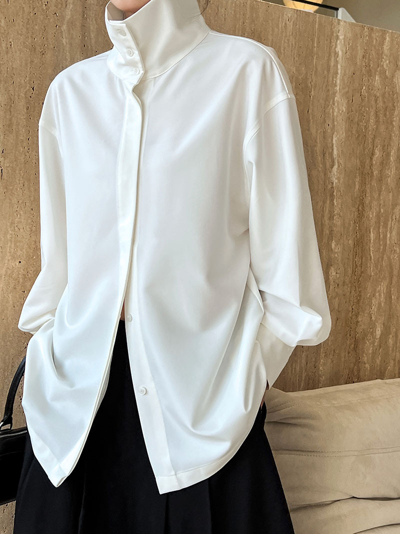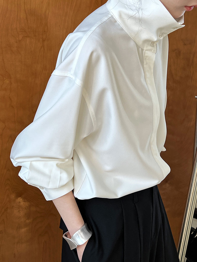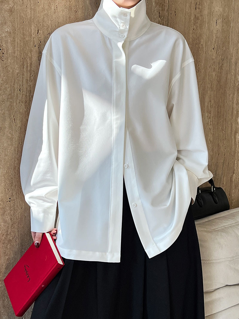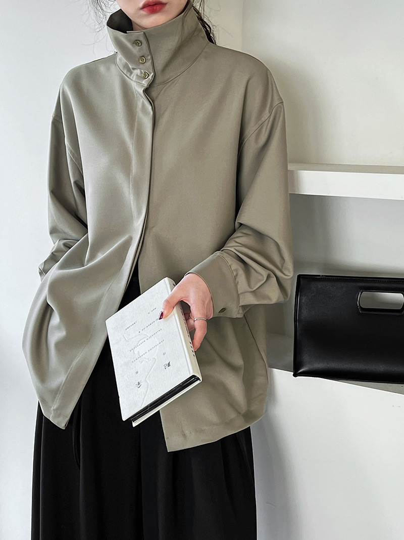 【商品名】【トップス】スタンドカラー ドレープ シンプル 気質 長袖 シャツ
