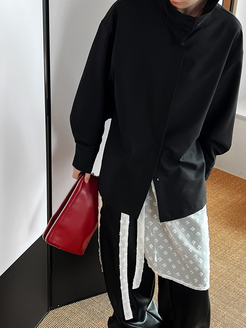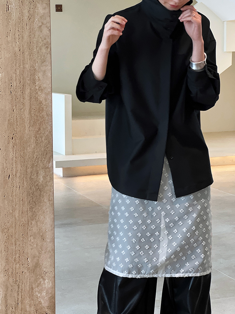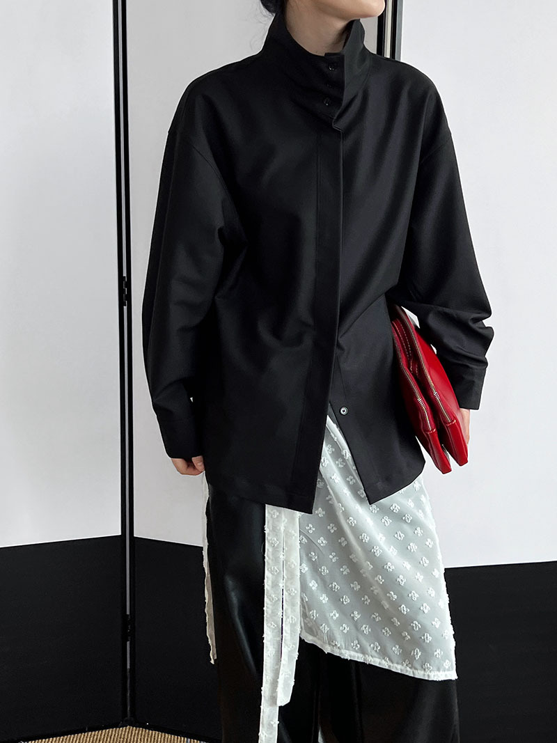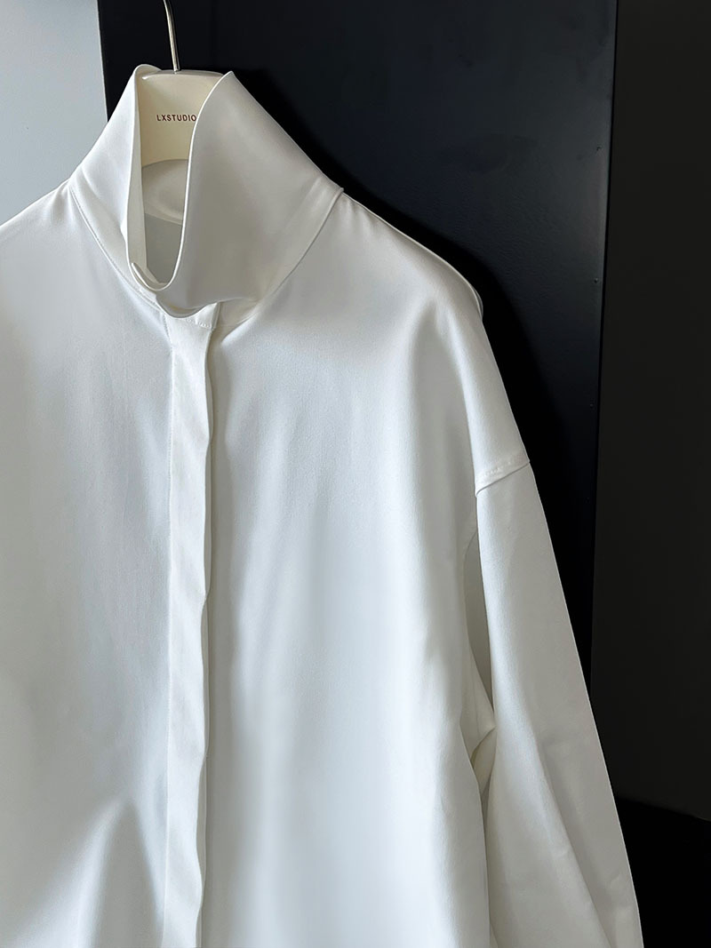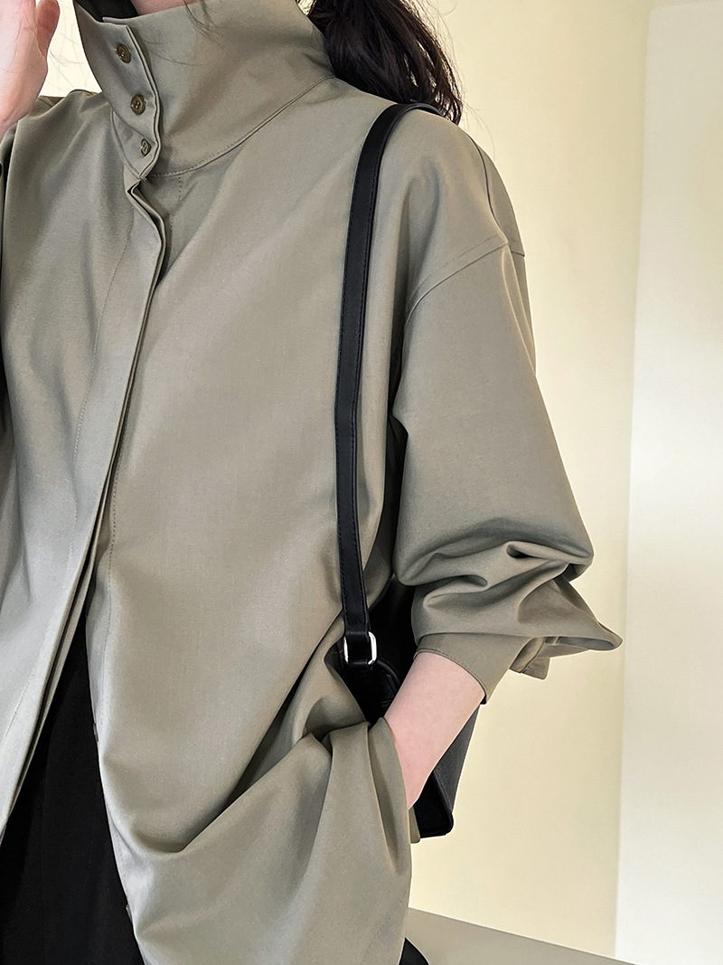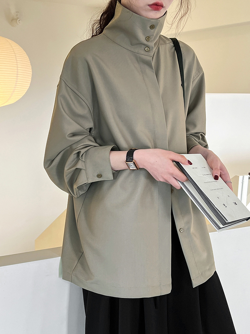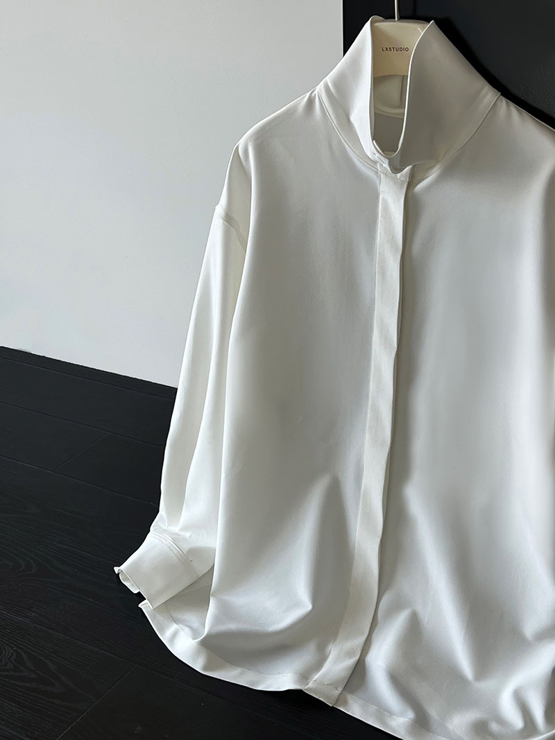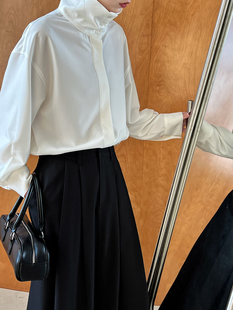 【商品名】【トップス】スタンドカラー ドレープ シンプル 気質 長袖 シャツ