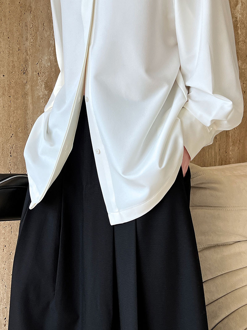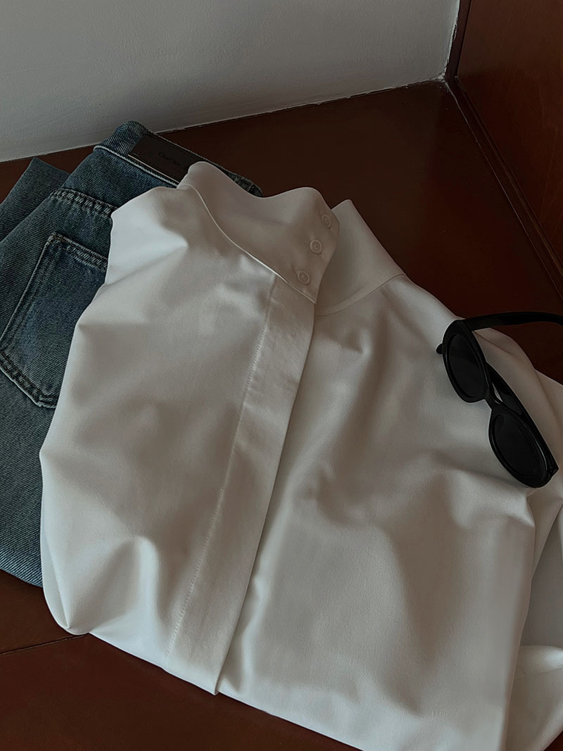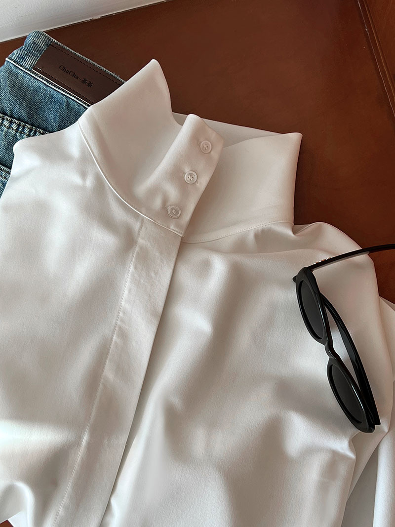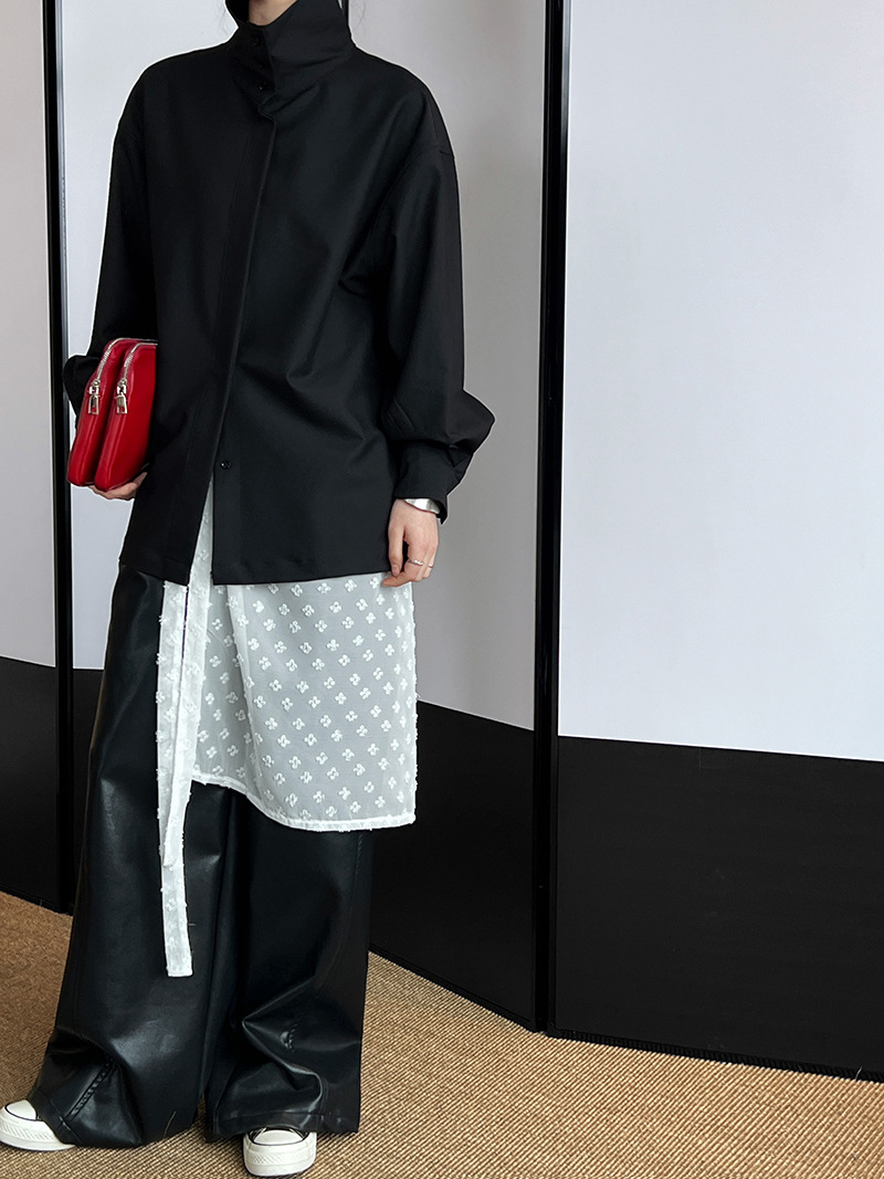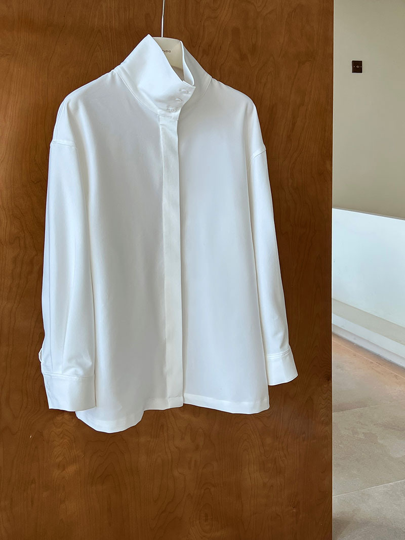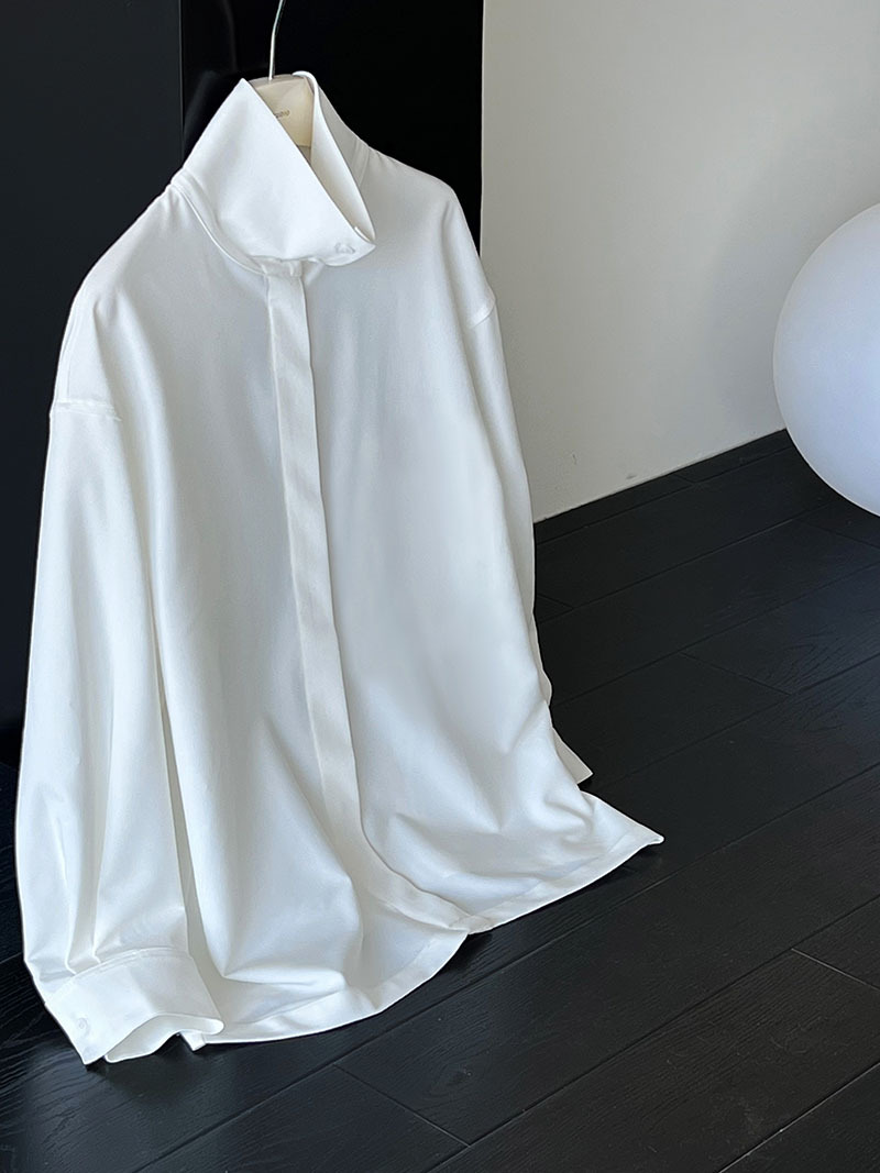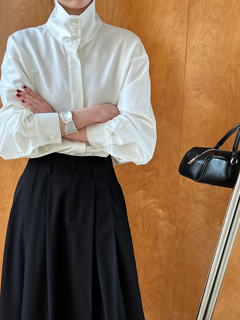 【商品名】【トップス】スタンドカラー ドレープ シンプル 気質 長袖 シャツ