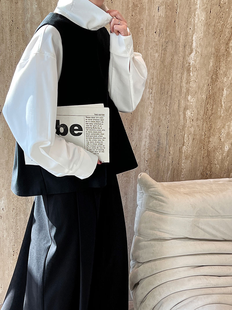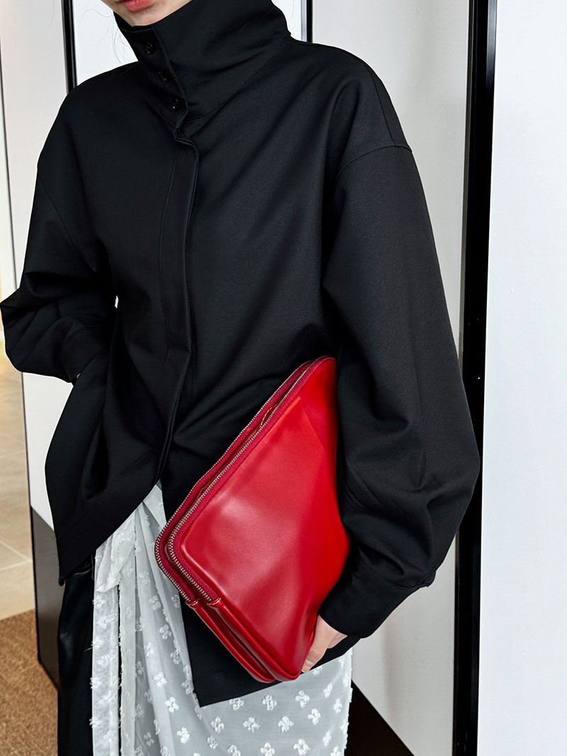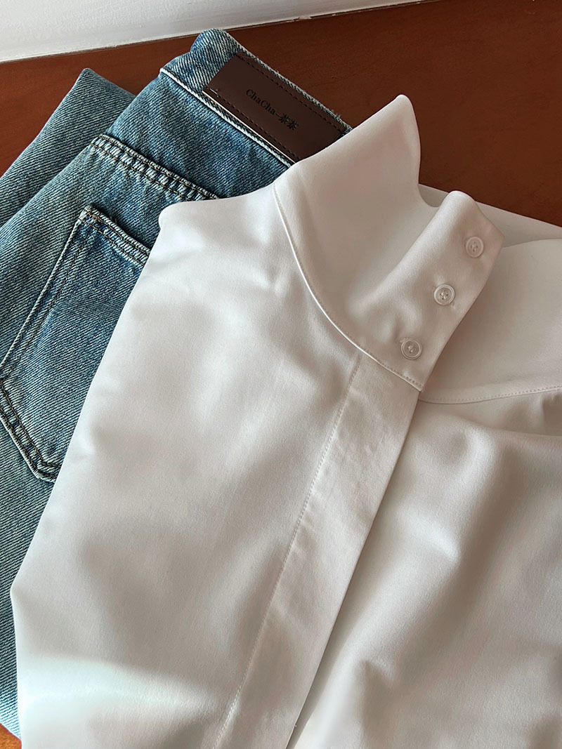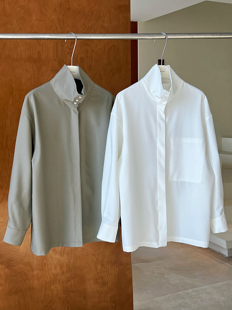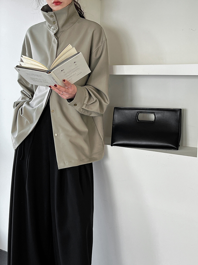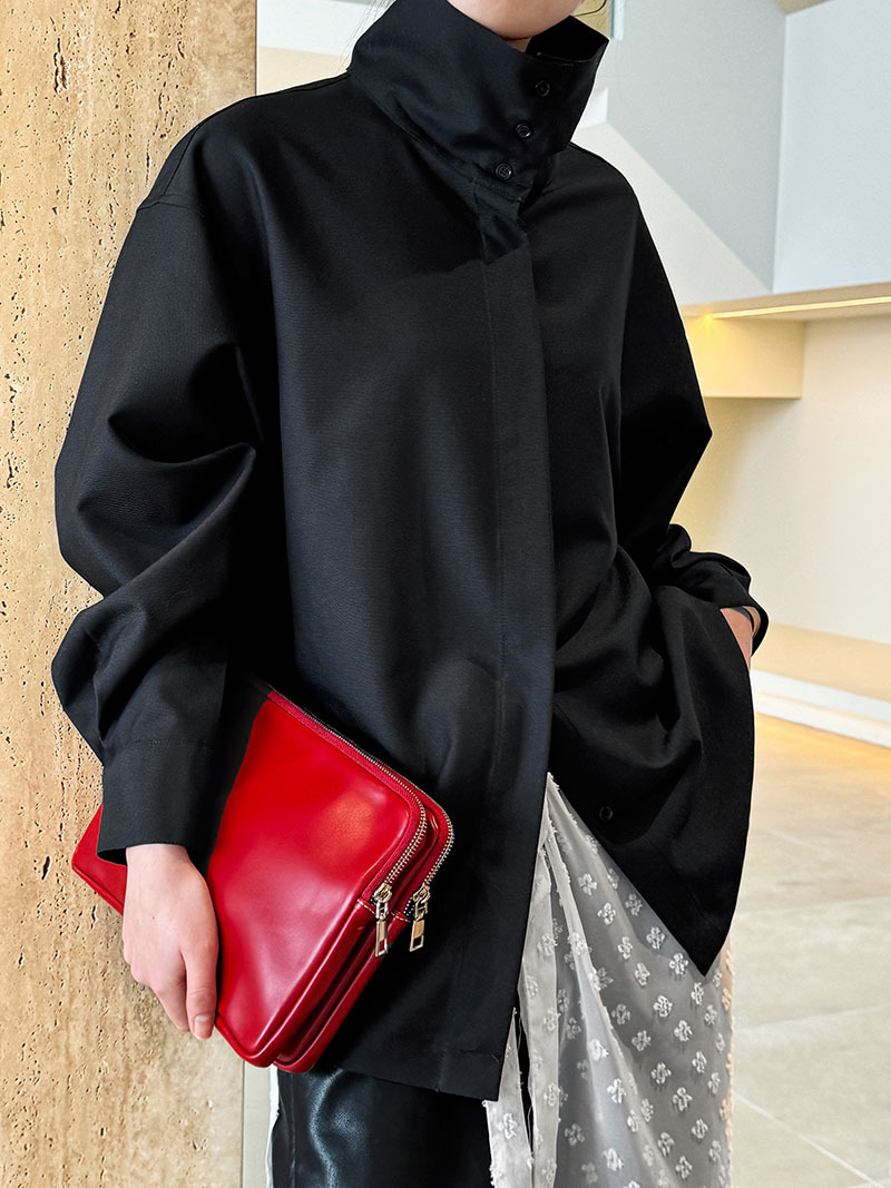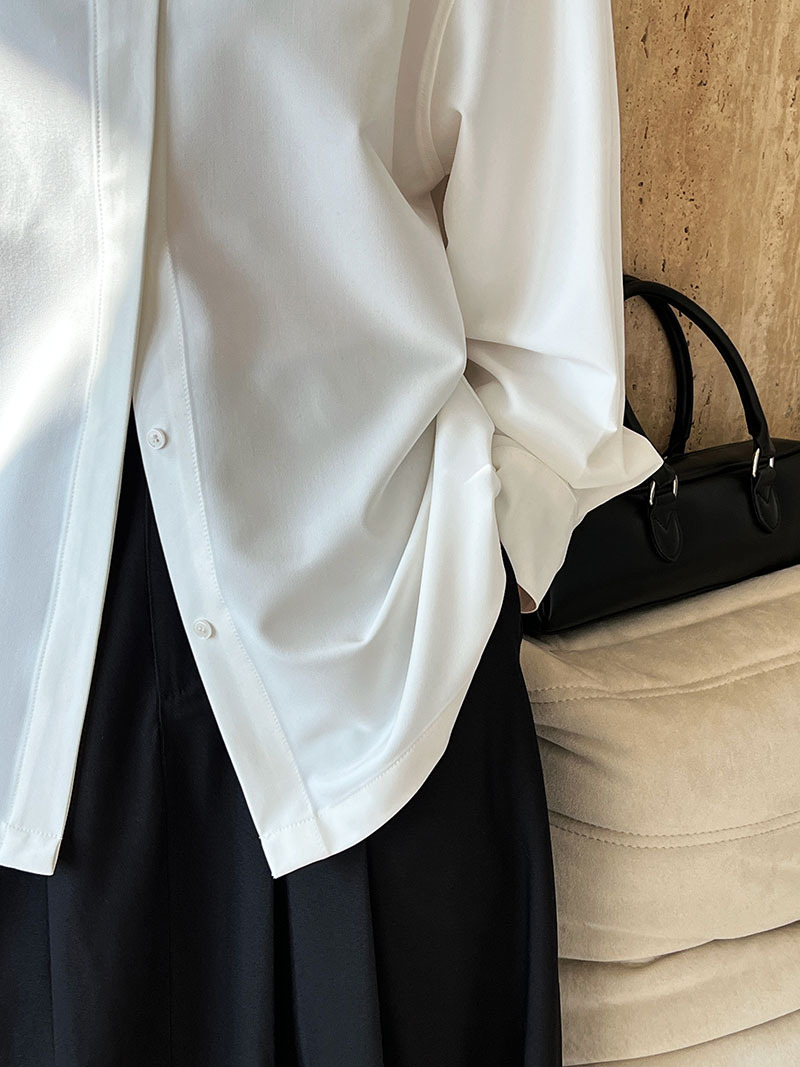 【商品名】【トップス】スタンドカラー ドレープ シンプル 気質 長袖 シャツ