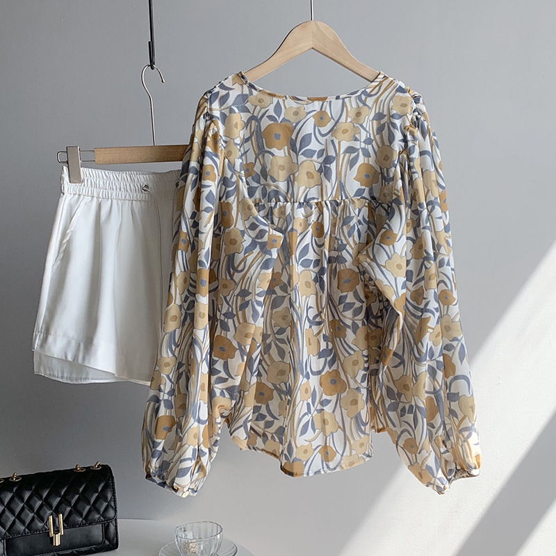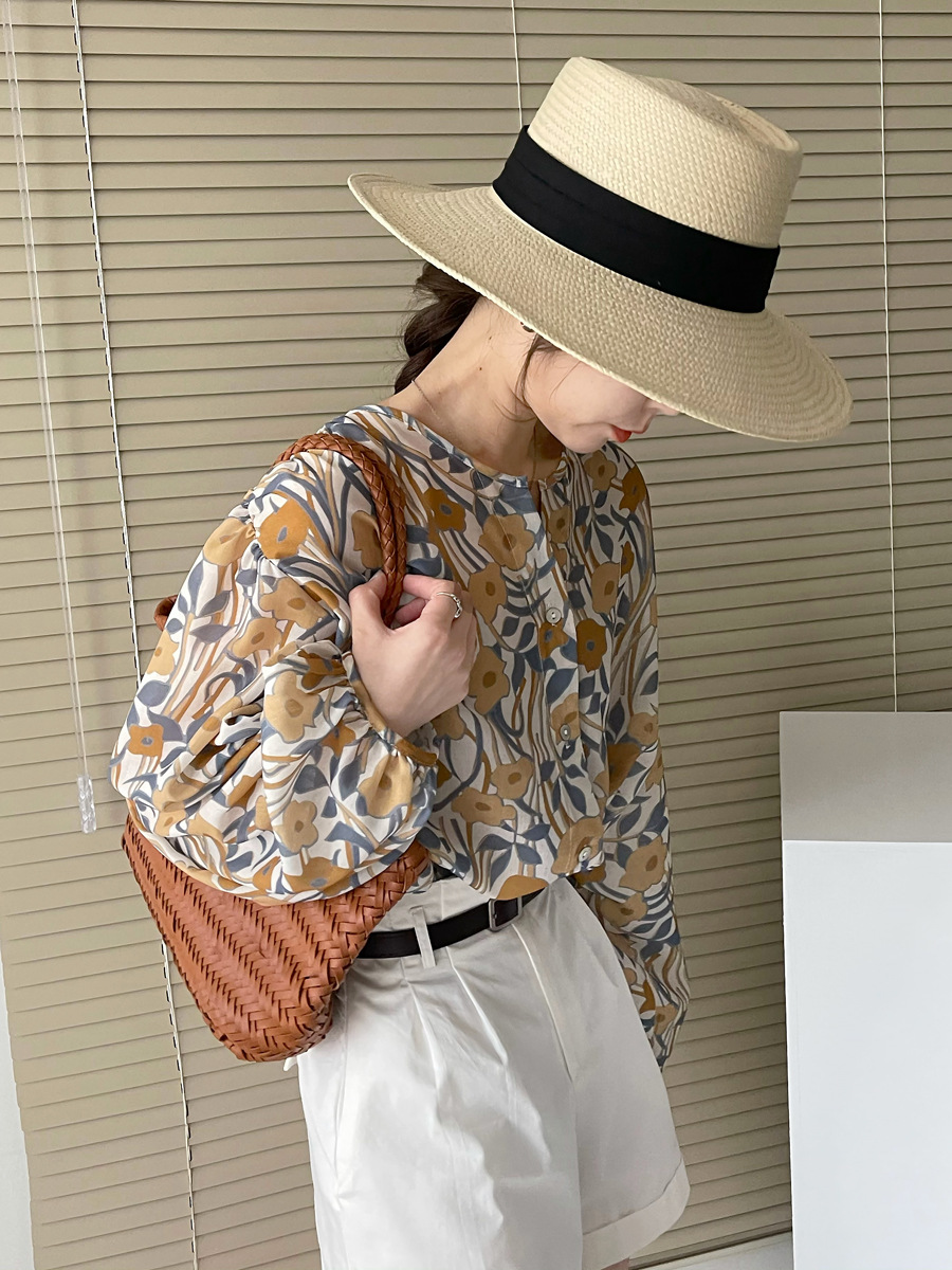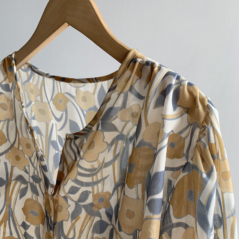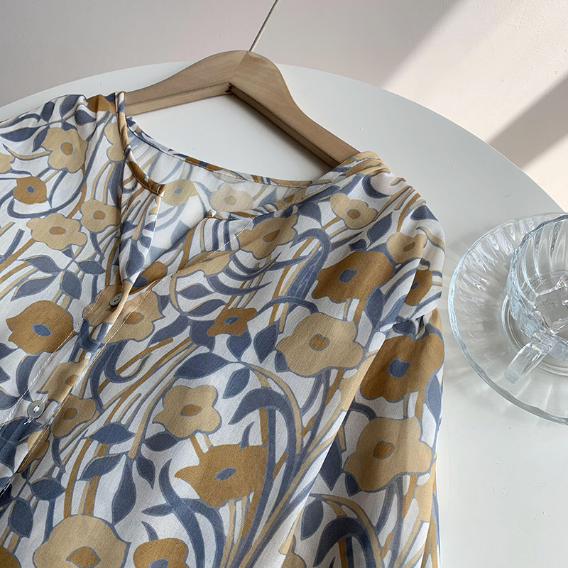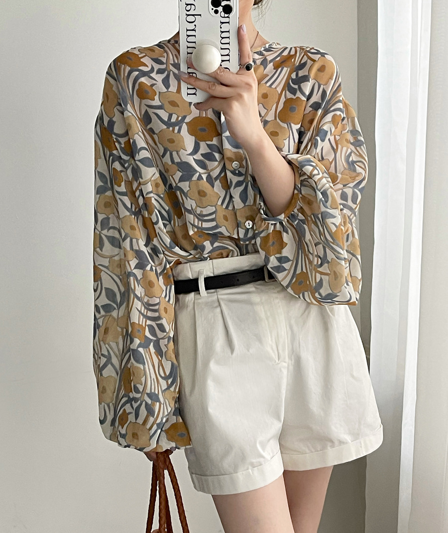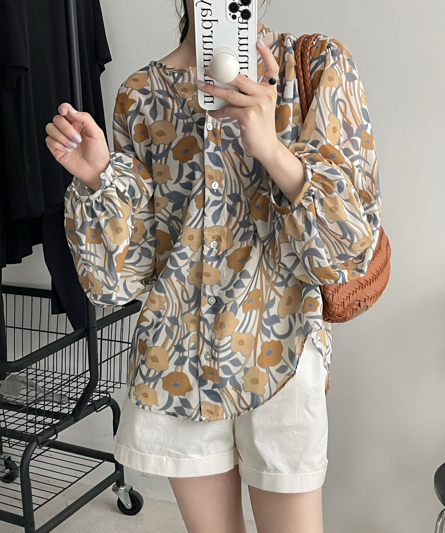 【トップス】春秋 Vネック 花柄 日焼け止め 長袖 レトロ シャツ【JZシリーズ】