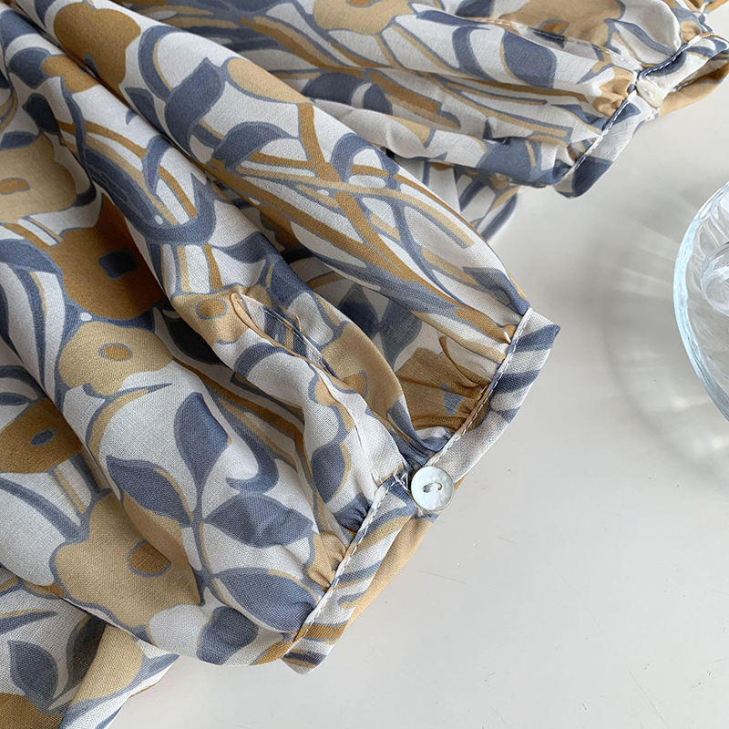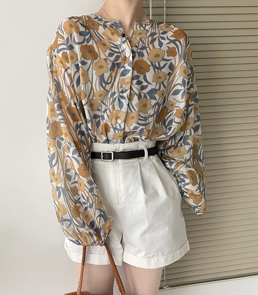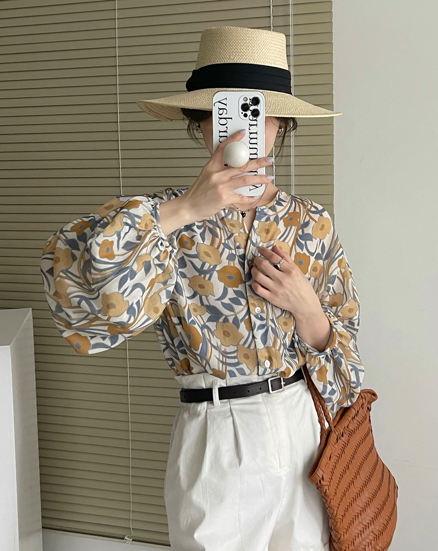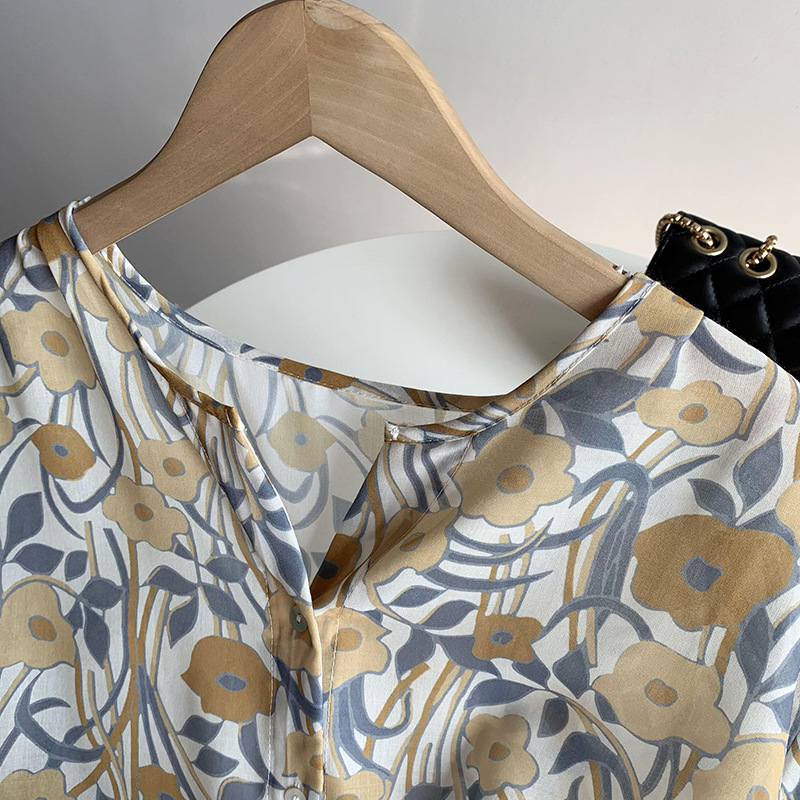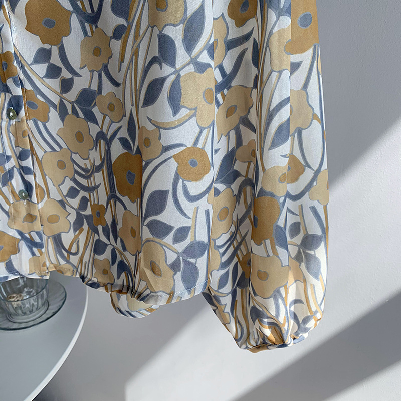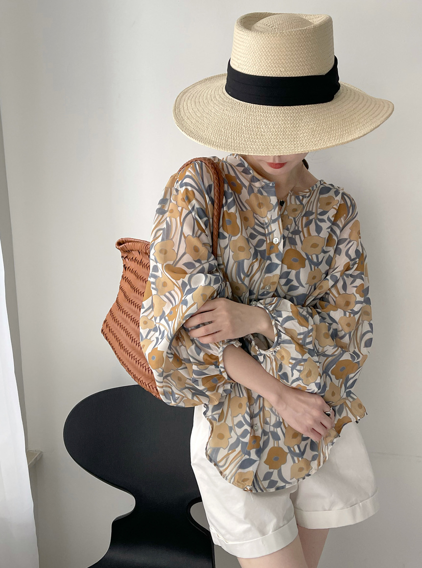 【トップス】春秋 Vネック 花柄 日焼け止め 長袖 レトロ シャツ【JZシリーズ】