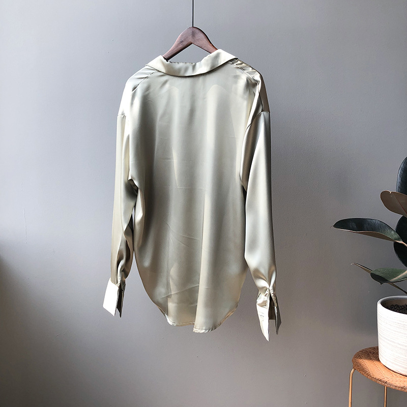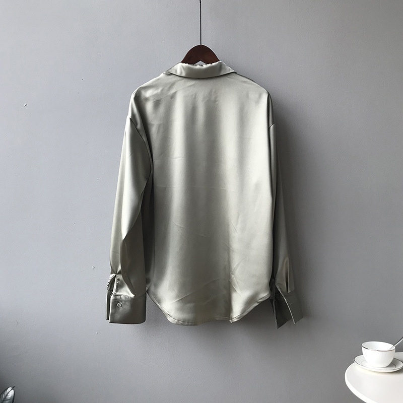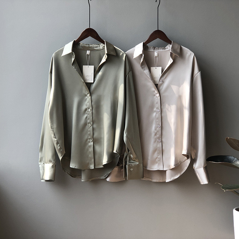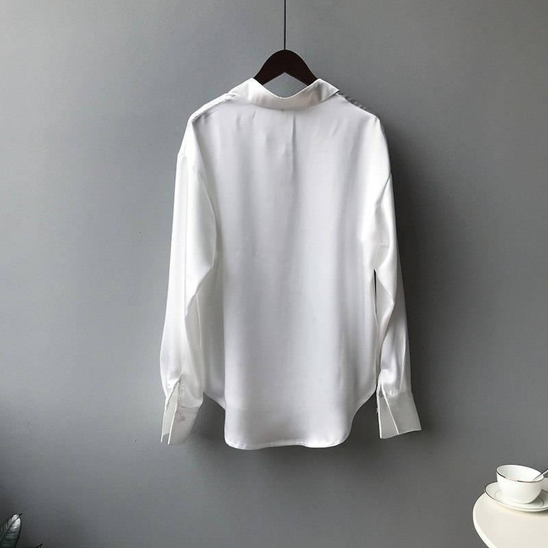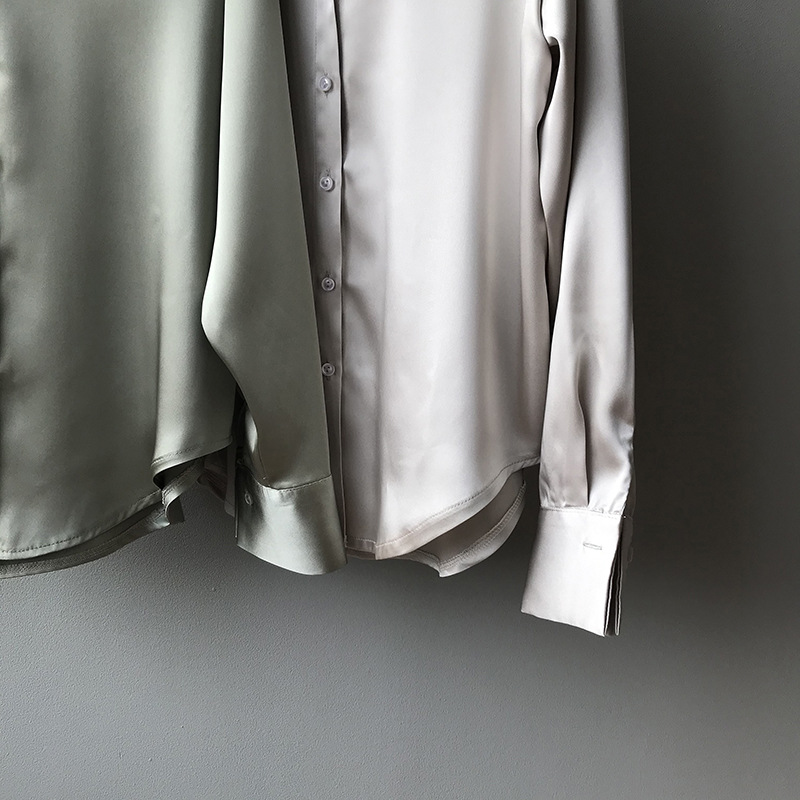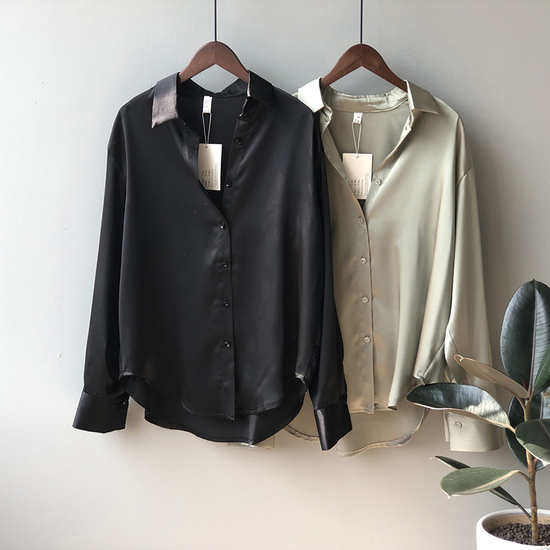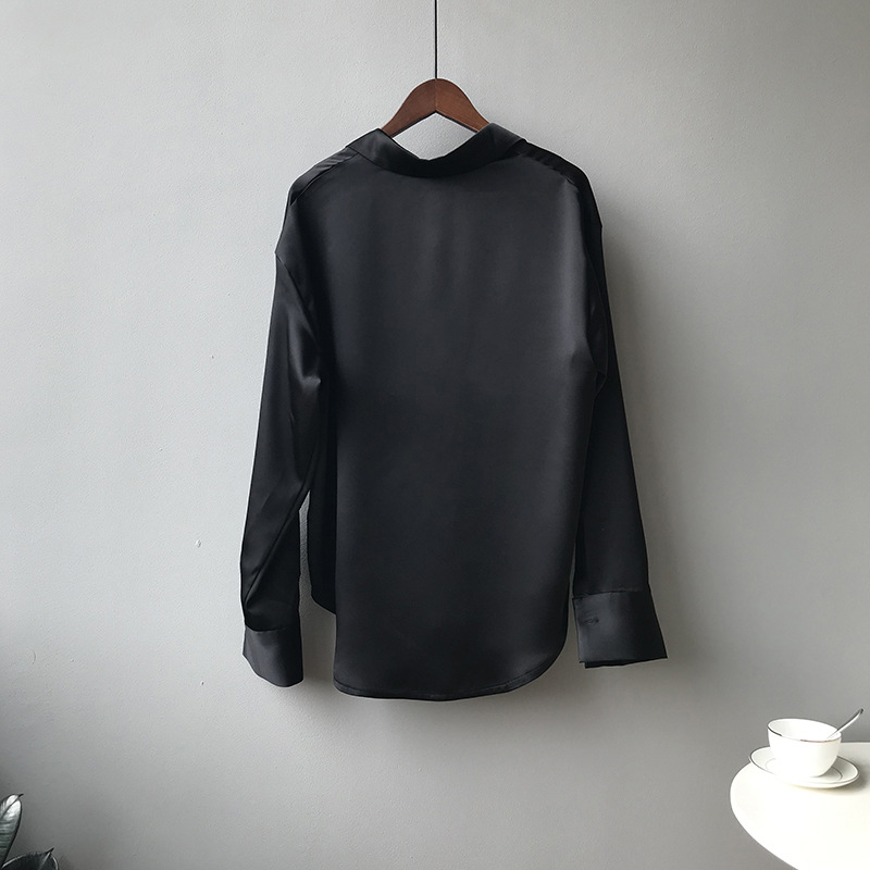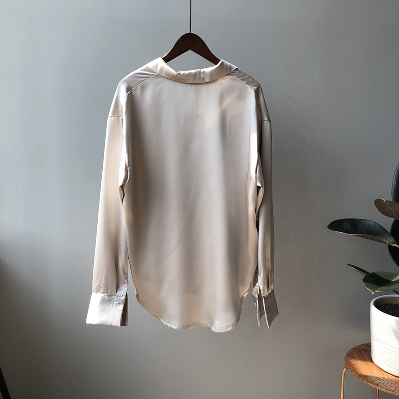 【トップス】春秋 無地 ゆったり 長袖 ラペル 着痩せ シャツ