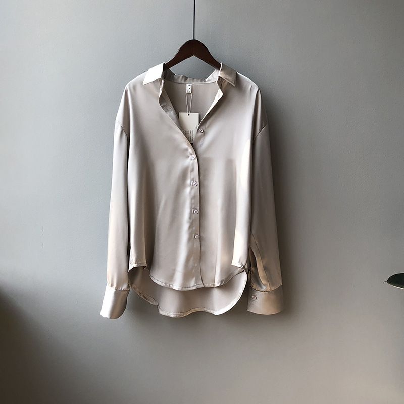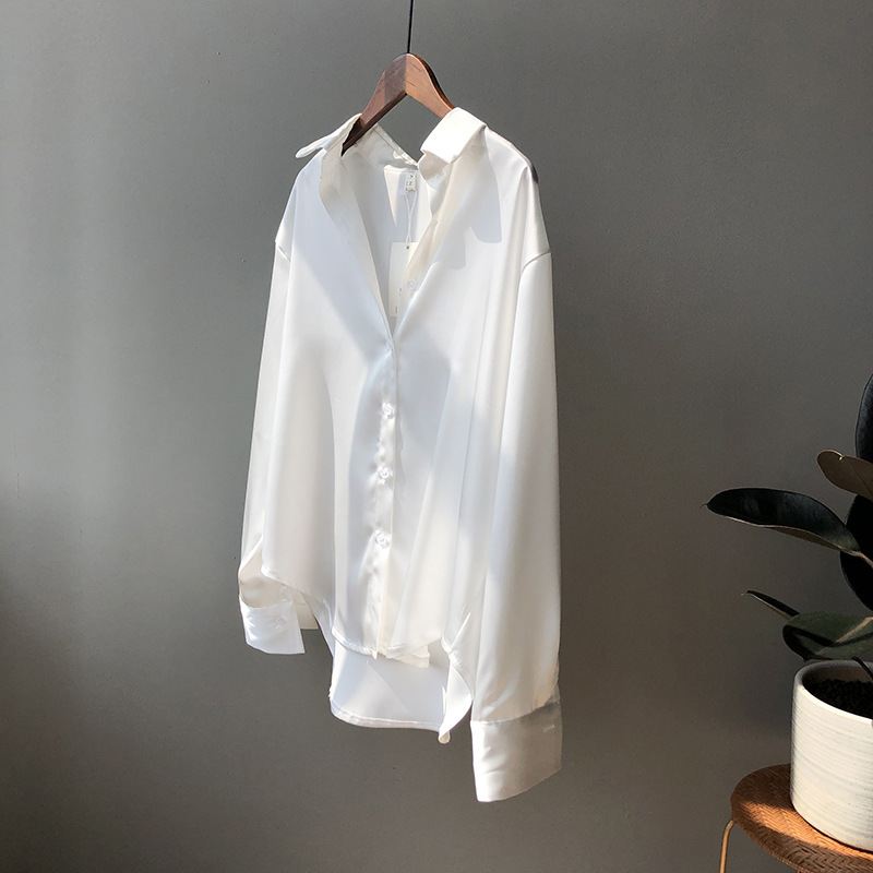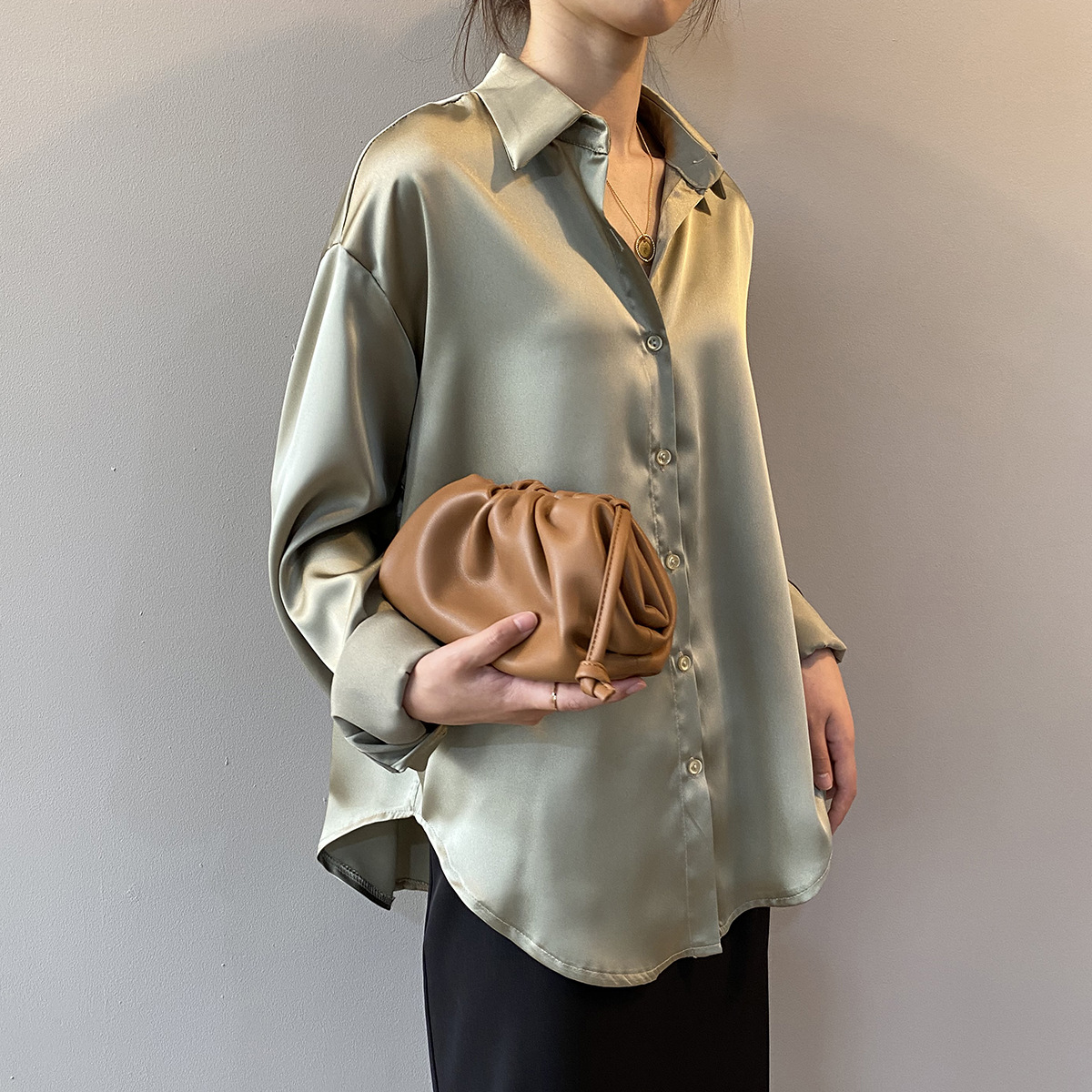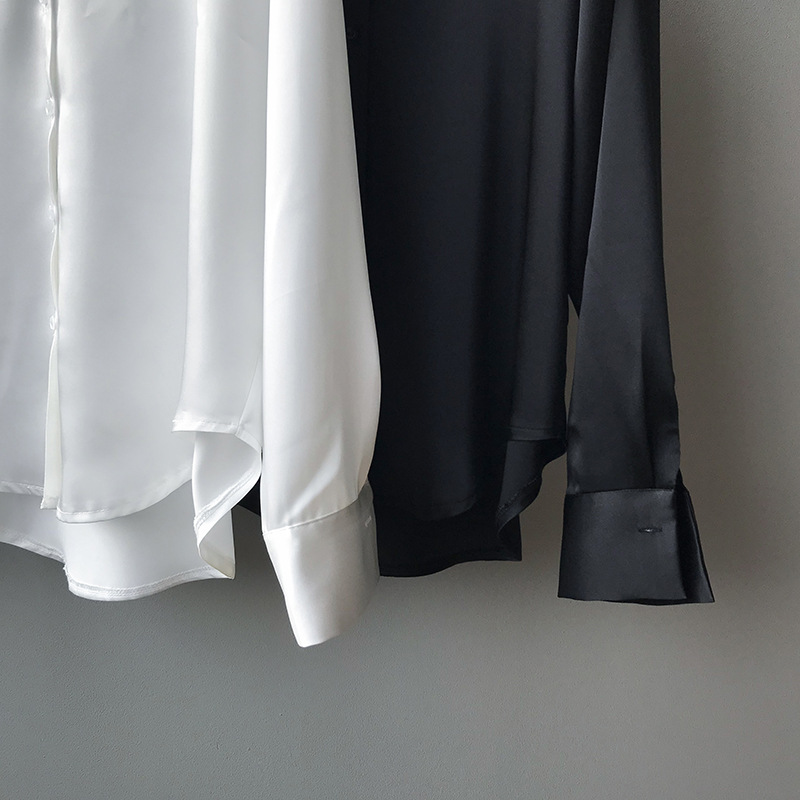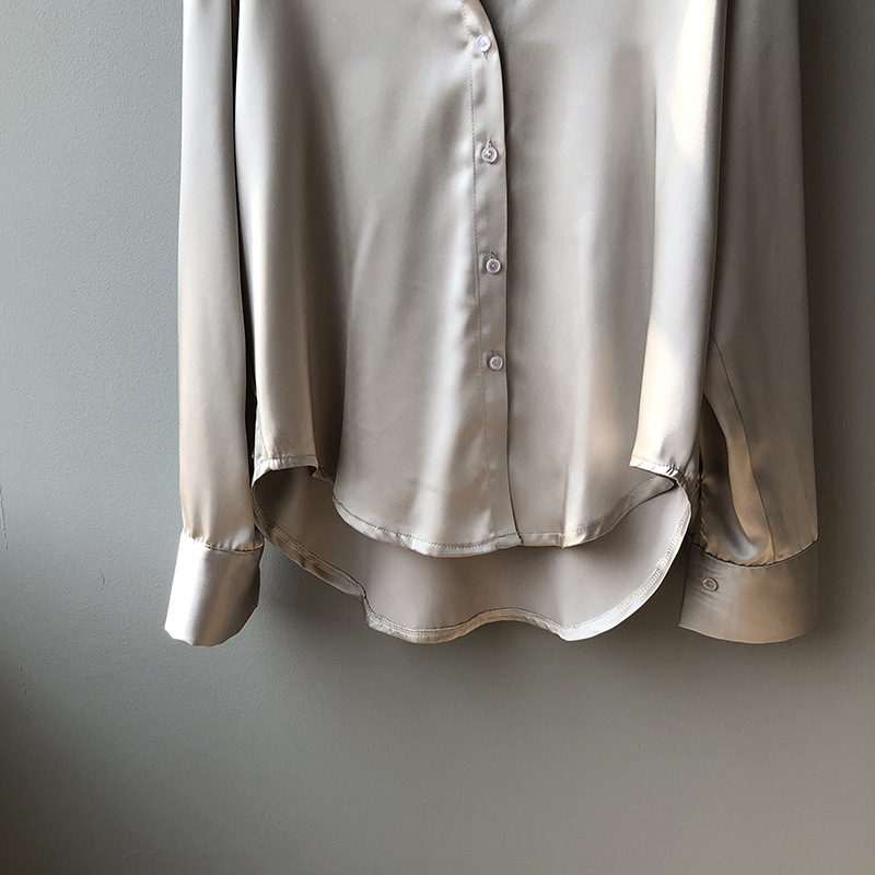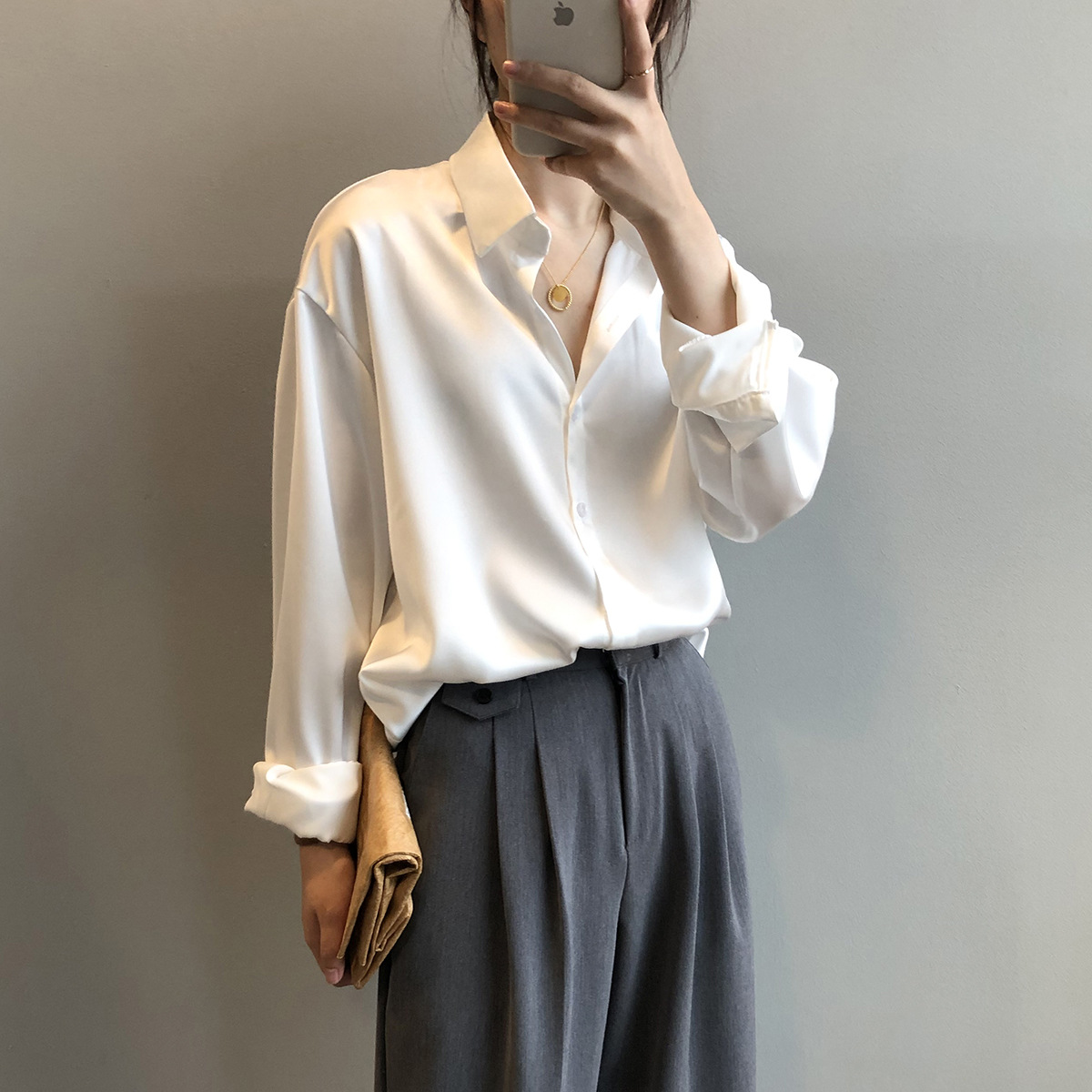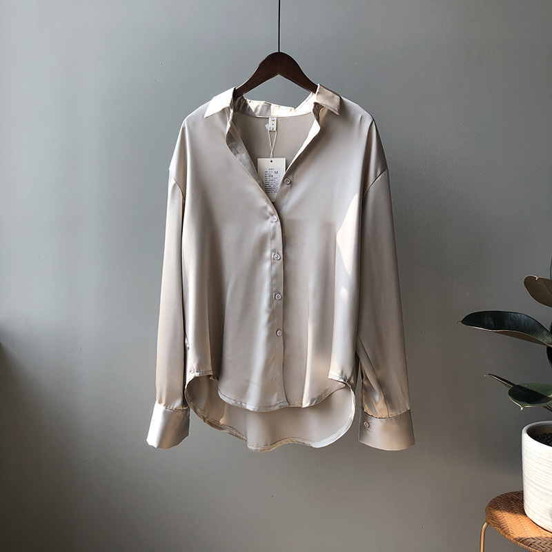 【トップス】春秋 無地 ゆったり 長袖 ラペル 着痩せ シャツ