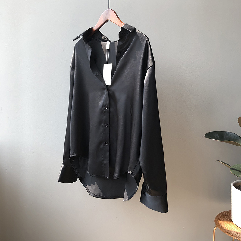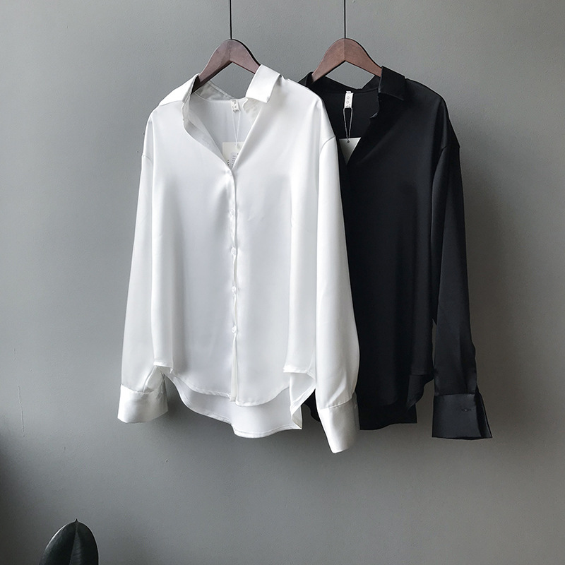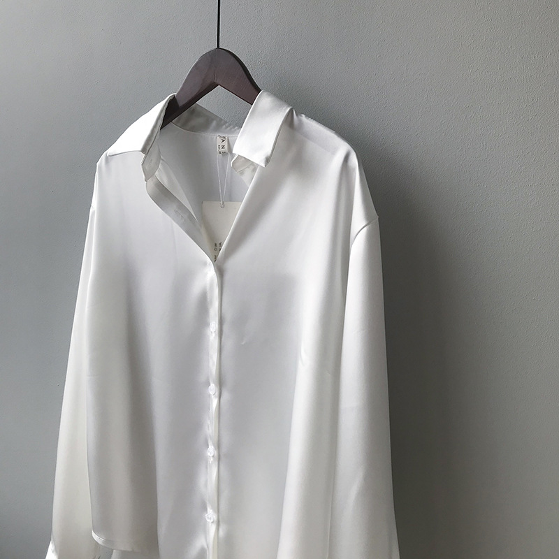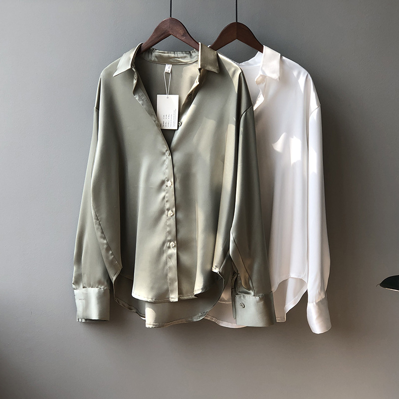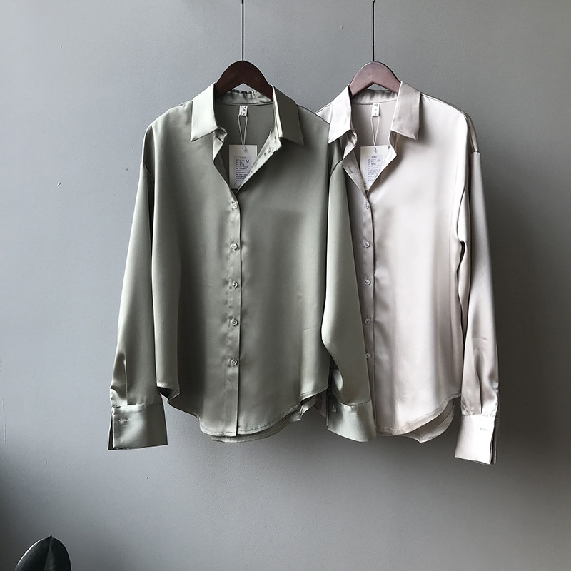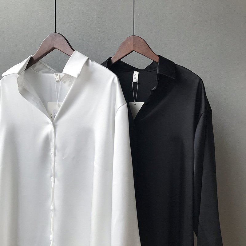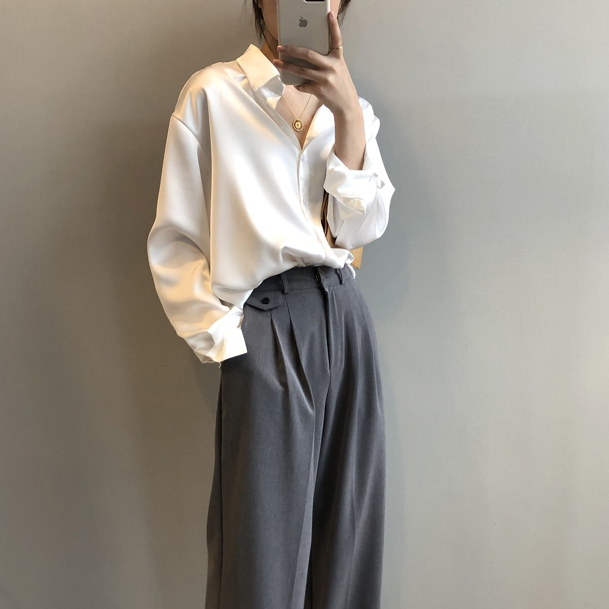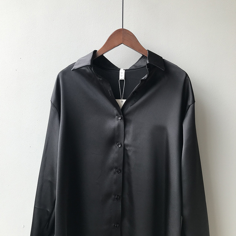 【トップス】春秋 無地 ゆったり 長袖 ラペル 着痩せ シャツ