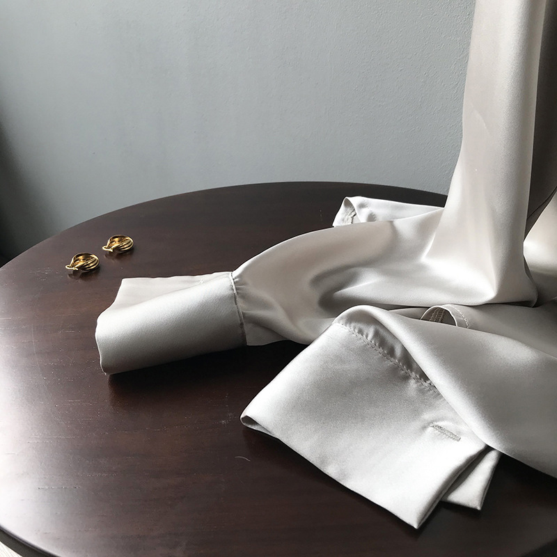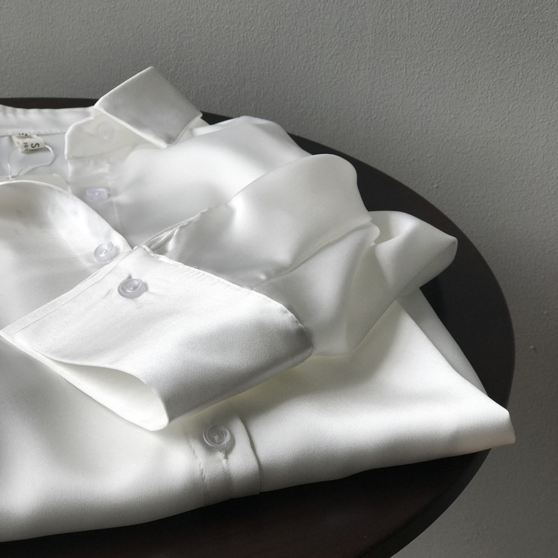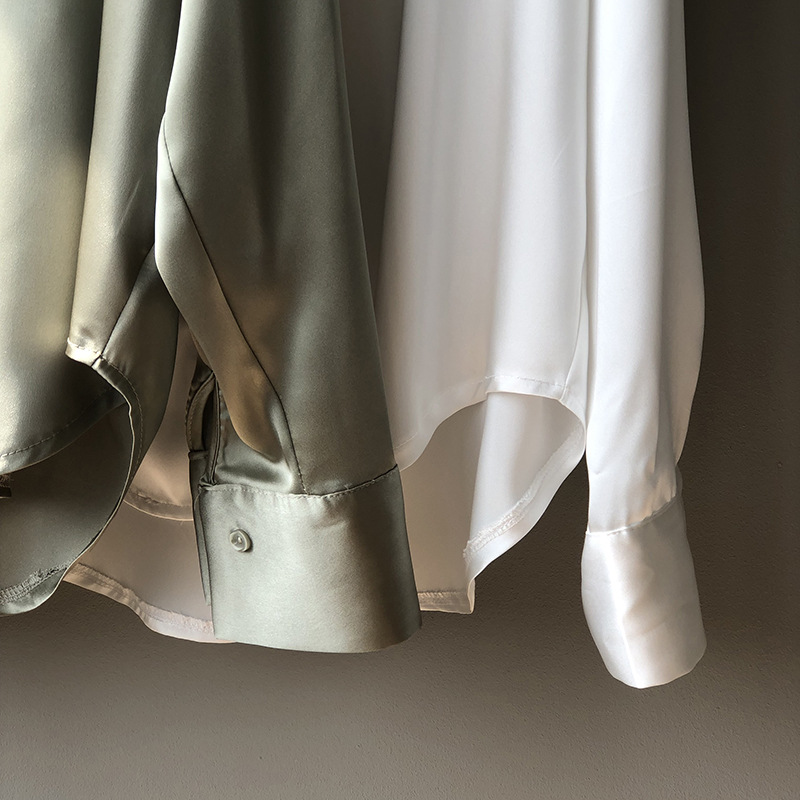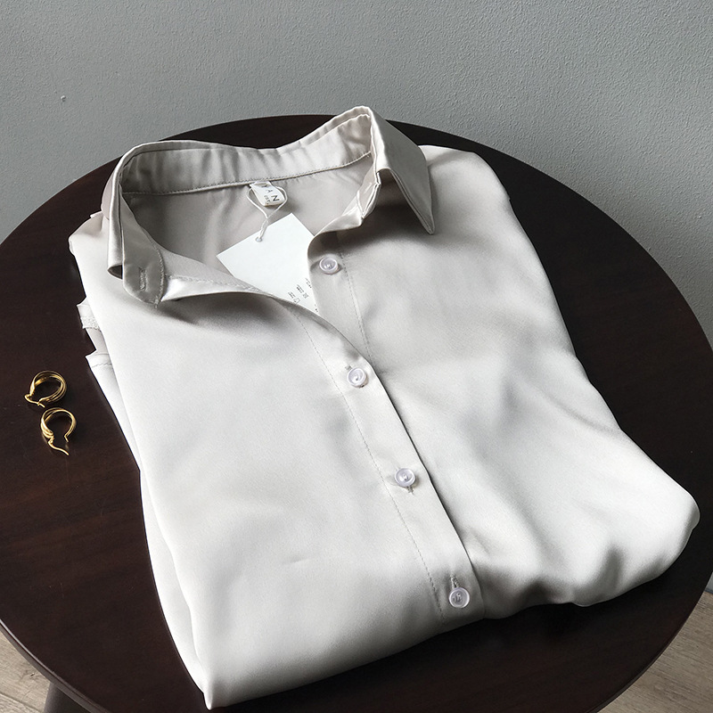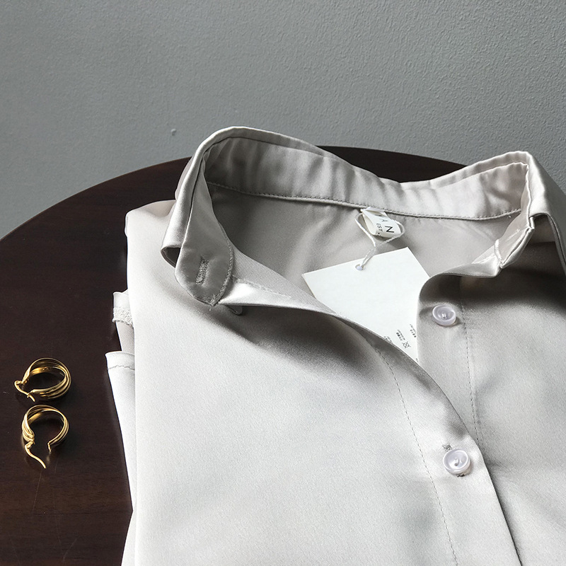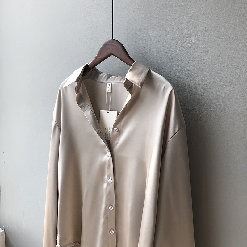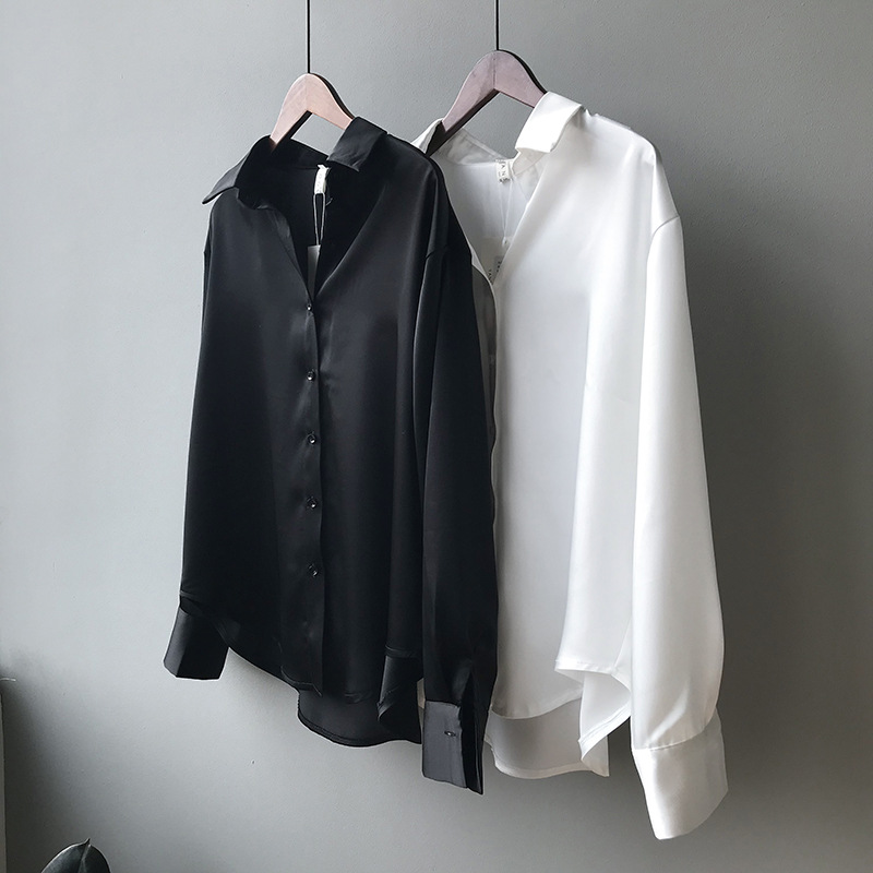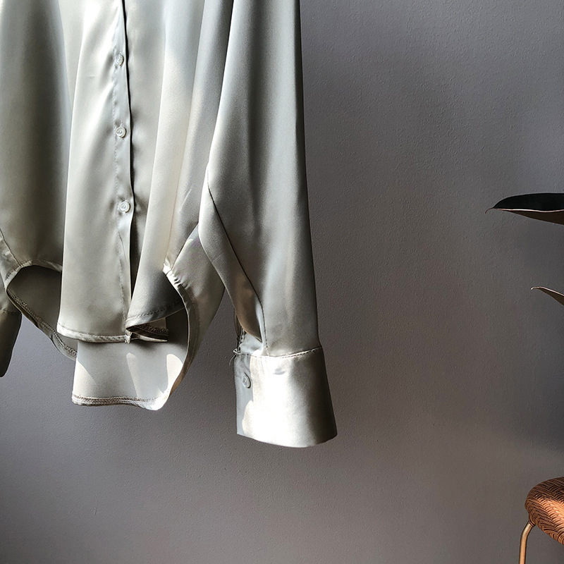 【トップス】春秋 無地 ゆったり 長袖 ラペル 着痩せ シャツ