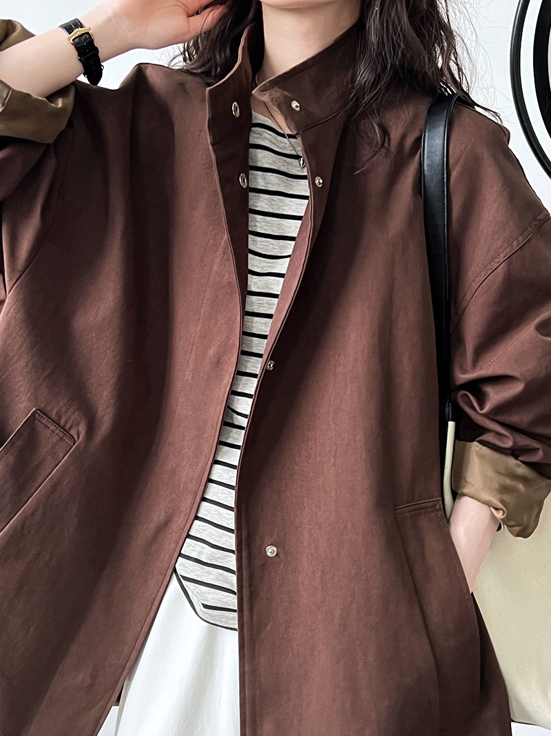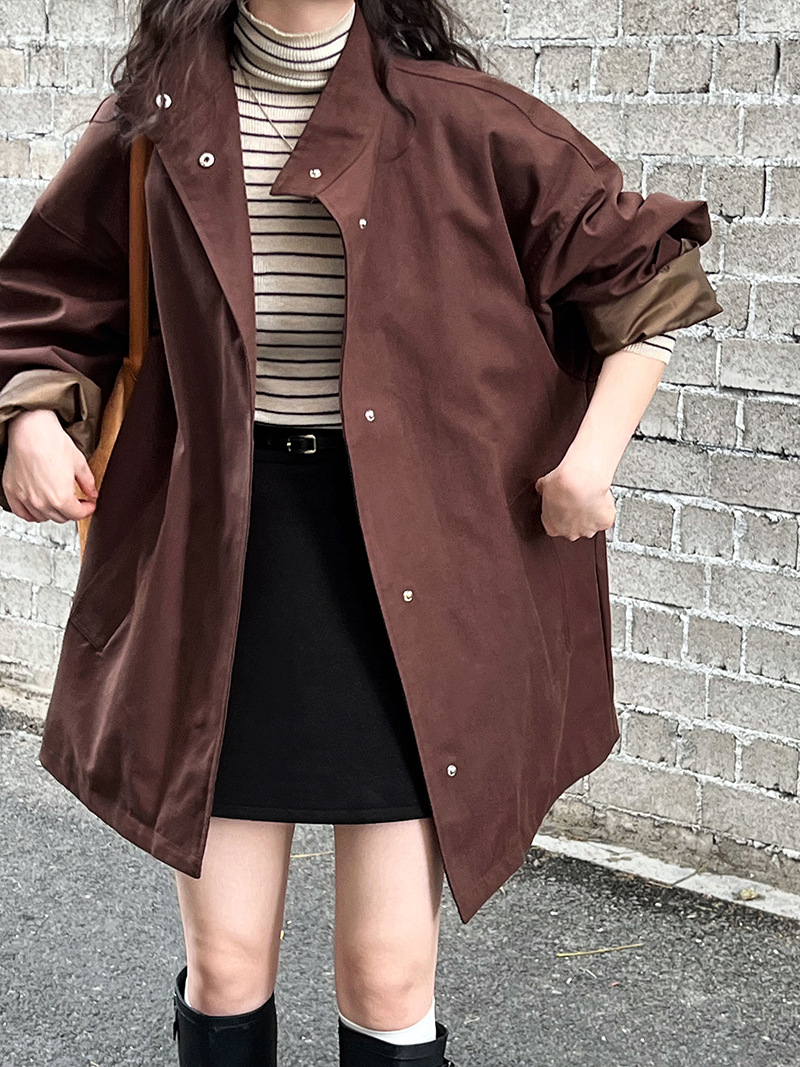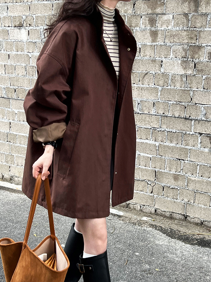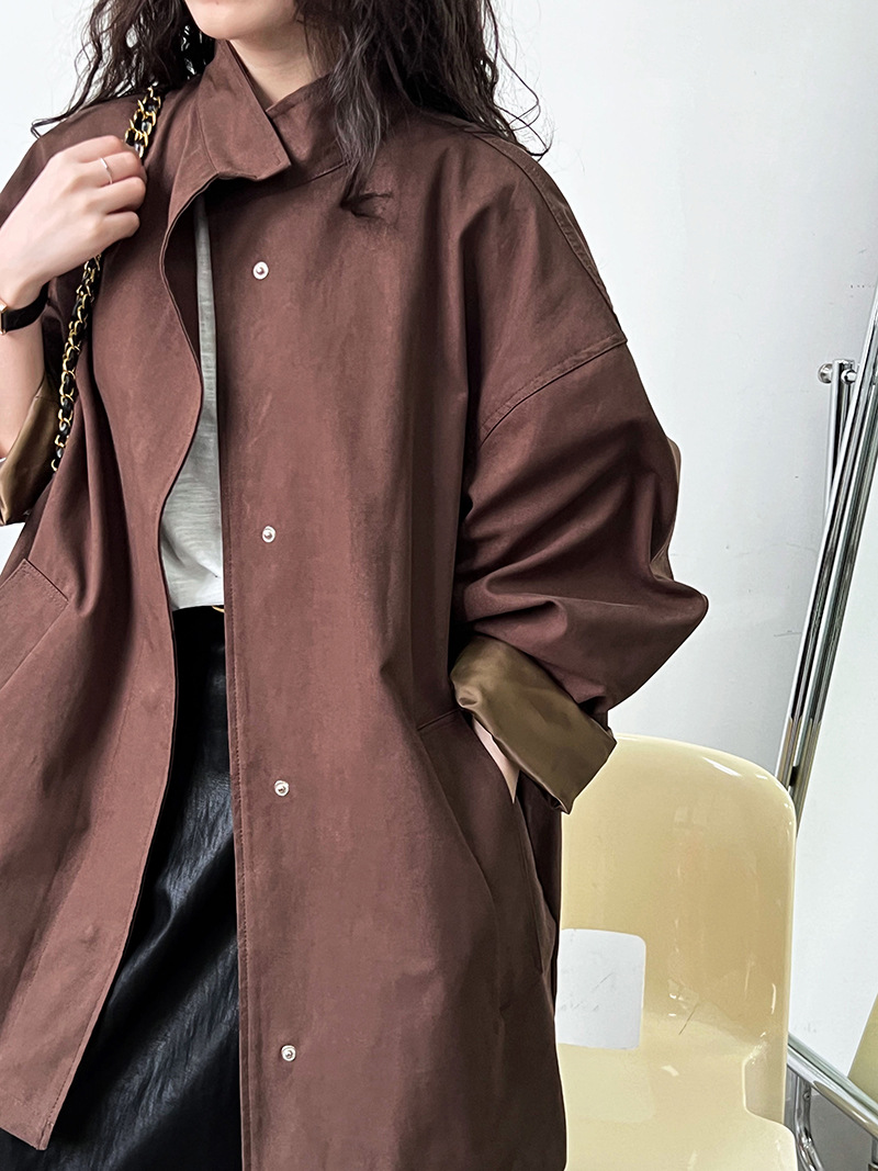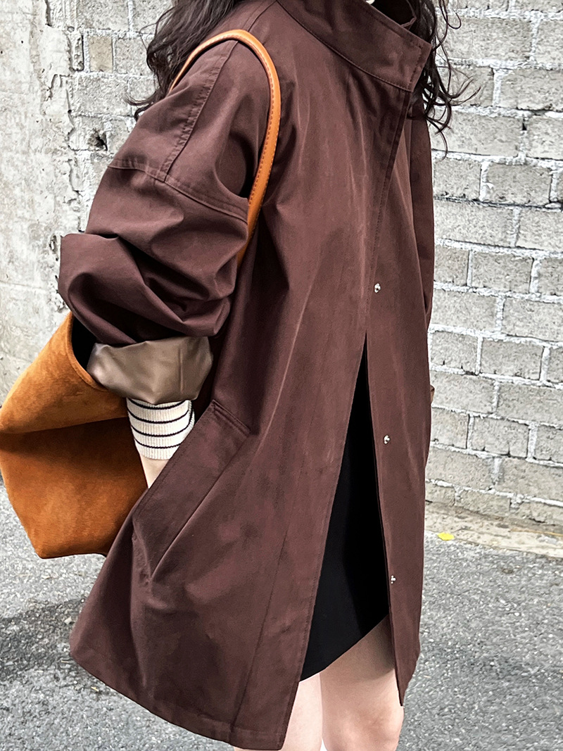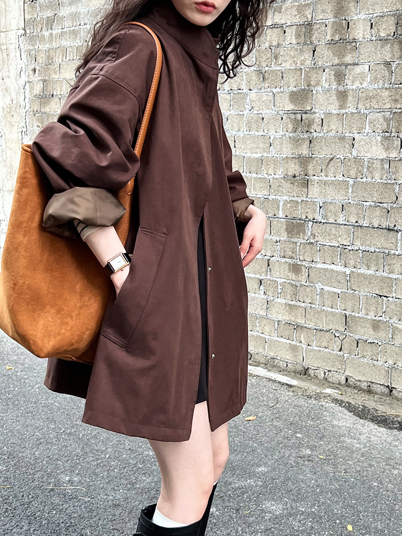 【商品名】【アウター】高級感 気質 スタンドカラー オーバーサイズ トレンチコート