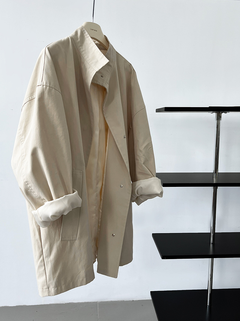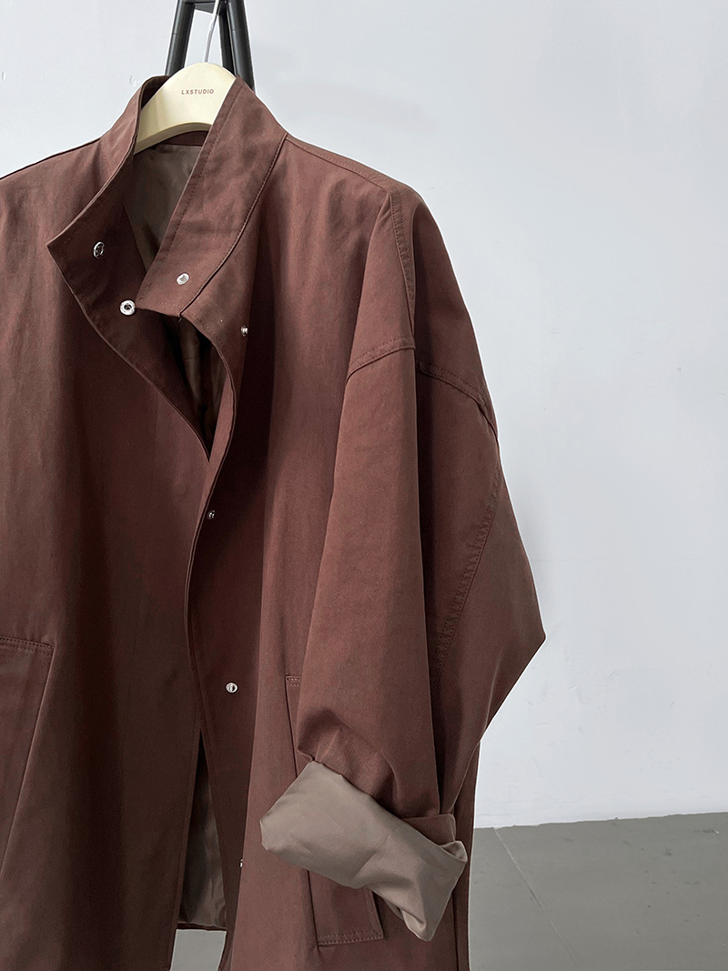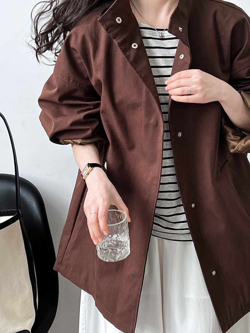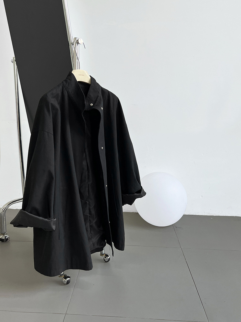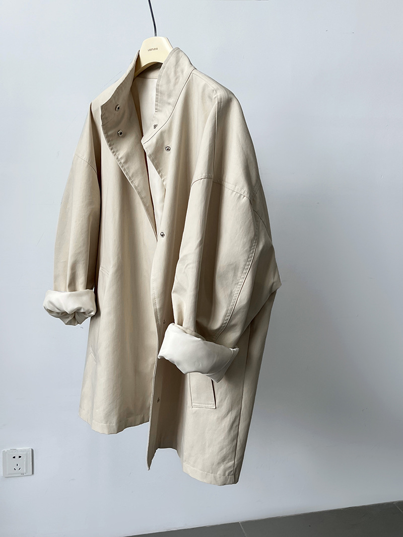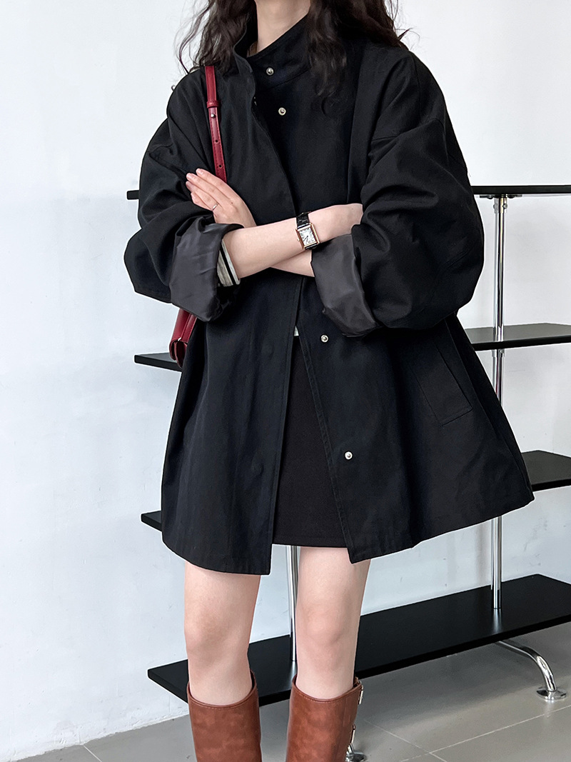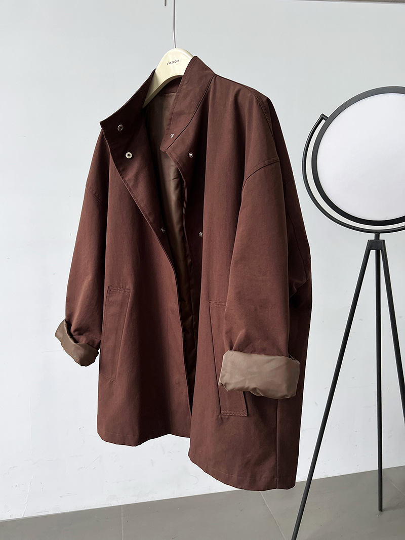 【商品名】【アウター】高級感 気質 スタンドカラー オーバーサイズ トレンチコート