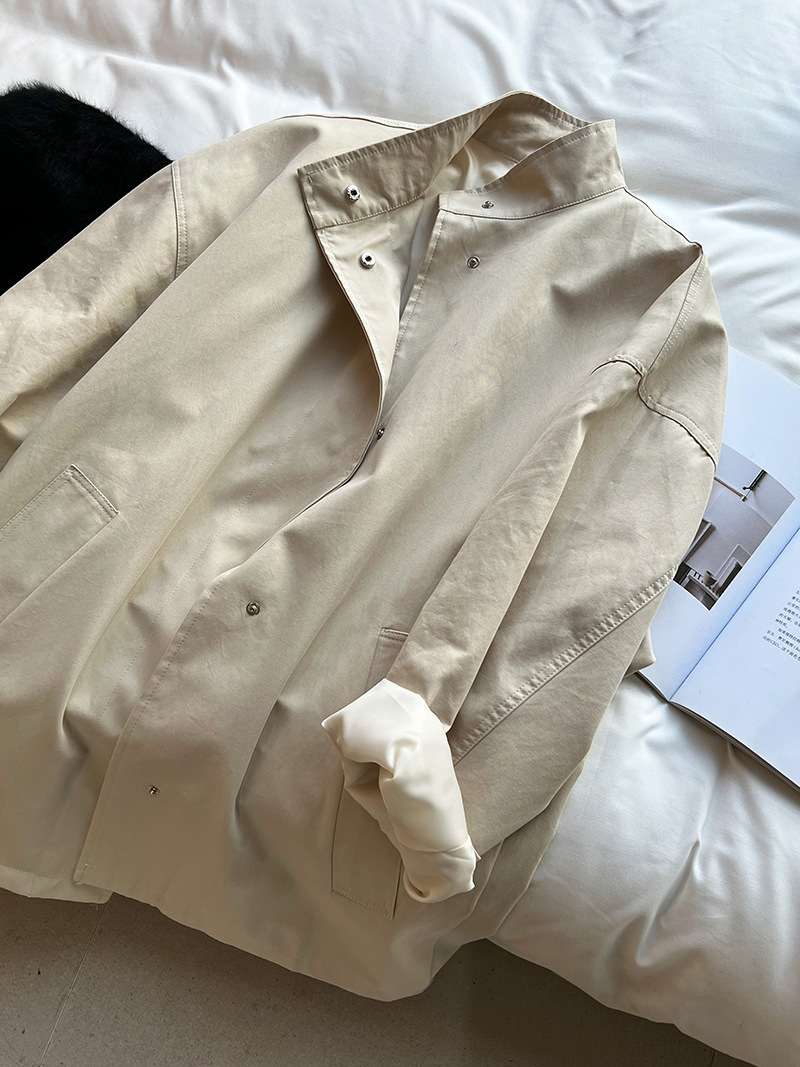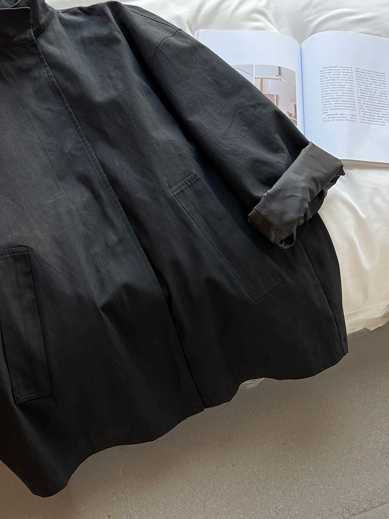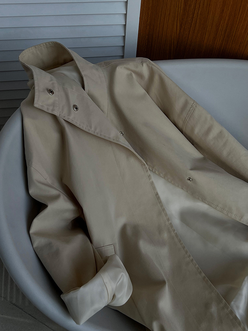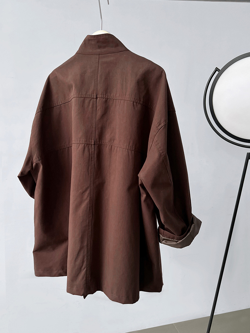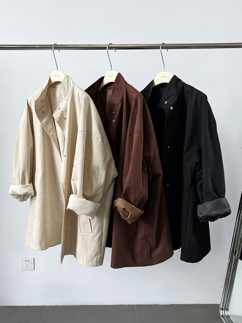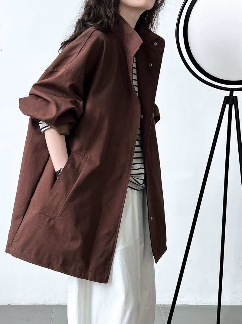 【商品名】【アウター】高級感 気質 スタンドカラー オーバーサイズ トレンチコート