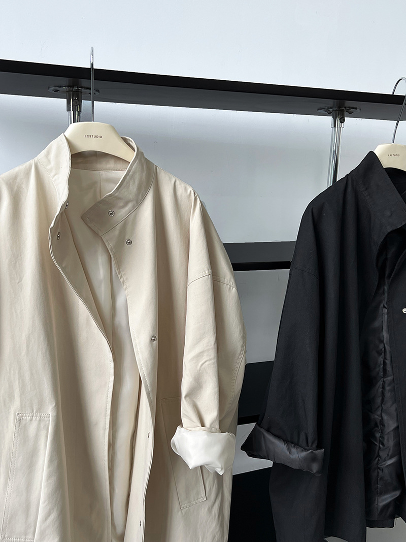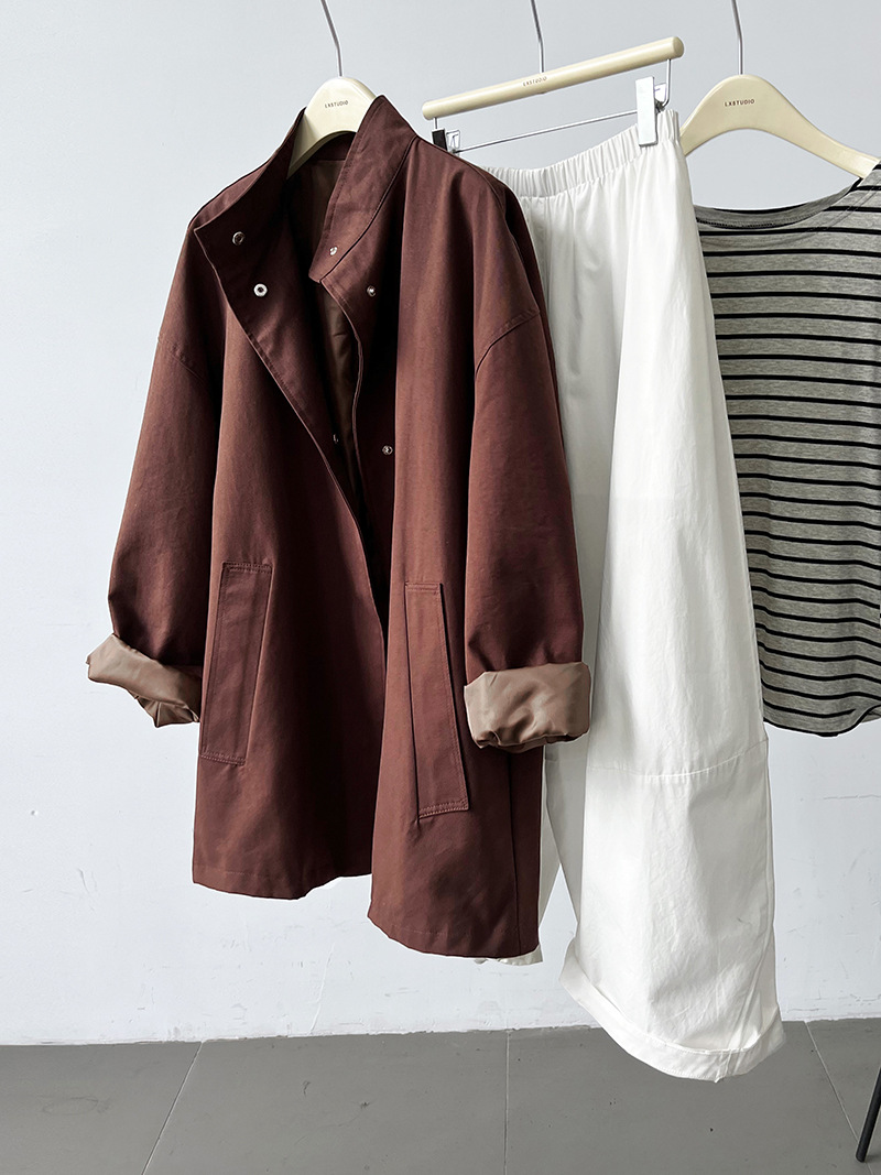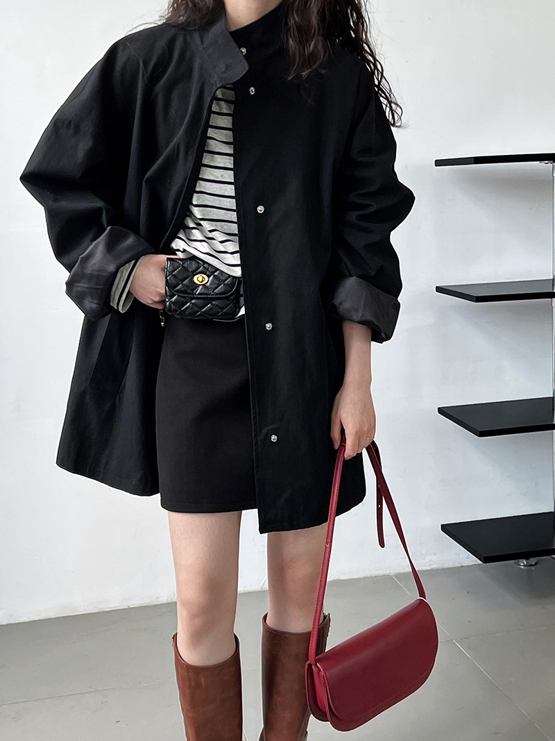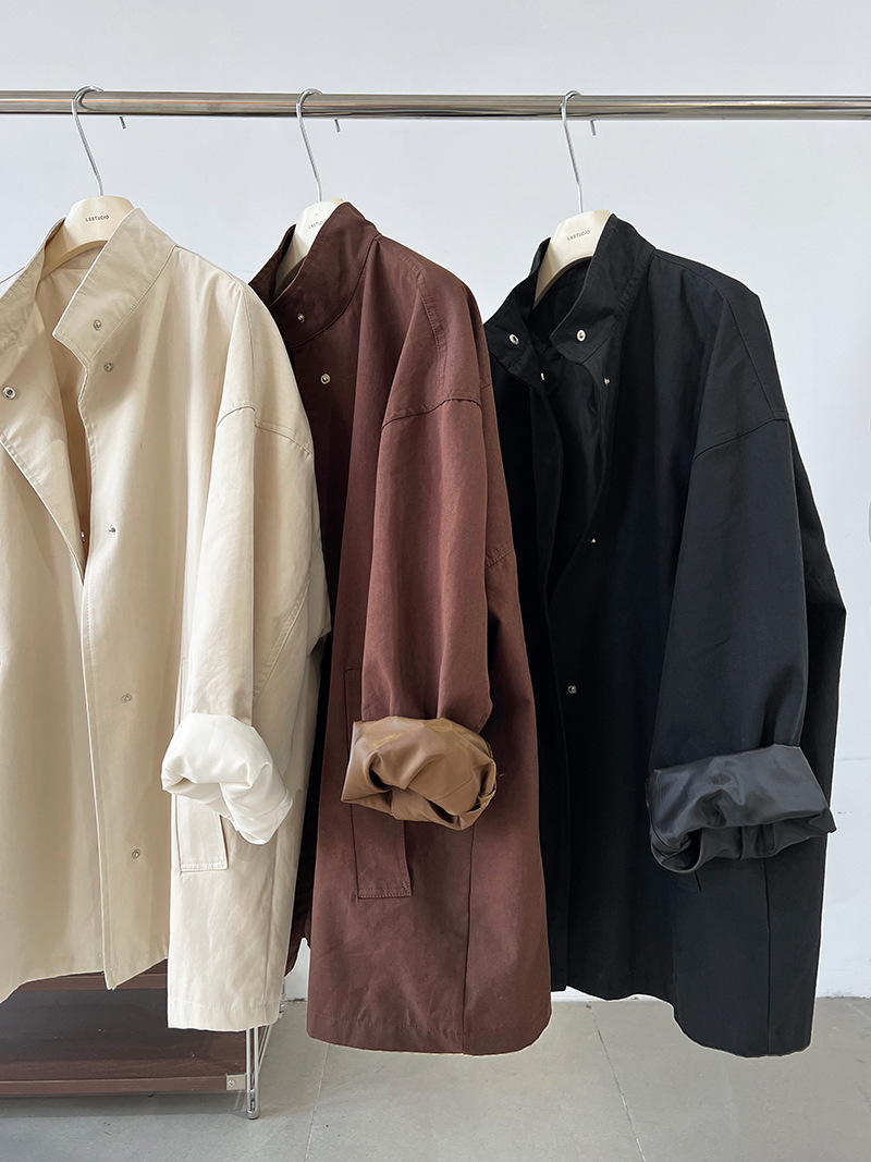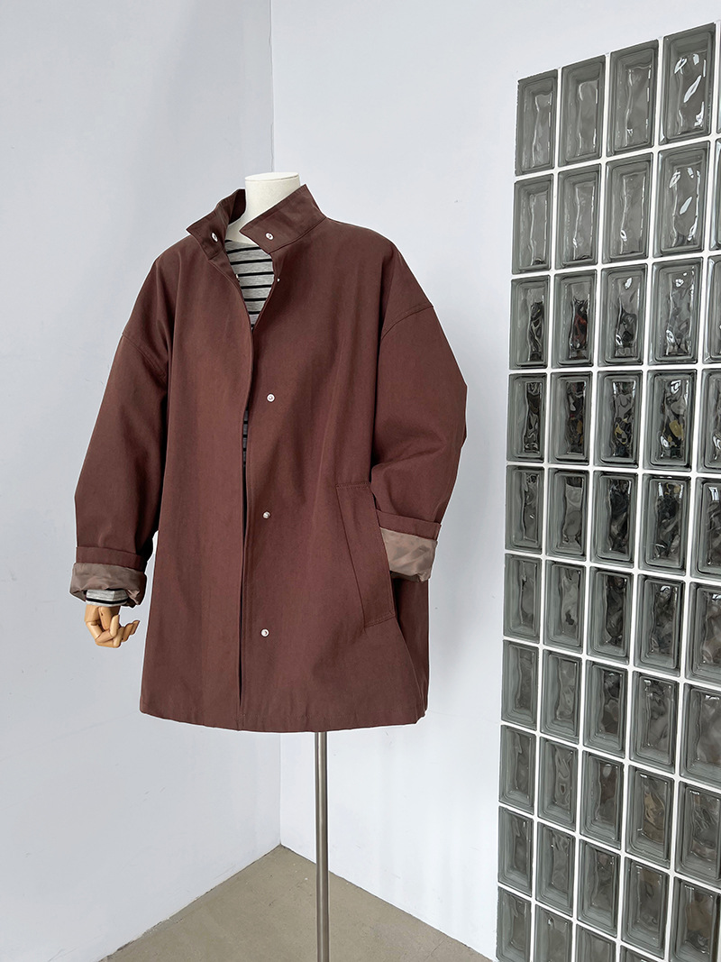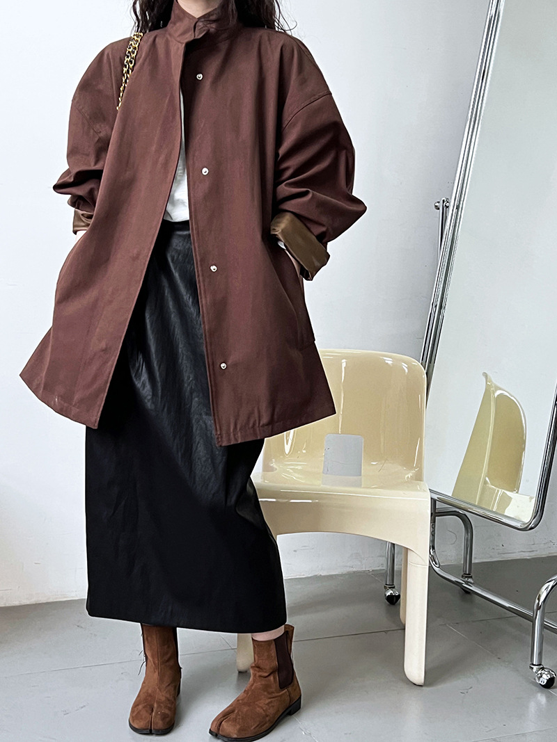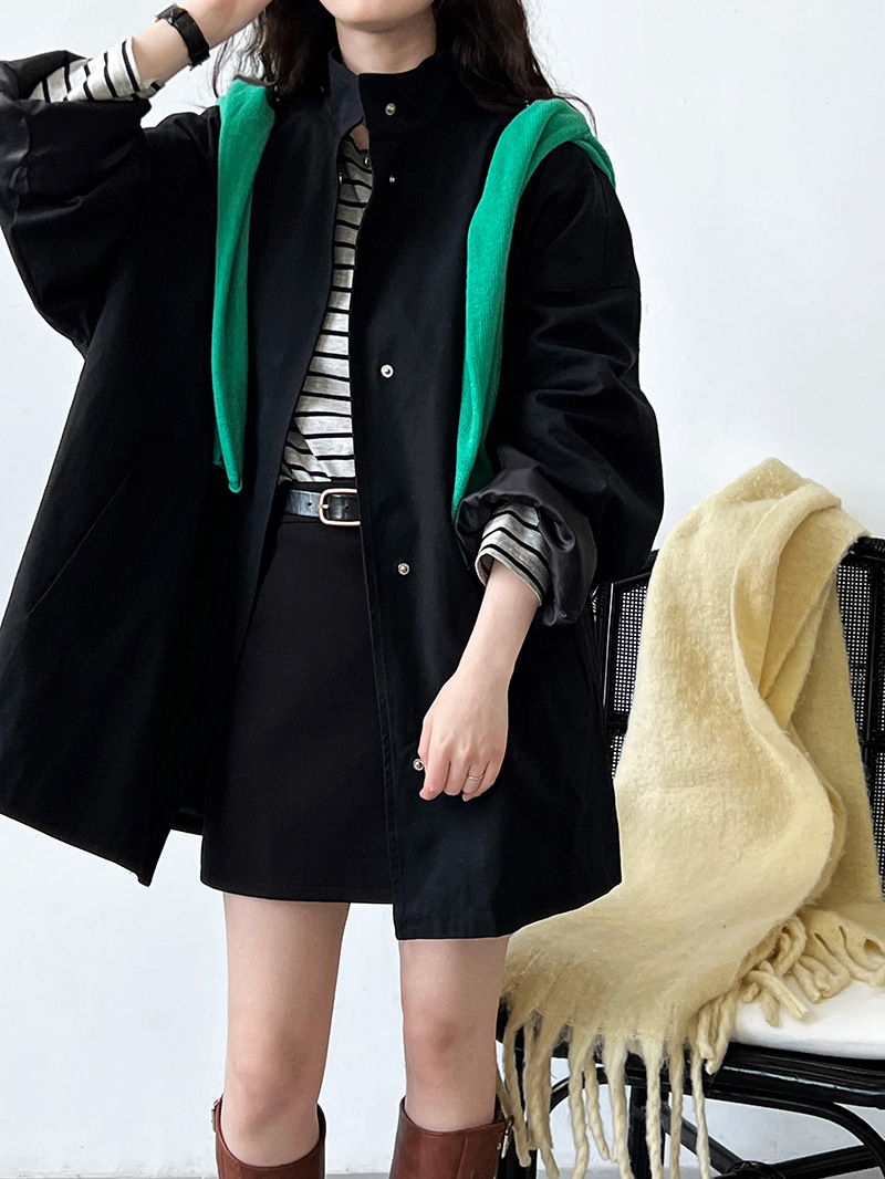 【商品名】【アウター】高級感 気質 スタンドカラー オーバーサイズ トレンチコート