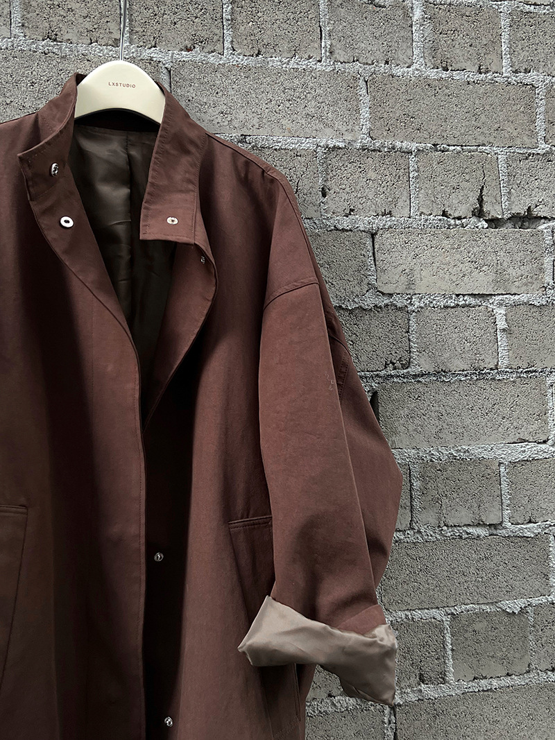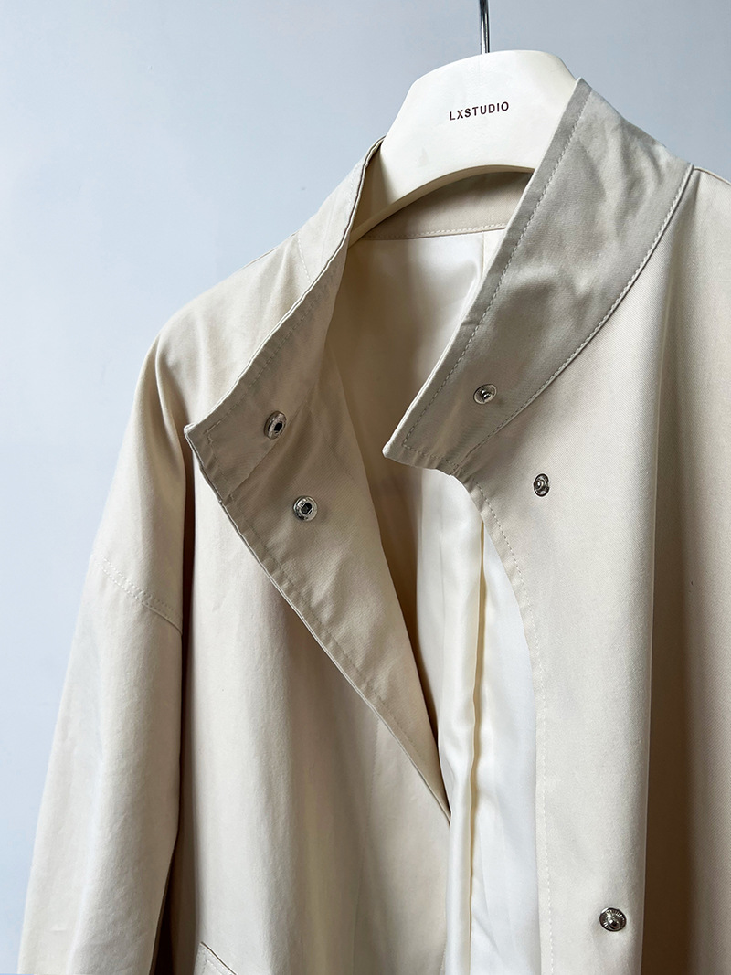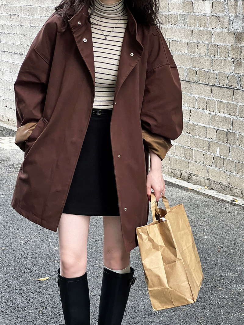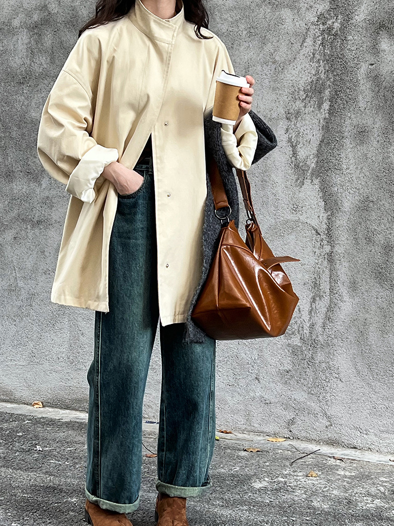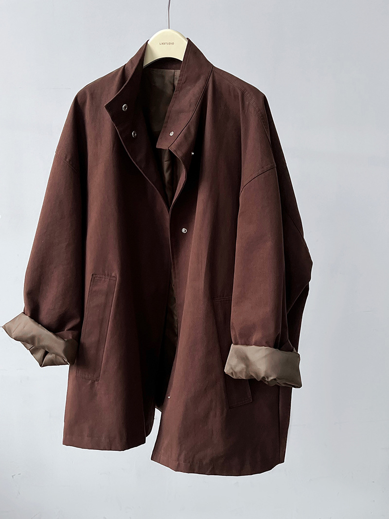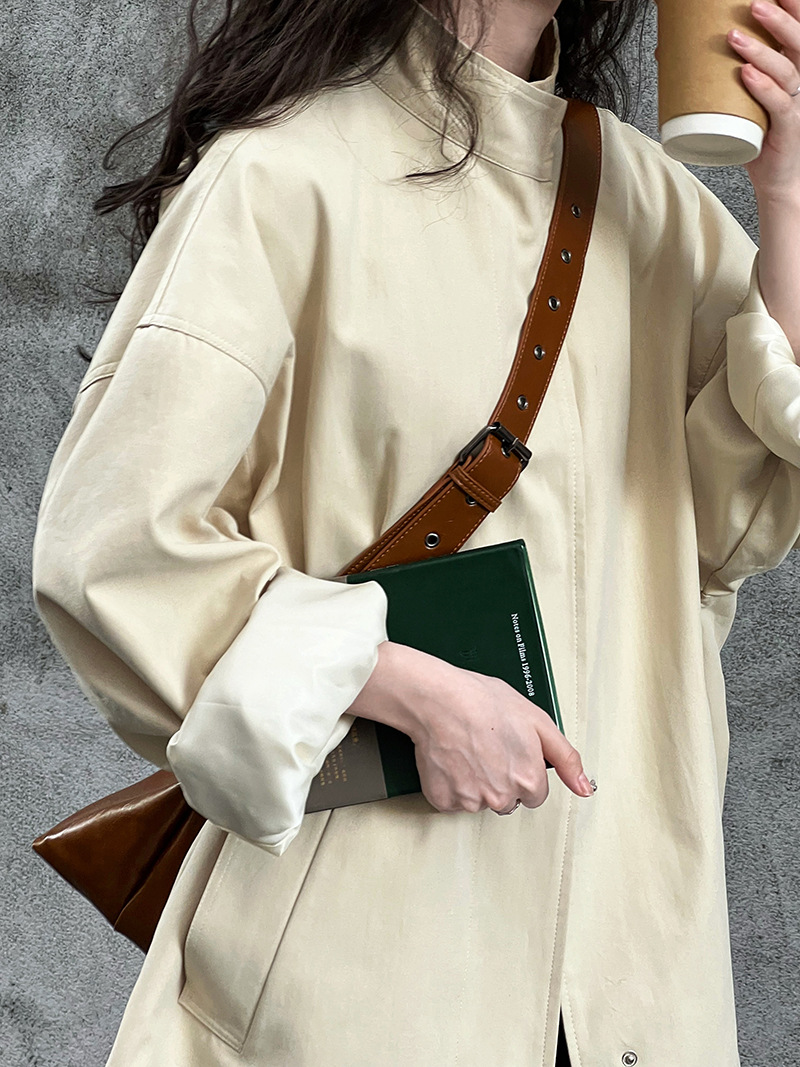 【商品名】【アウター】高級感 気質 スタンドカラー オーバーサイズ トレンチコート