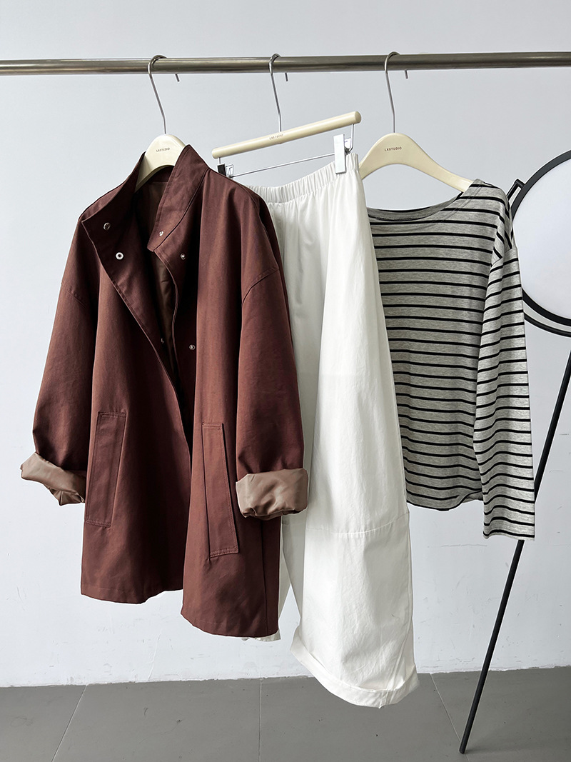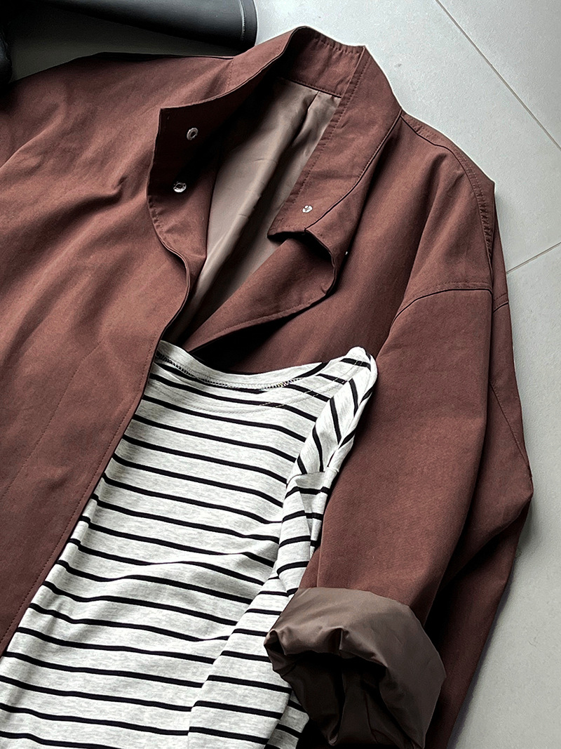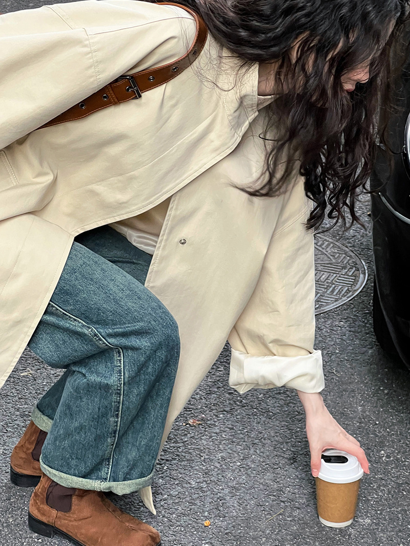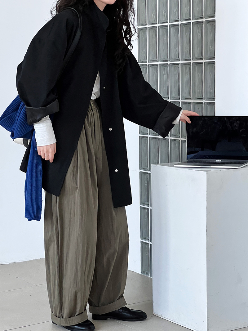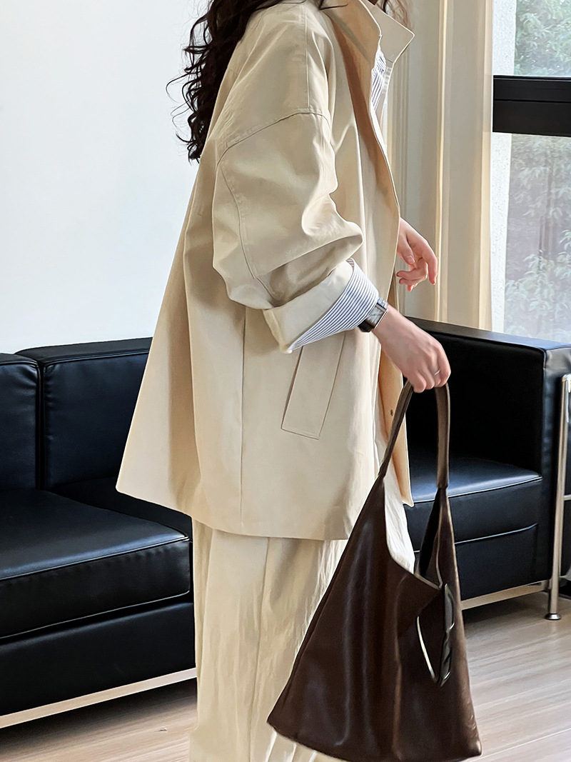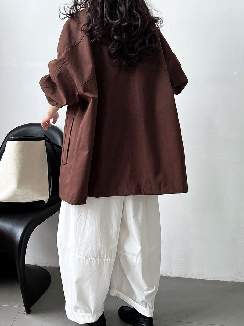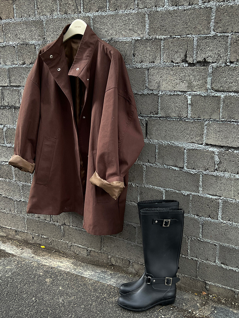 【商品名】【アウター】高級感 気質 スタンドカラー オーバーサイズ トレンチコート